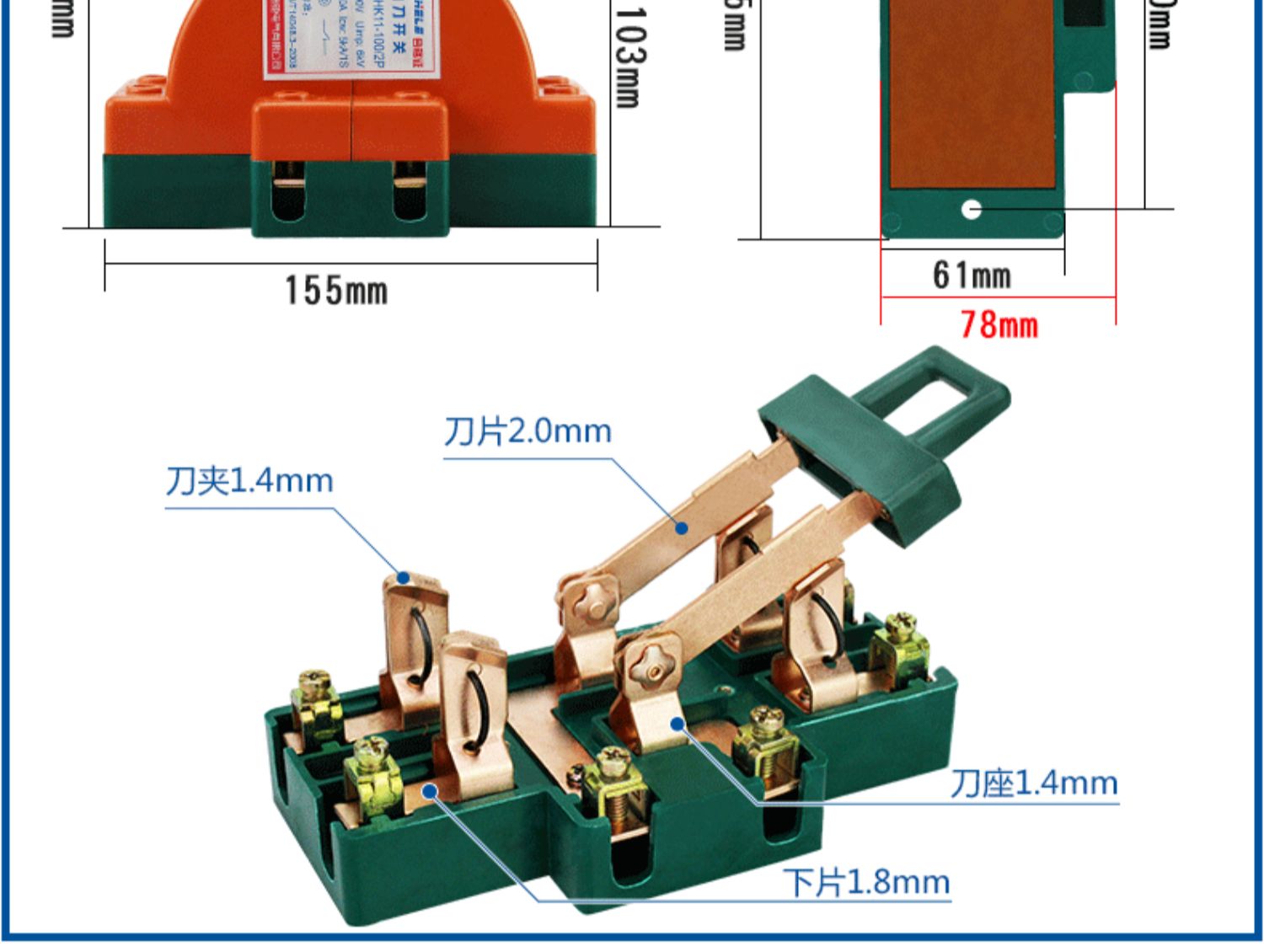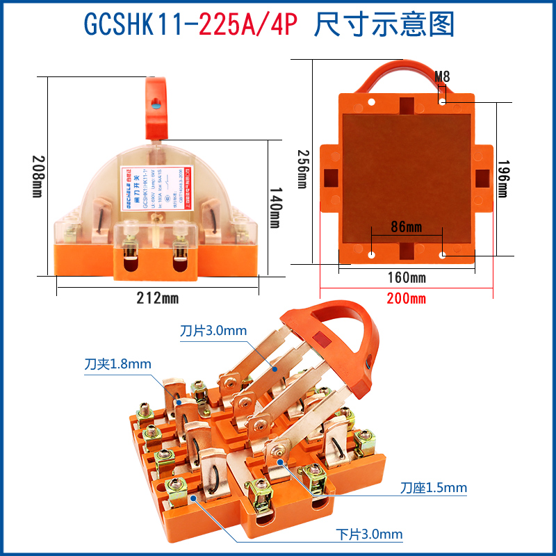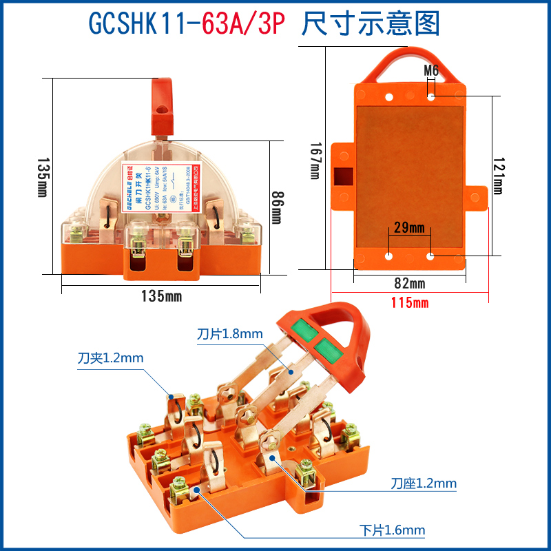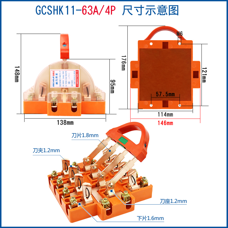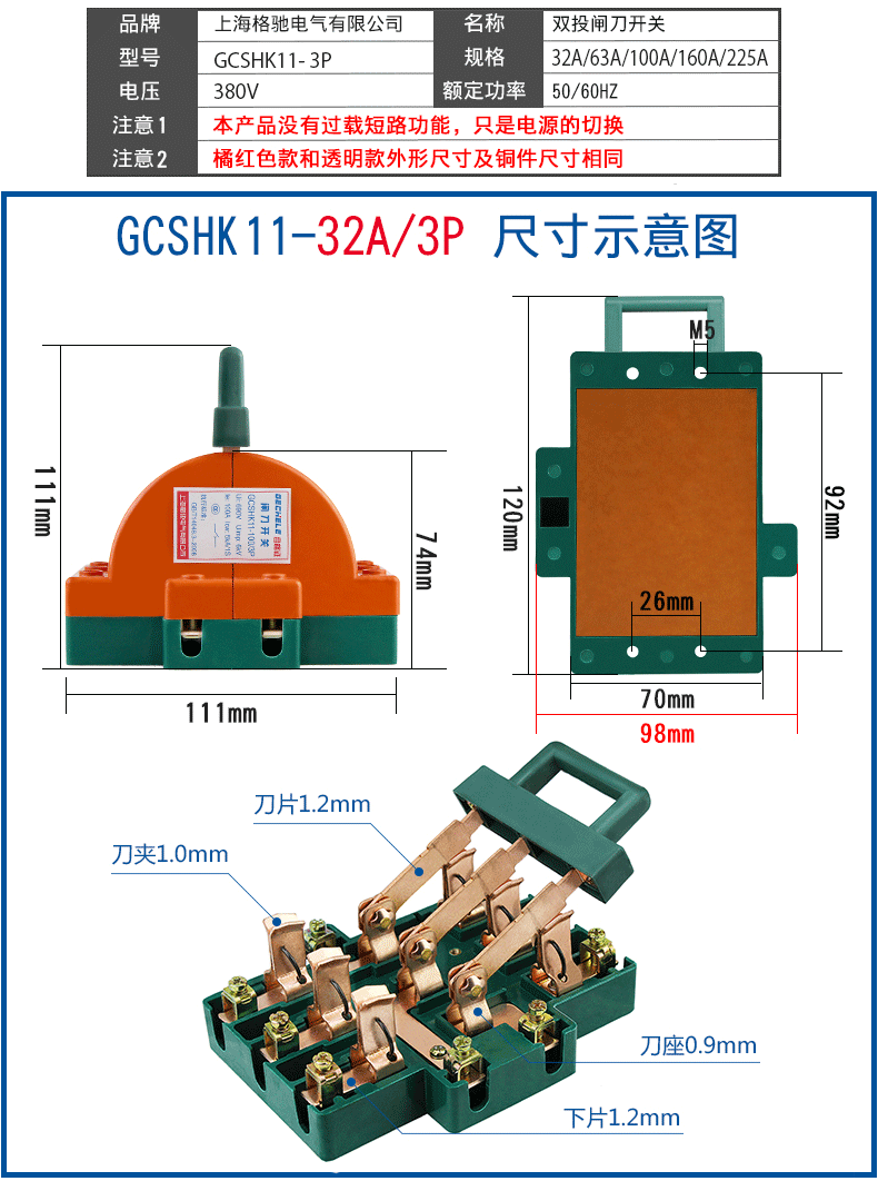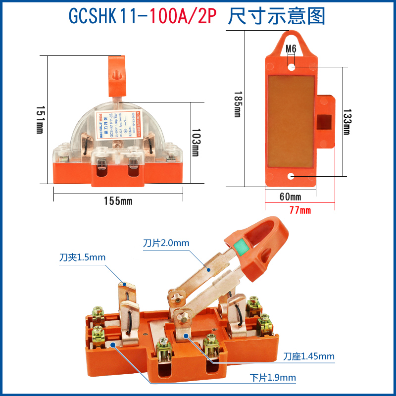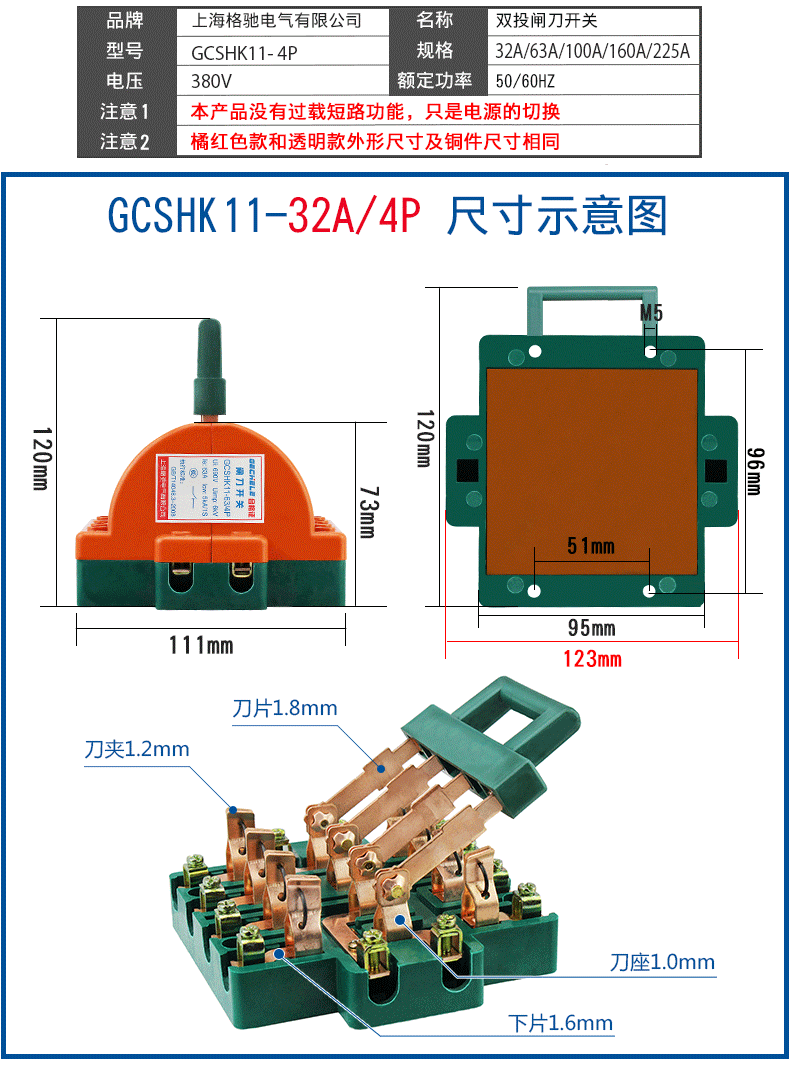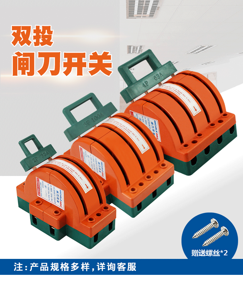 Two-way knife switch 220v32A dual power conversion switch 380V reverse double throw gate and head gate 63A 2P