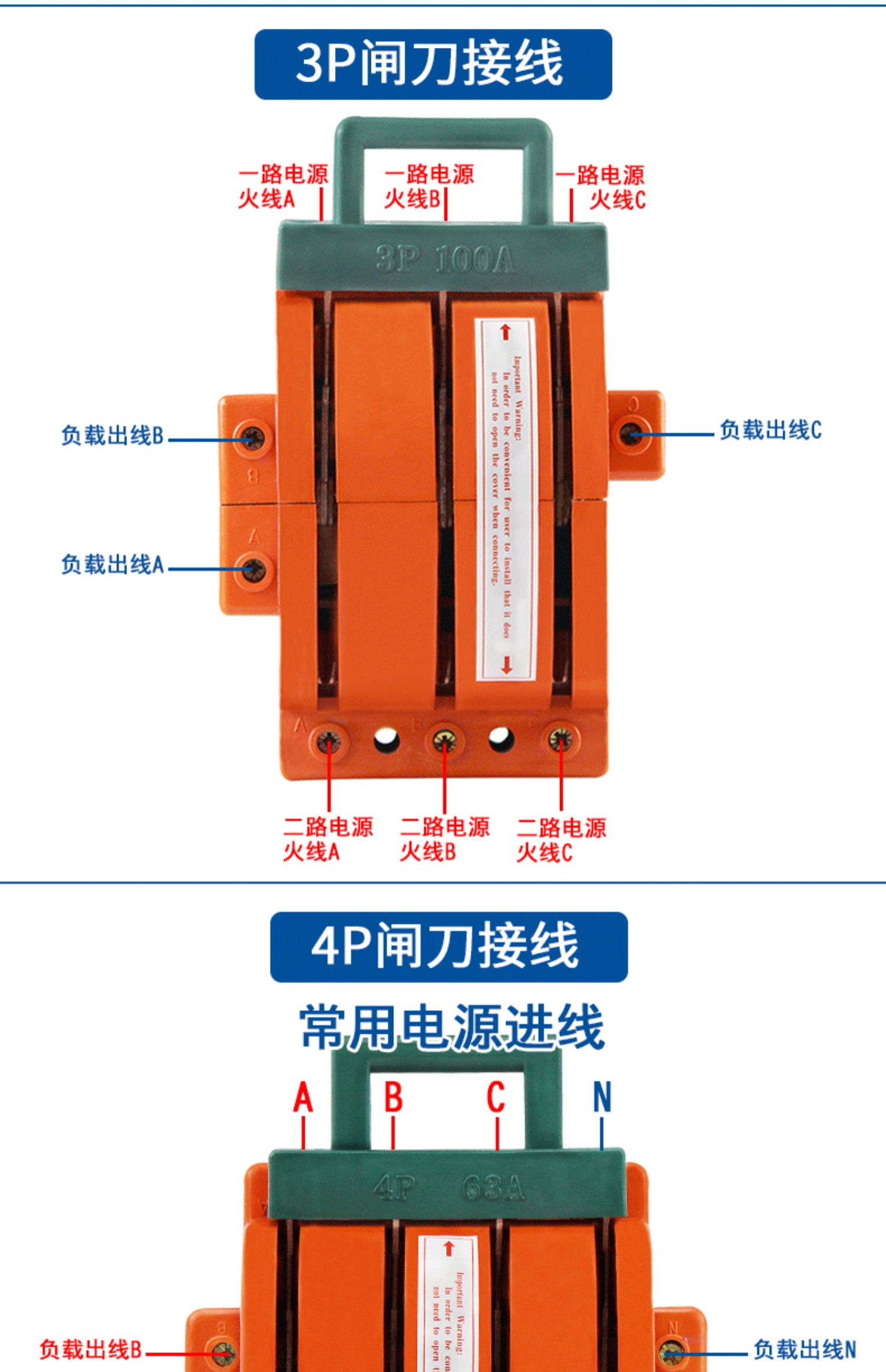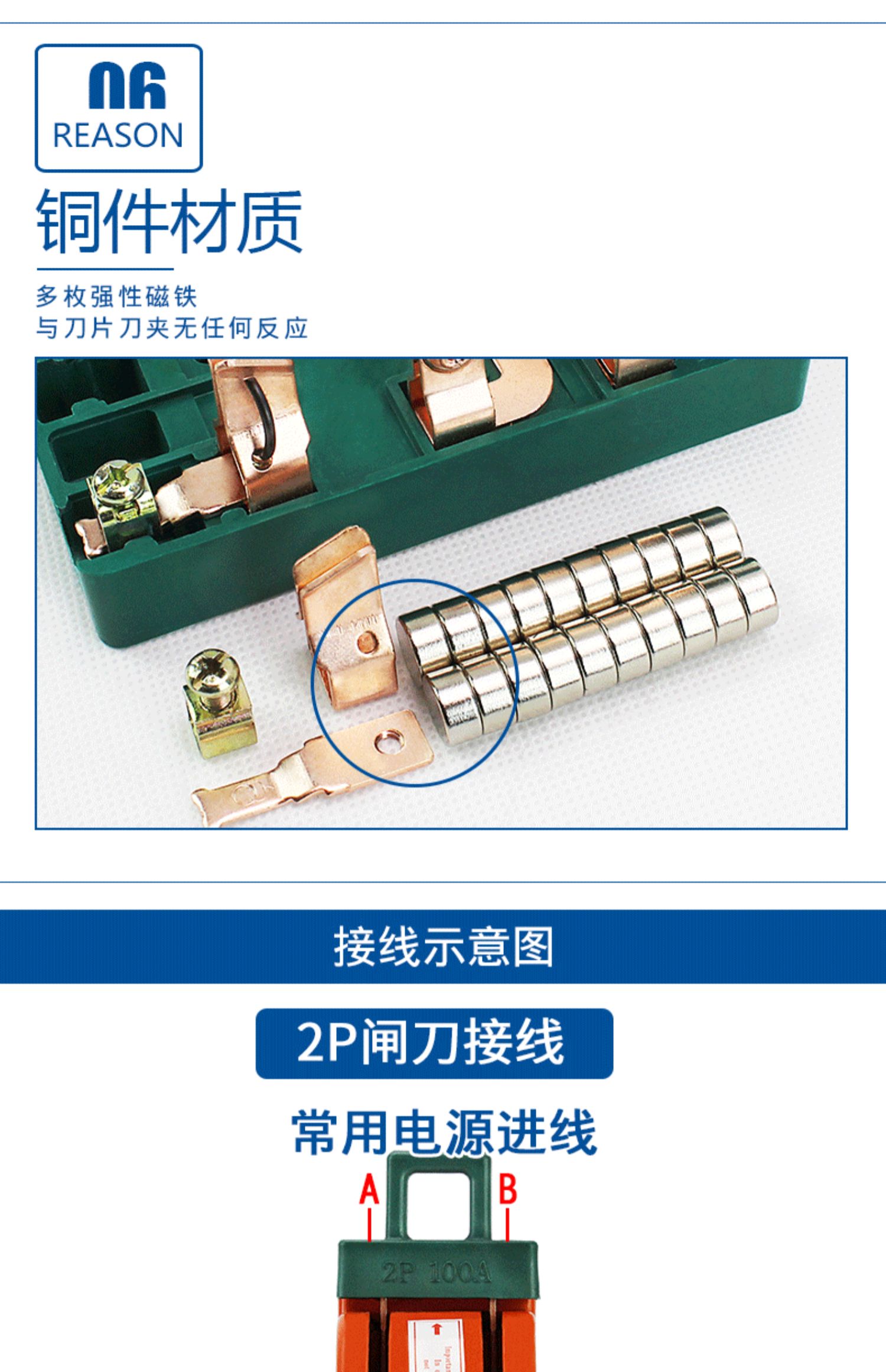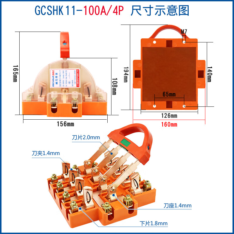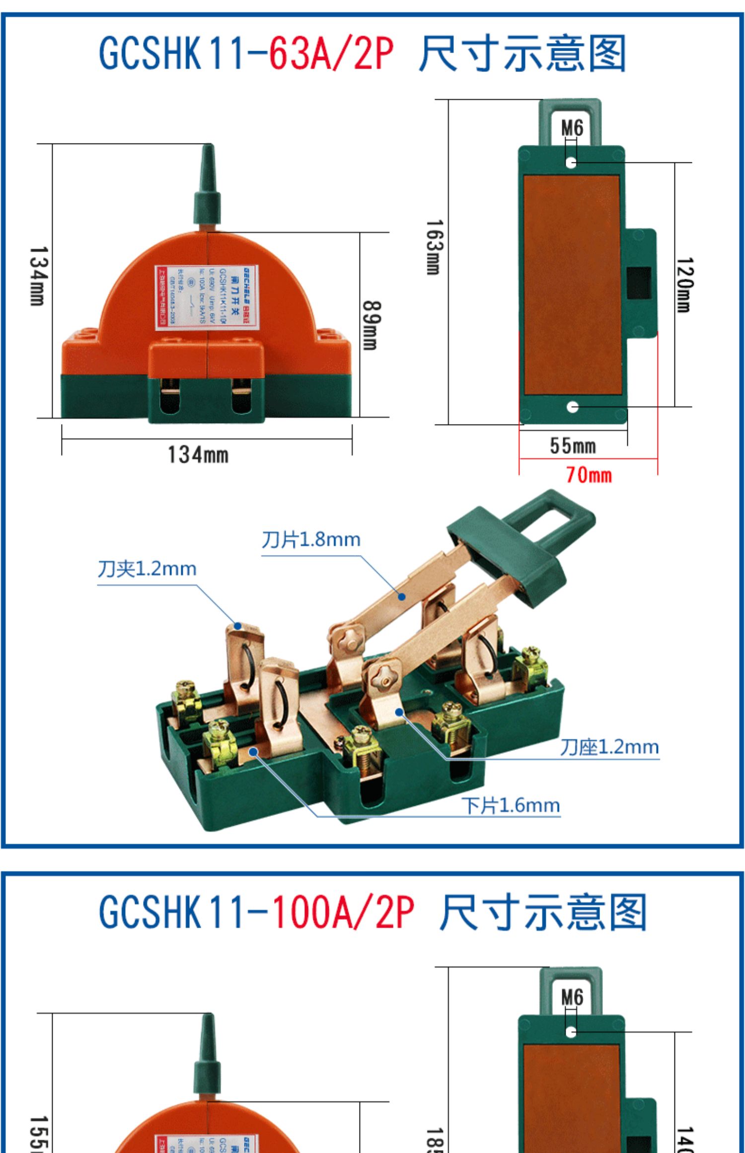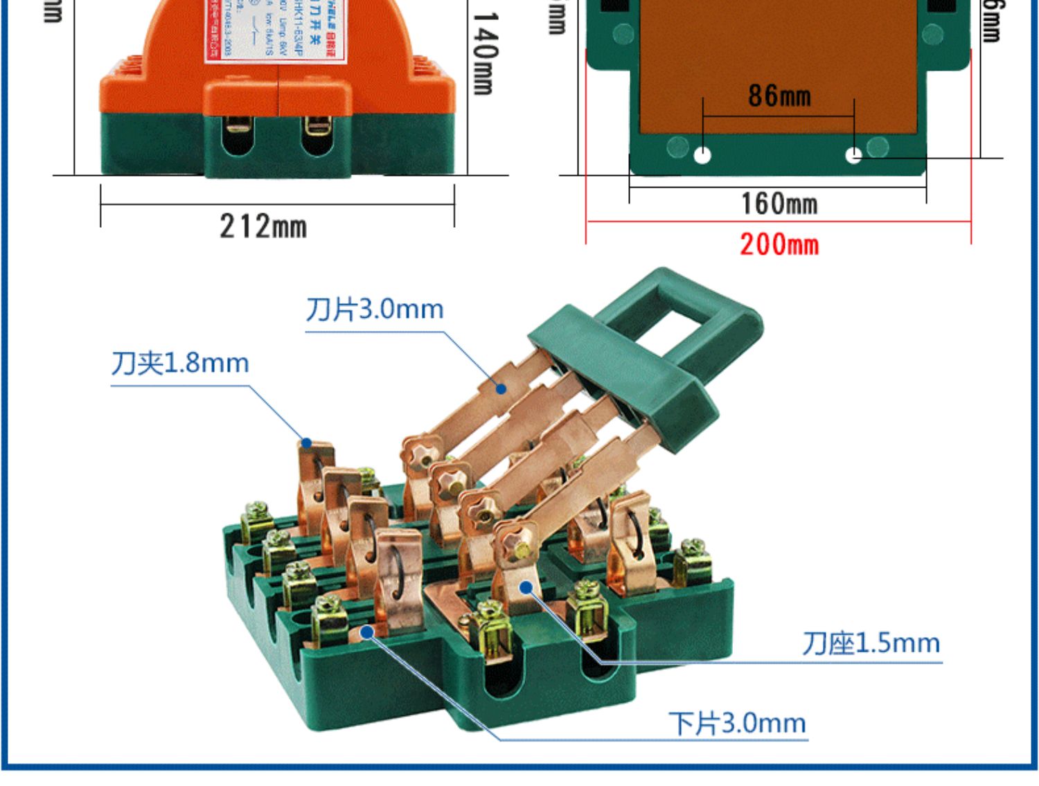 Two-way knife switch 220v32A dual power conversion switch 380V reverse double throw gate and head gate 63A 2P