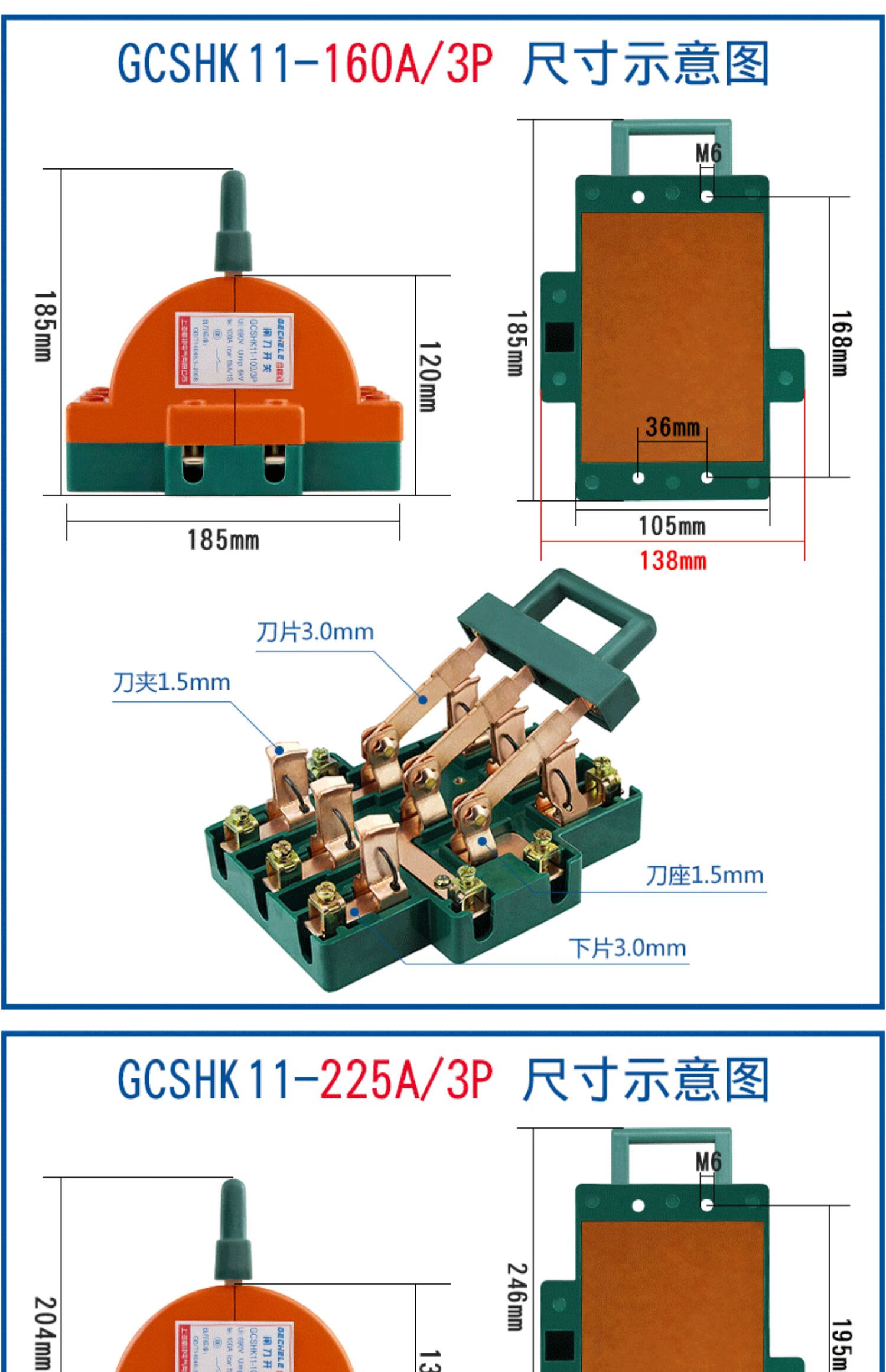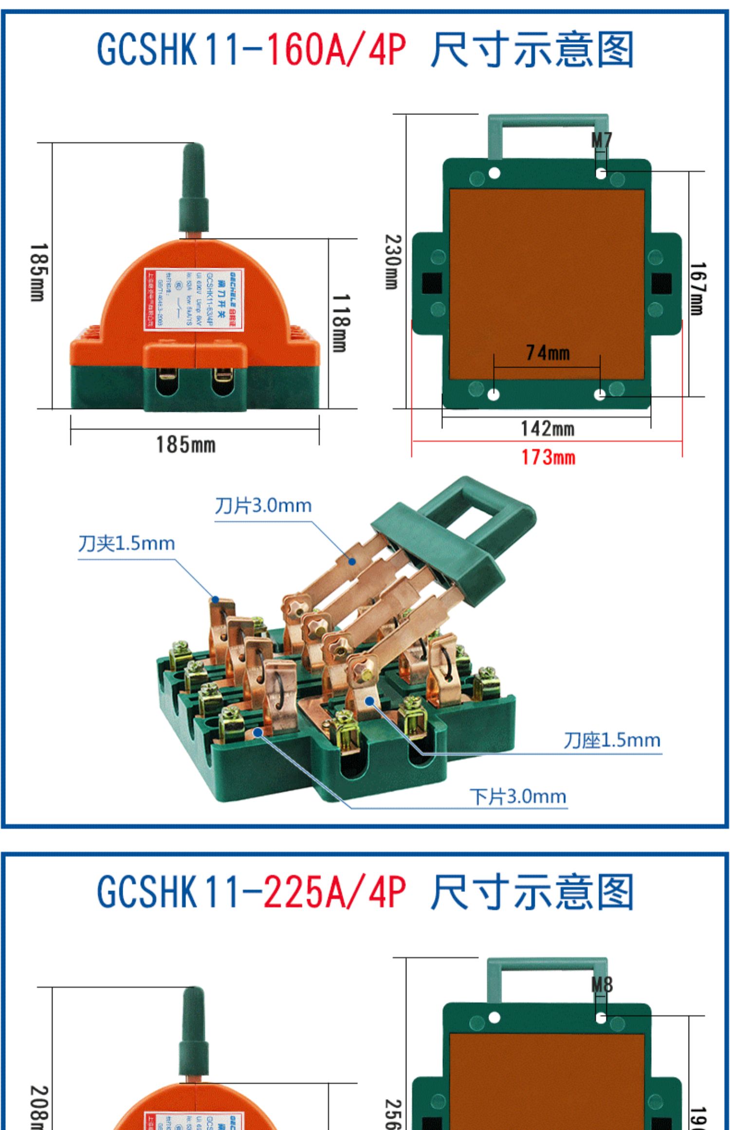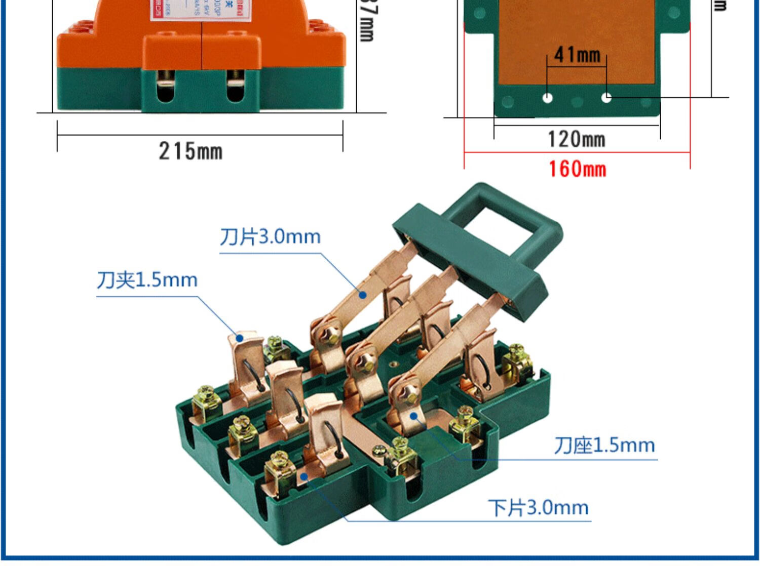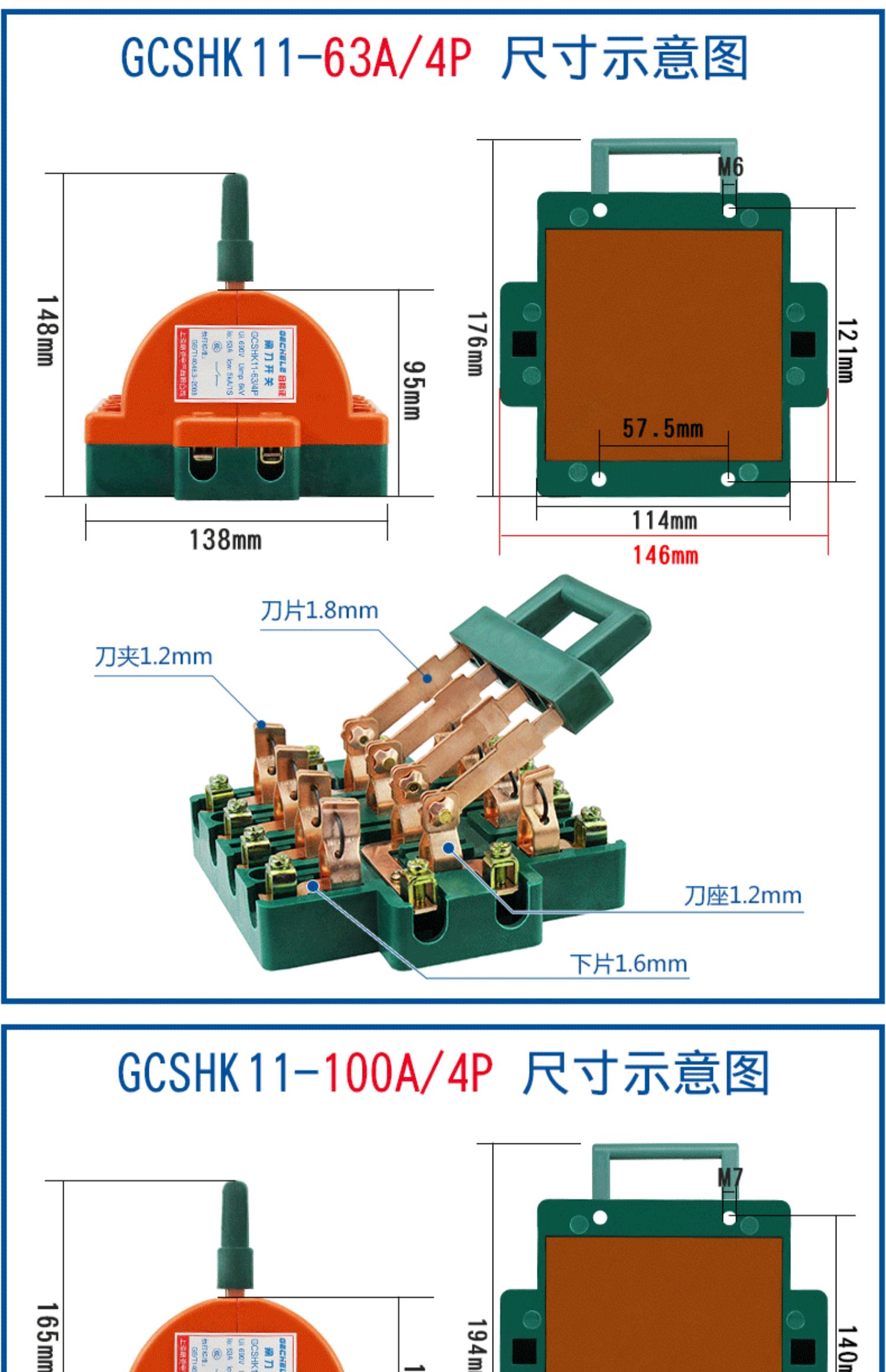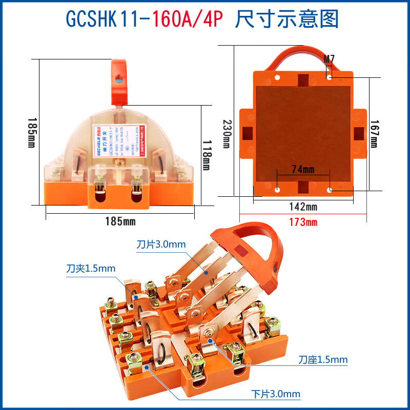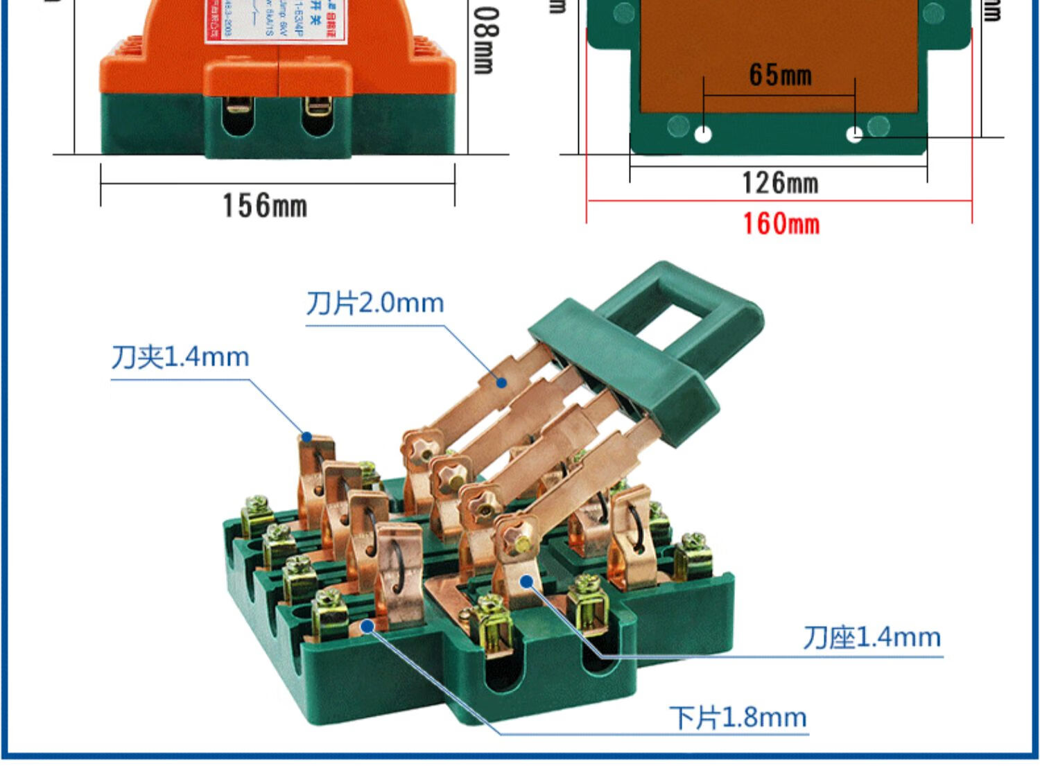 Two-way knife switch 220v32A dual power conversion switch 380V reverse double throw gate and head gate 63A 2P