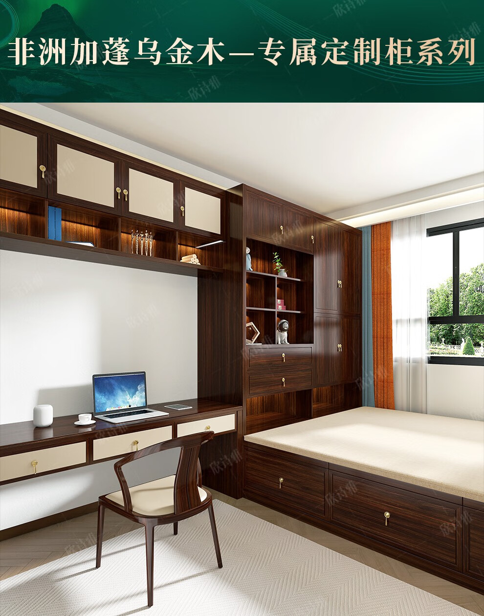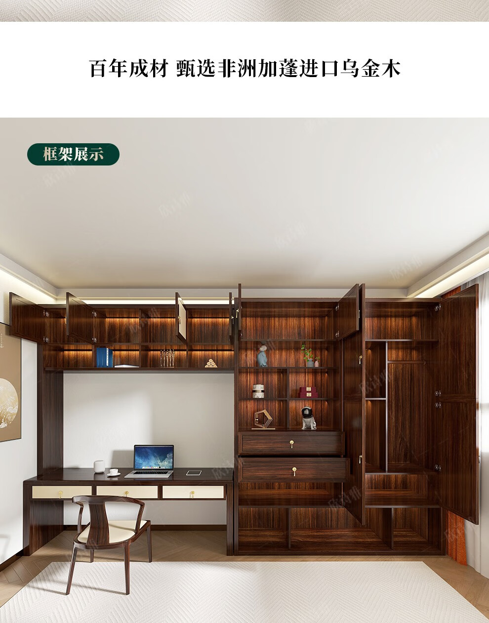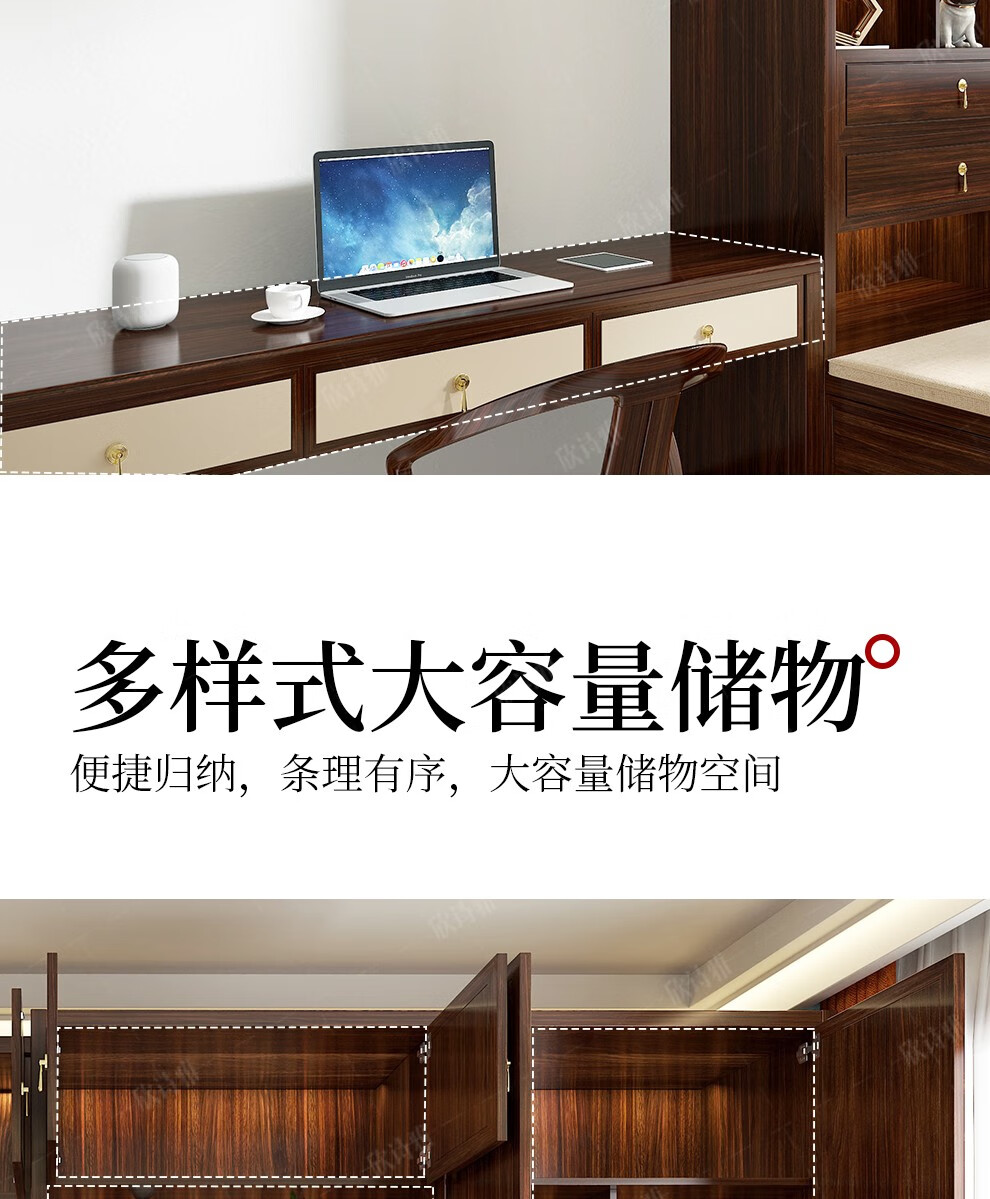 Xinshiya new Chinese style ebony wood tatami multifunctional bed customized wardrobe light luxury cloakroom whole house customized bedroom per square meter (supports customization based on drawings)