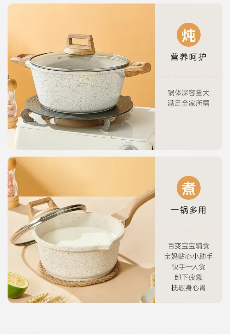 Mingjue pot set complete household medical stone color non-stick pan frying wok soup pot milk pot induction cooker gas stove universal four-piece set wok + frying pan + milk pot + soup pot