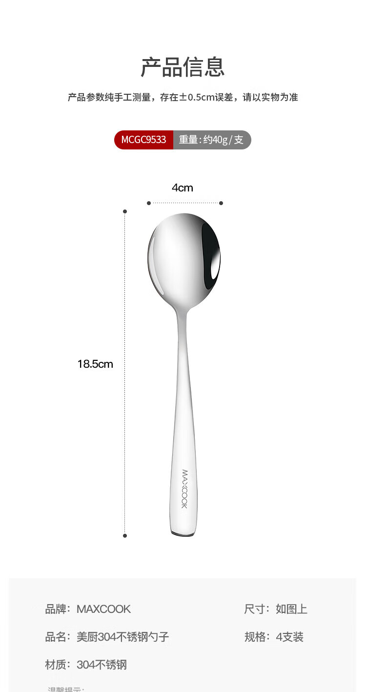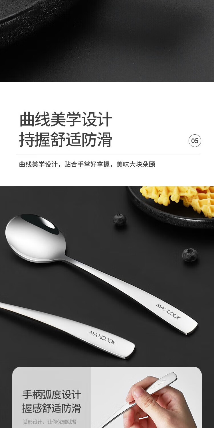 MAXCOOK 304 stainless steel spoon, thickened round bottom rice spoon, 2 spoons set MCGC0187
