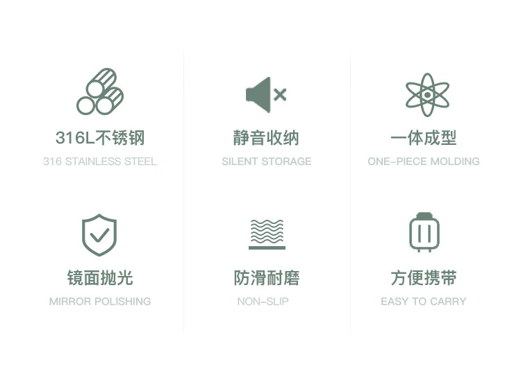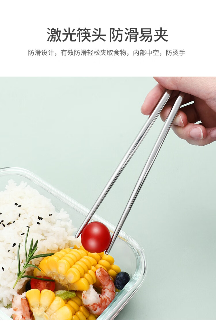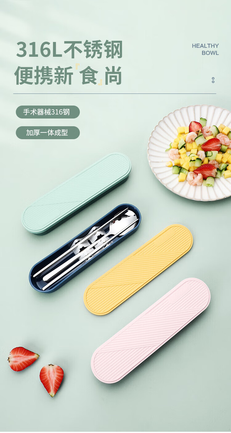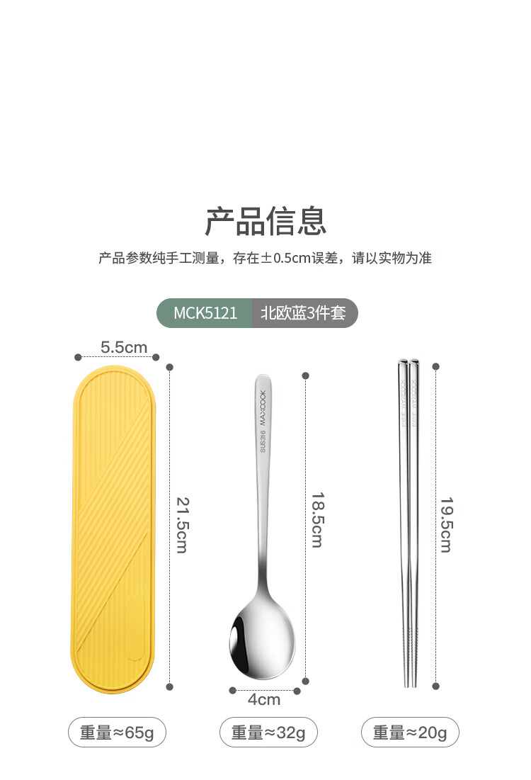 MAXCOOK 316L Stainless Steel Chopsticks and Spoons Cutlery Set Creative Portable Chopsticks and Spoons 316L Chopsticks and Spoons 3-piece Set Nordic Green