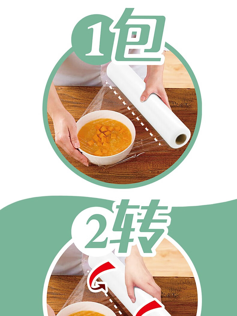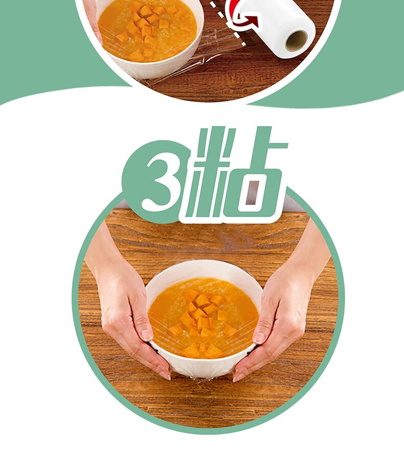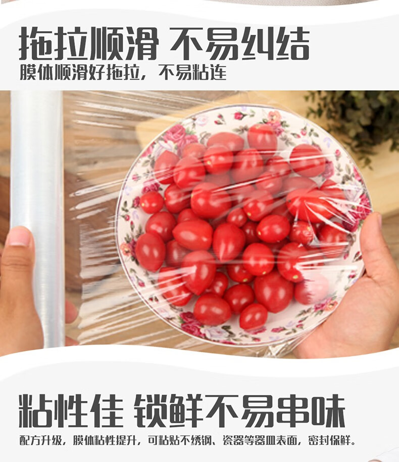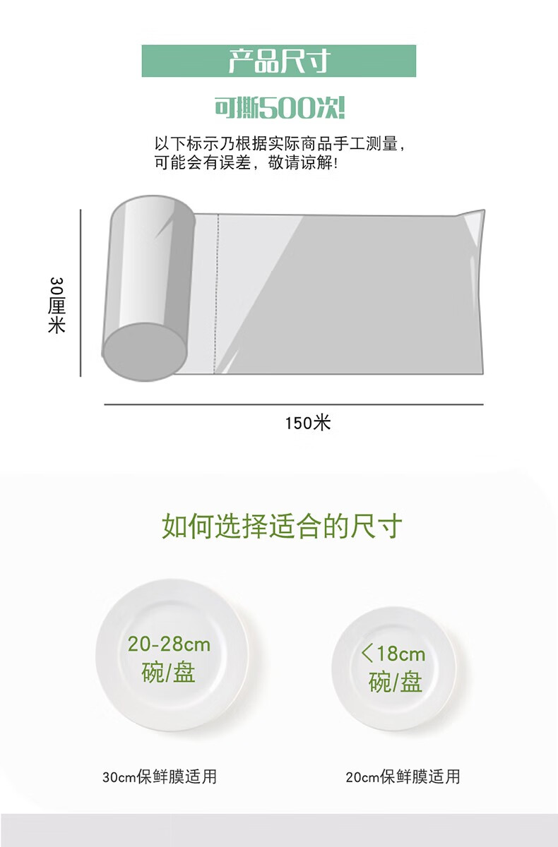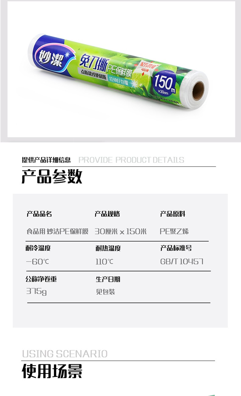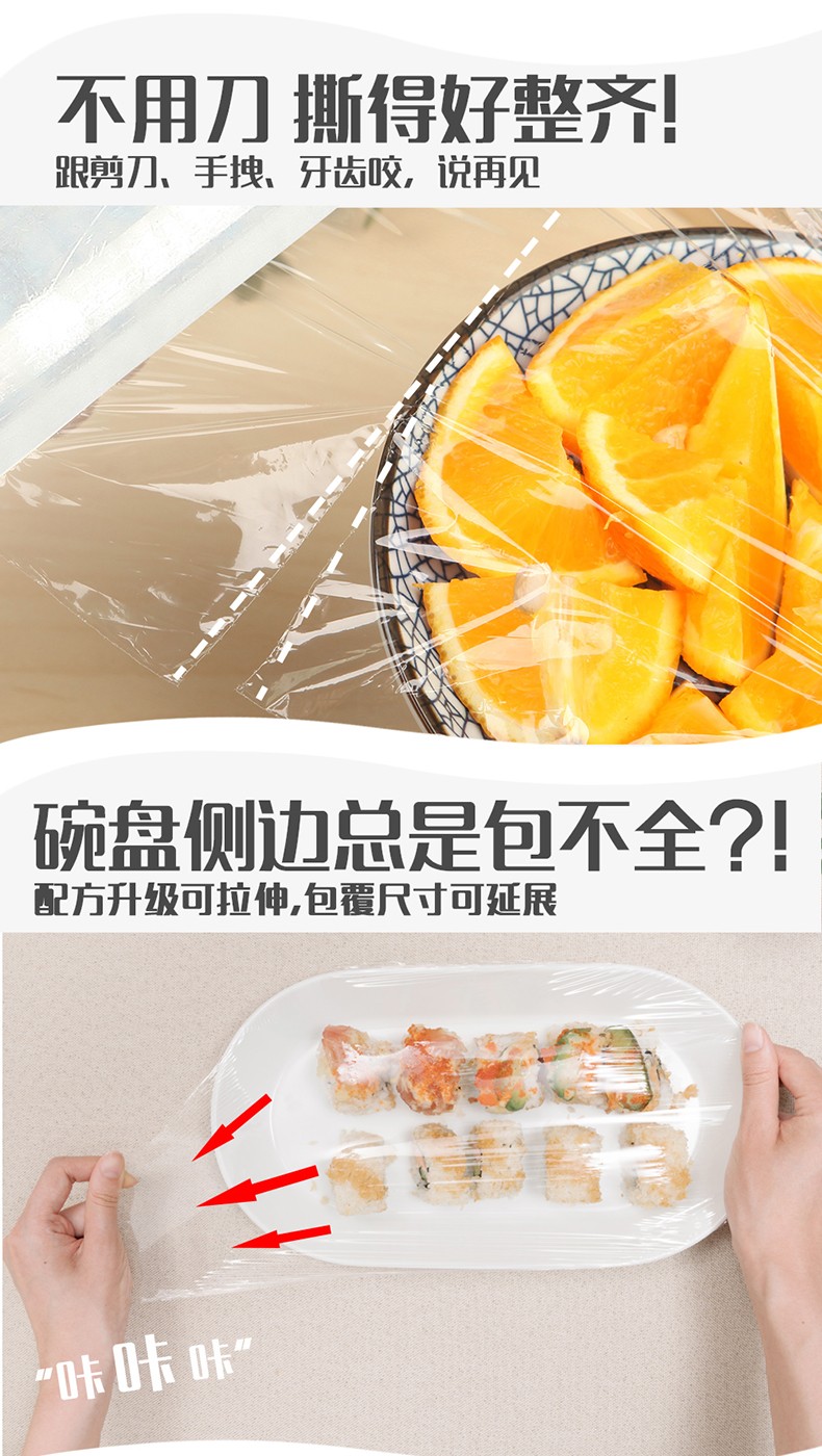 MIAOJIE Knife-free cling film cover large roll point break type PE food grade kitchen refrigerator microwave oven high temperature resistant large bowl 30cm*90 meters