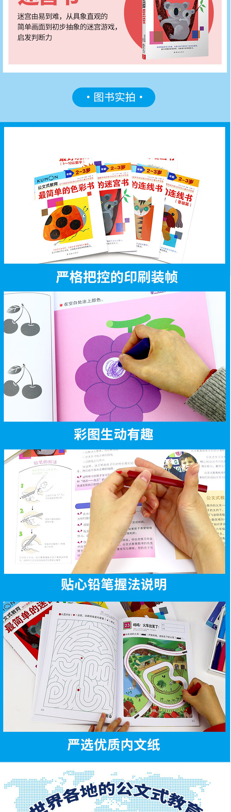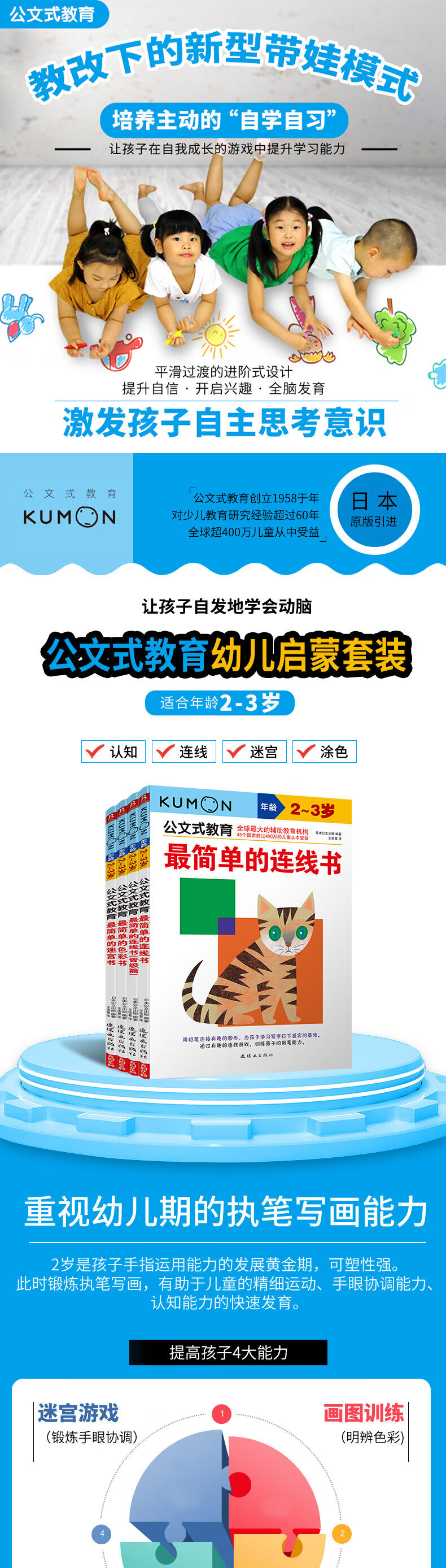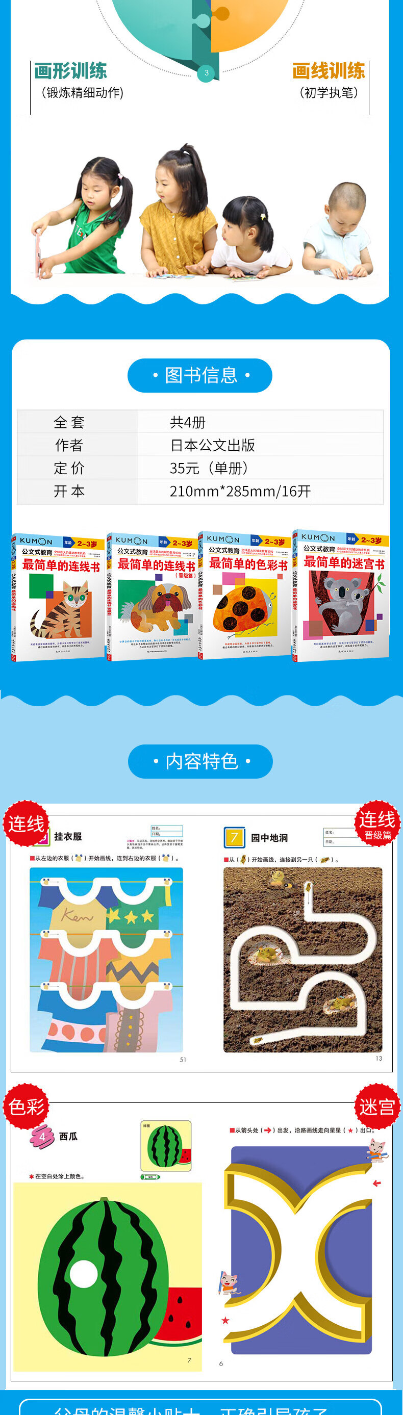 Kumon educational kumon educational games for children aged 2-3-6-9 years old, maze book handmade book, color book connection book, puzzle paper cutting connection, logical thinking training, kindergarten baby early education enlightenment cognitive concentration, 4 volumes, the most fun series, suitable for ages 3-4 years old