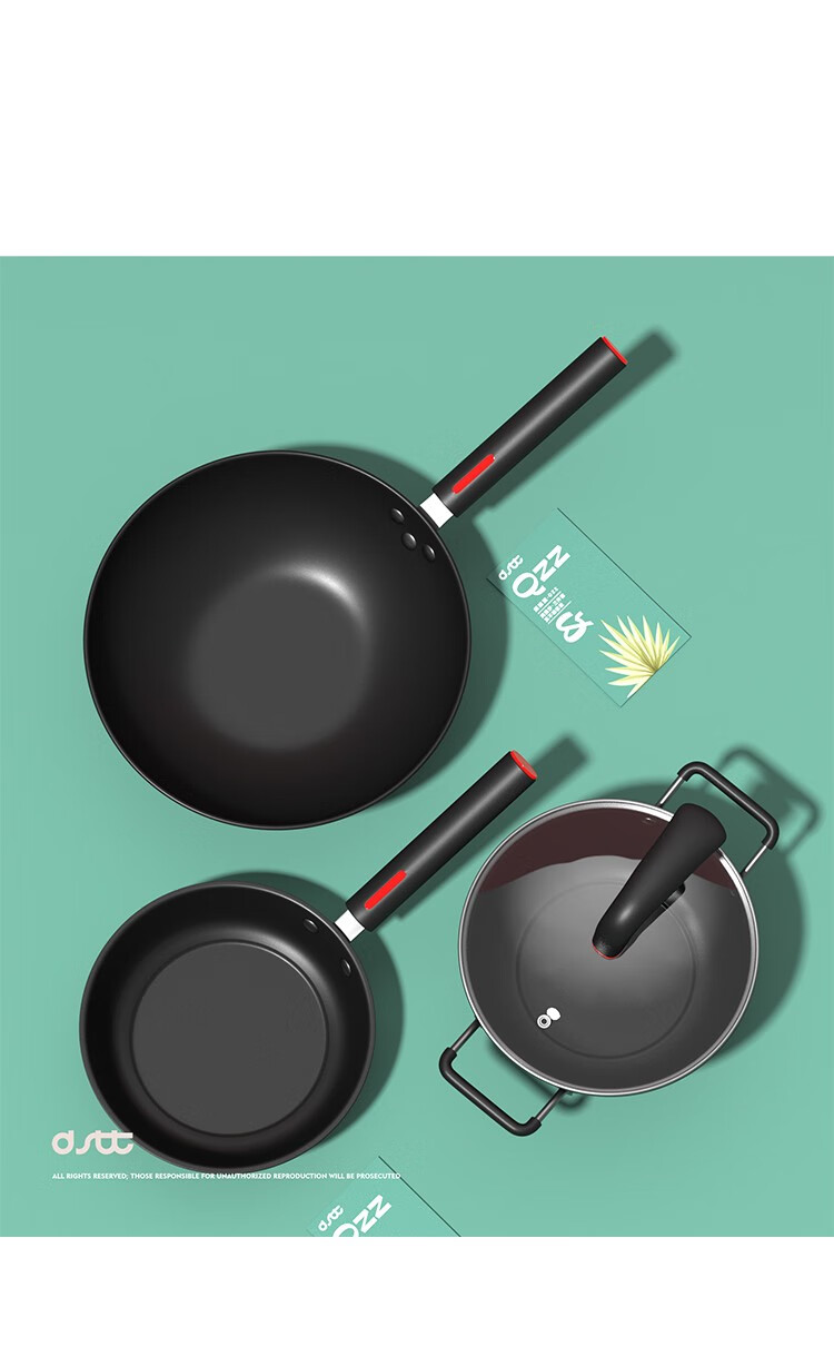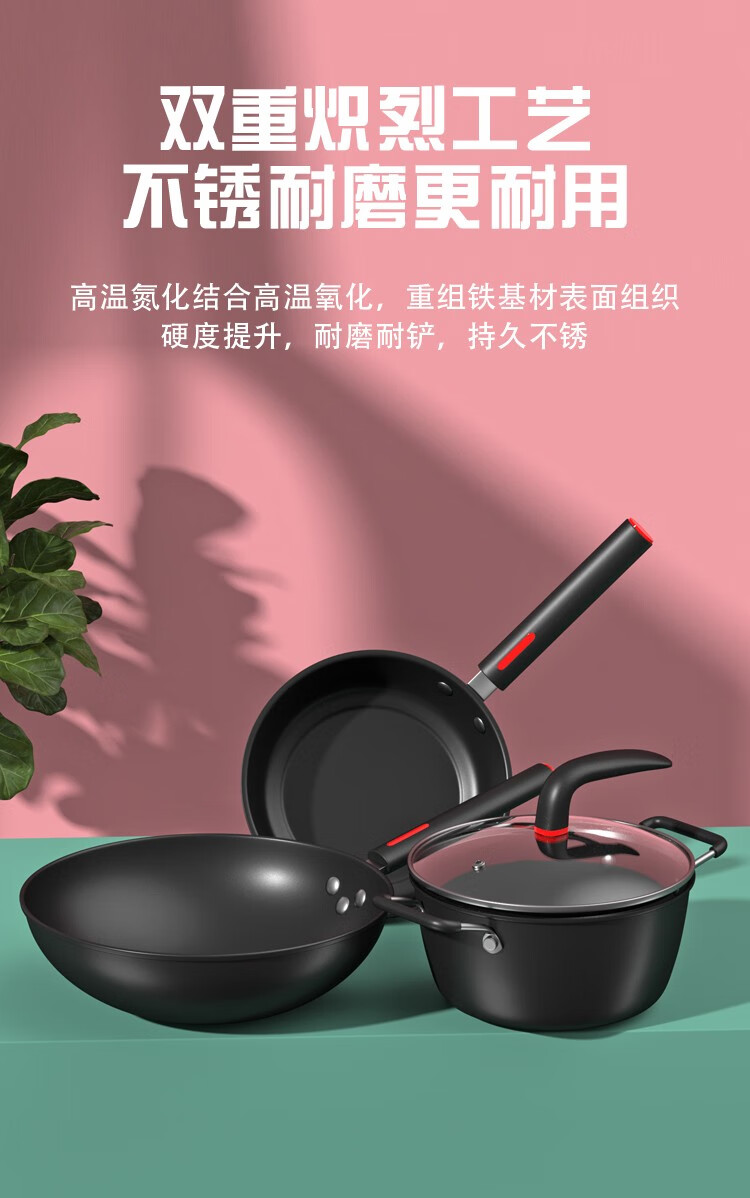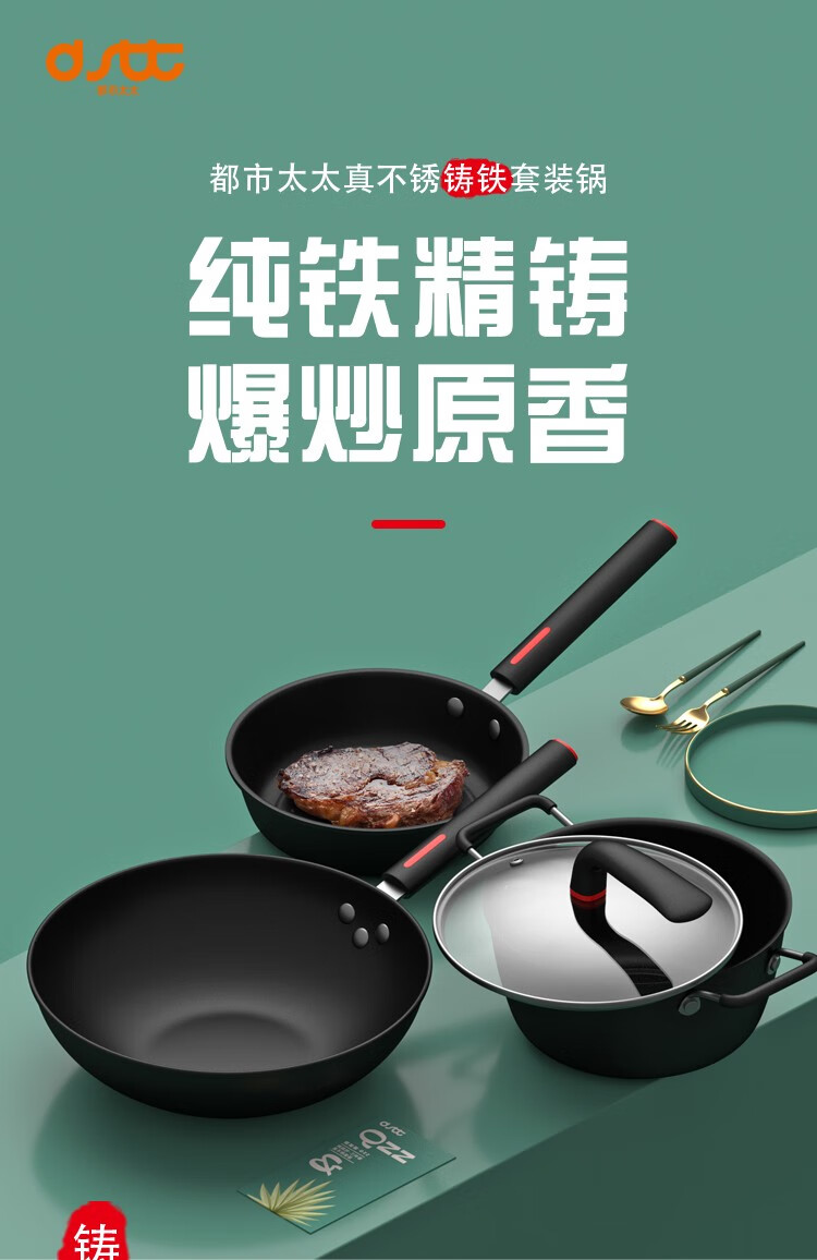 City wife (DStt) City wife fun wok, frying pan, soup pot three-piece set black gas stove induction cooker black stew and fry set