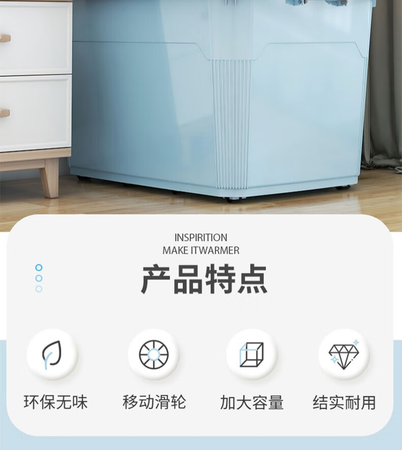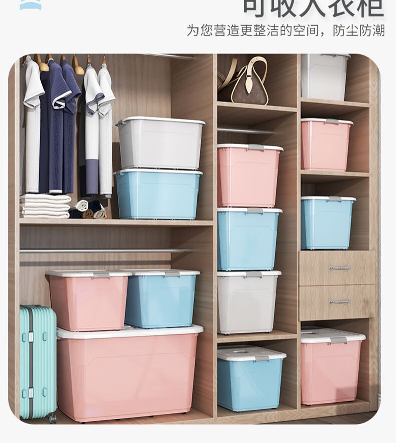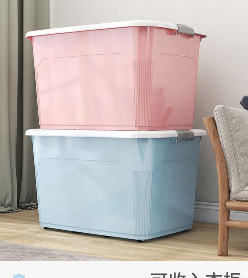 Silver core (yinxin) extra large storage box household thickened plastic storage box quilt clothes toy storage box car trunk sky blue supermarket quality reinforced and thickened 360#L 8 pulleys length 80 width 59 height 48cm