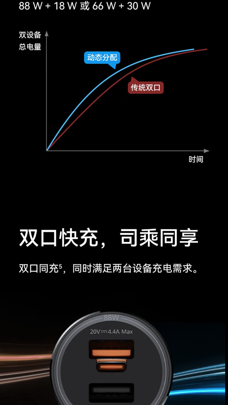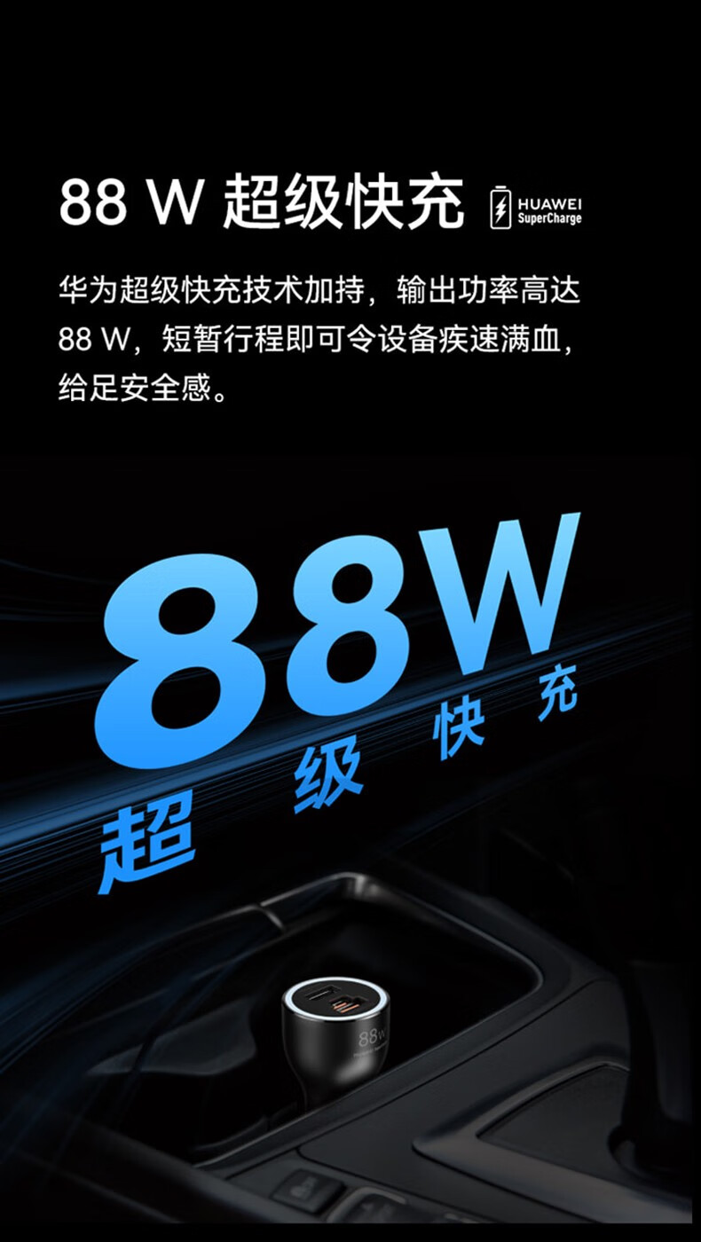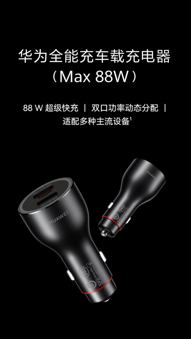 Huawei original car charger 88W super fast charging Mate60 50Pro Pura70 80Pro nova car charger 88W car charger with Type-c cable