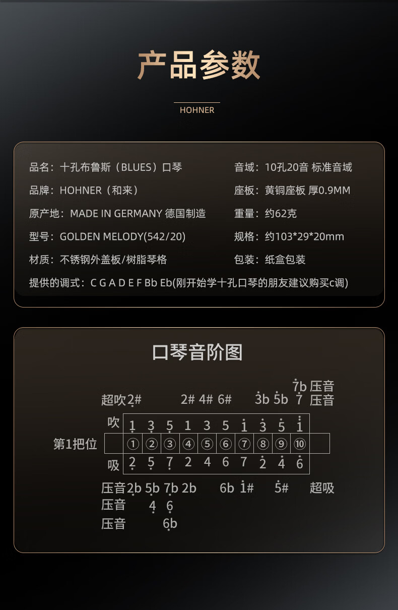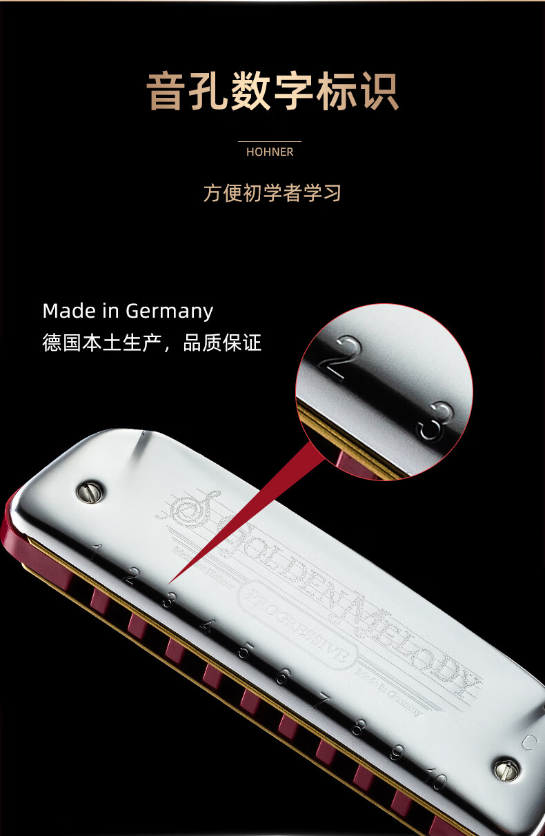 HOHNER Germany's Golden Melody ten-hole 10-hole harmonica GM blues blues adult harmonica 10-hole C key-new model