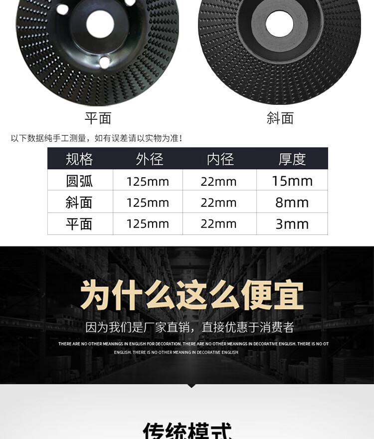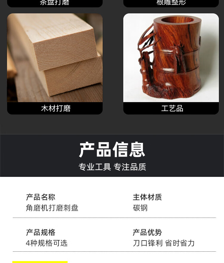 Xinchengfeng angle grinder file, woodworking polishing, shaping thorn disc, round grinding wheel, polishing wheel, tea tray, wood file, root carving and polishing, 100 gold flat file (2 pieces)