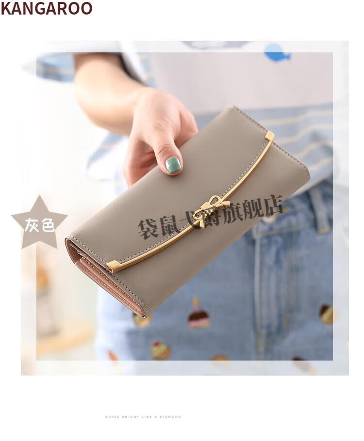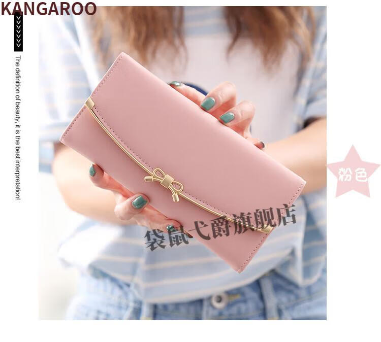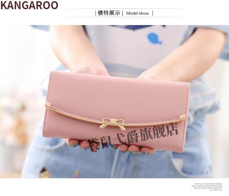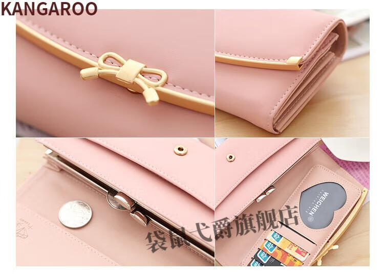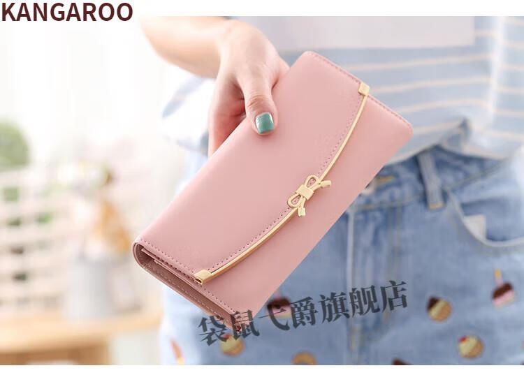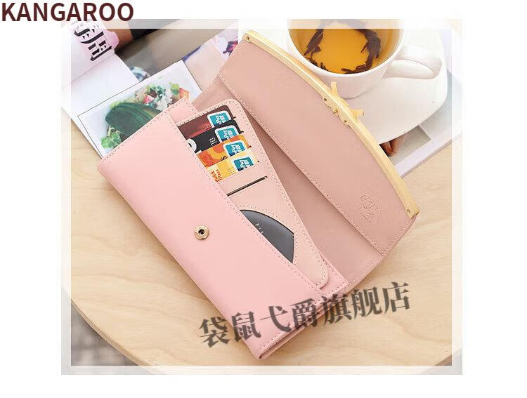 Kangaroo (KANGAROO) 2024 New Women's Wallet Women's Long Buckle Wallet Banknote Clip Multifunctional Cute Clutch Bag Women's Pink