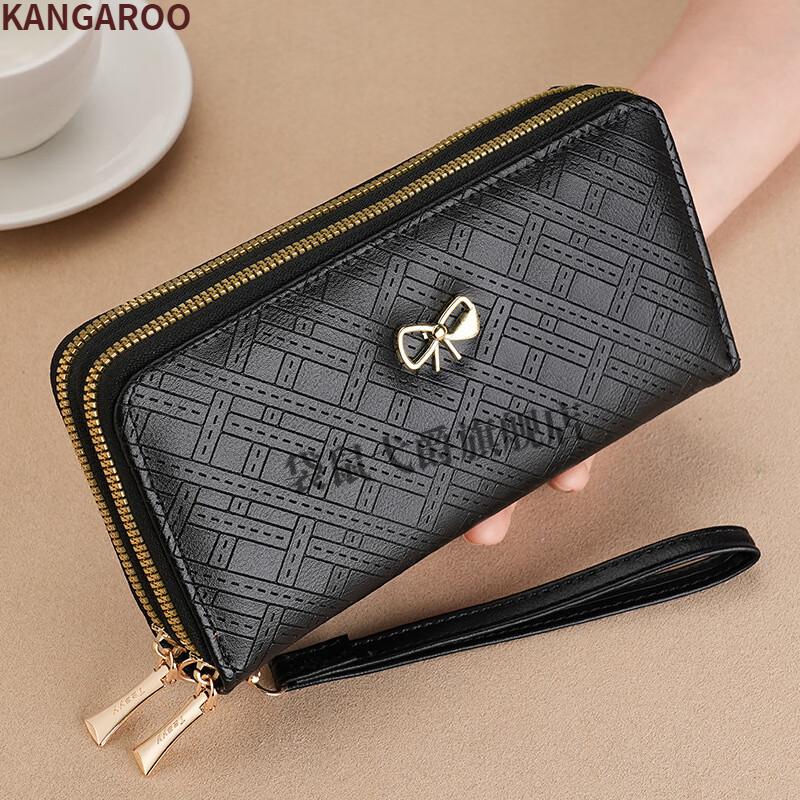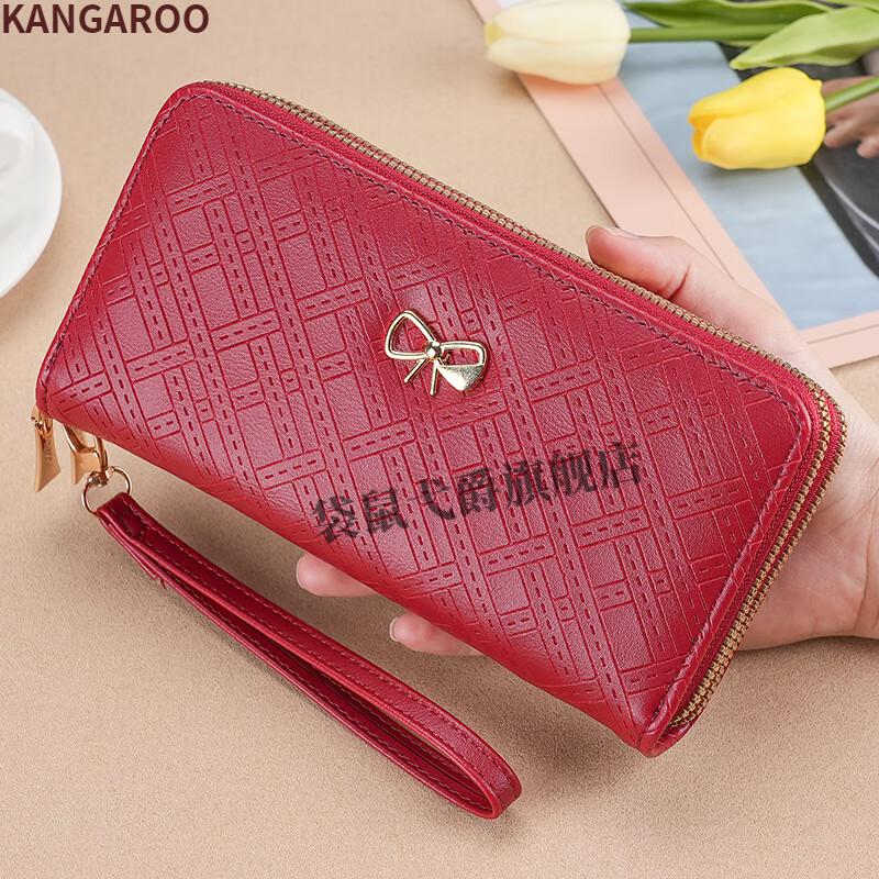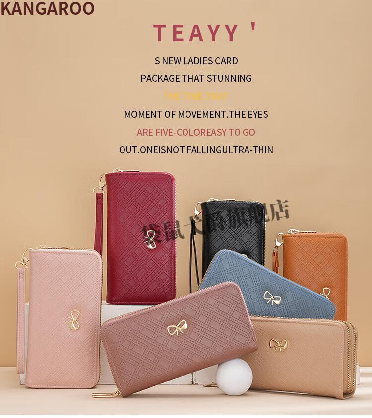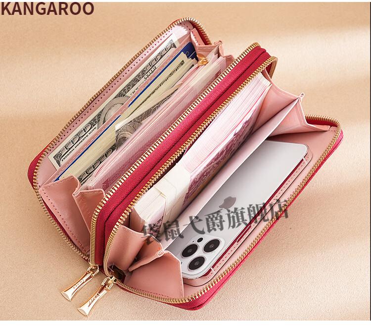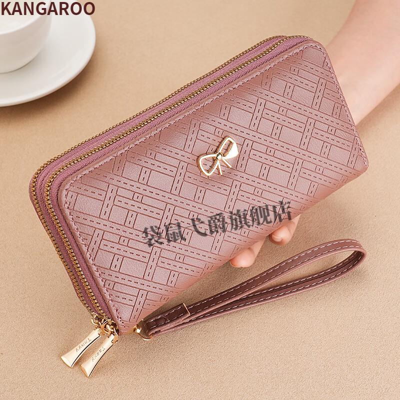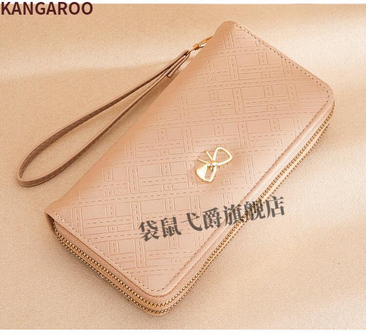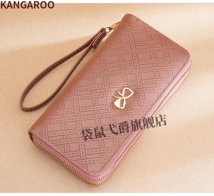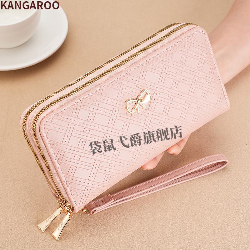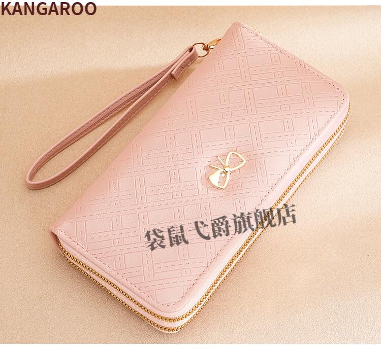 Kangaroo (KANGAROO) women's wallet clutch bag women's long simple mobile phone bag multi-functional large capacity fashion wallet wallet pink