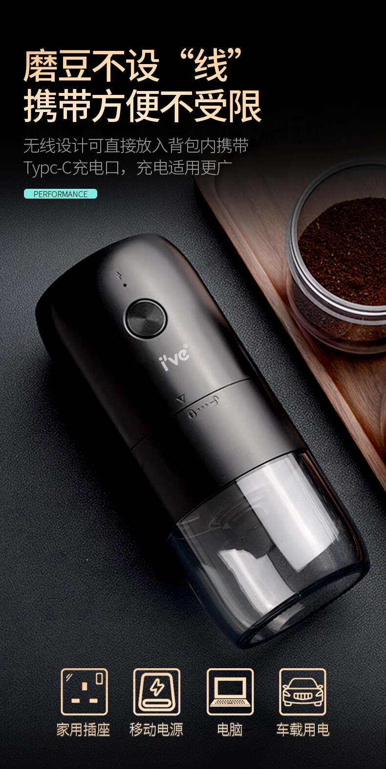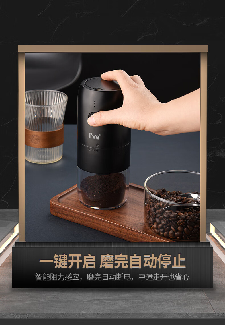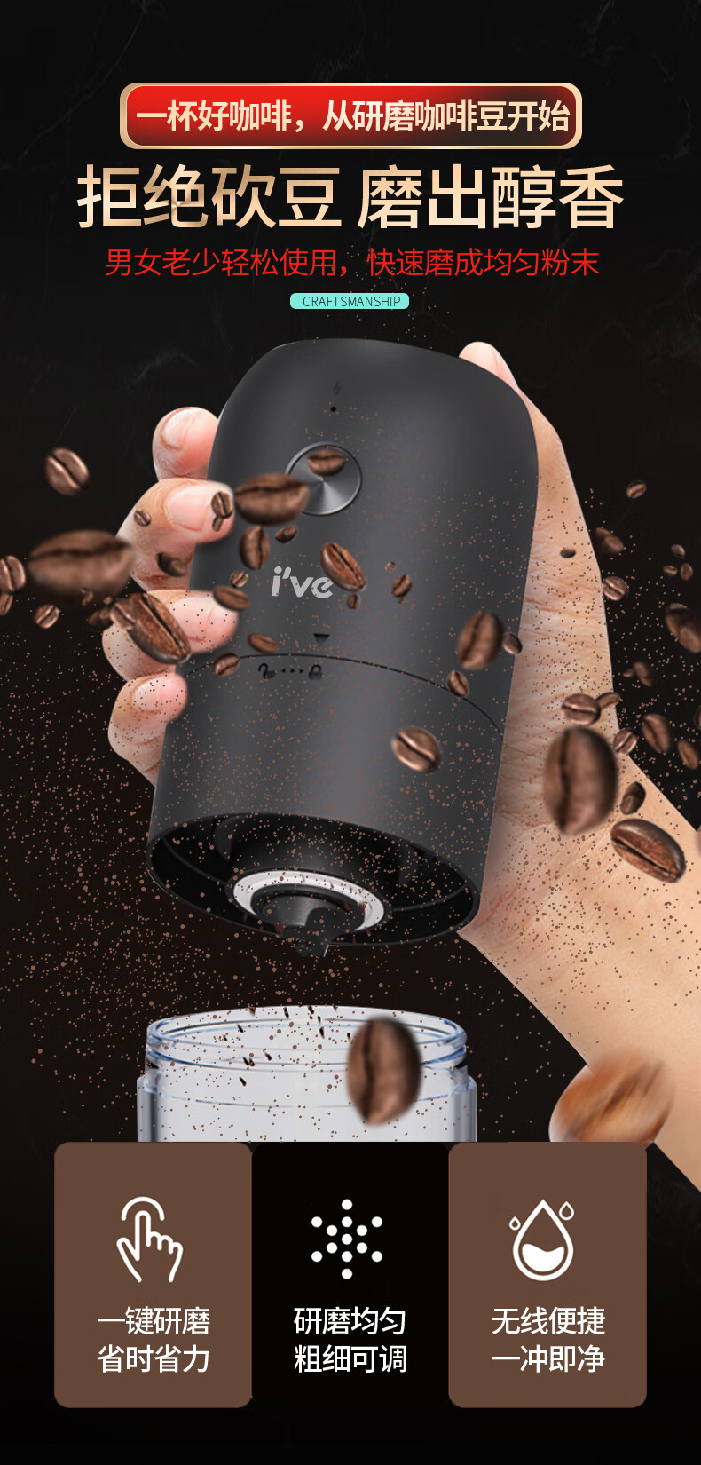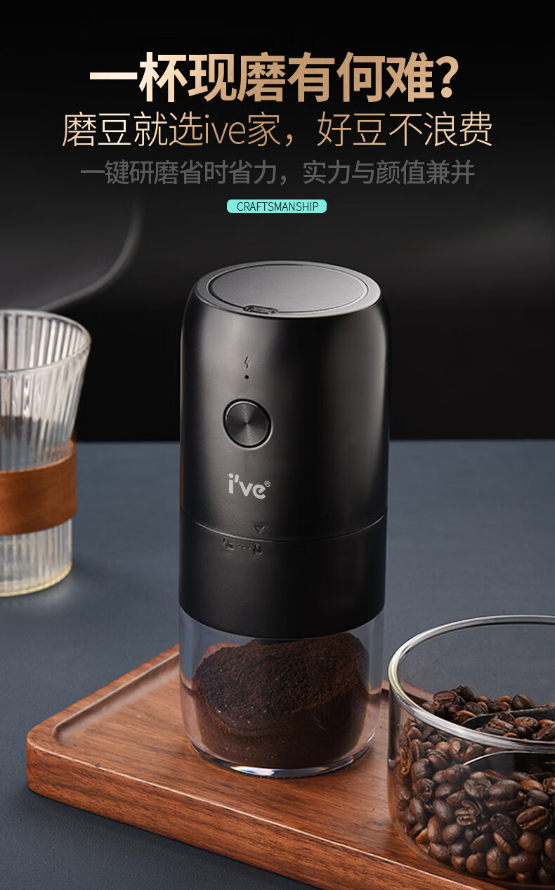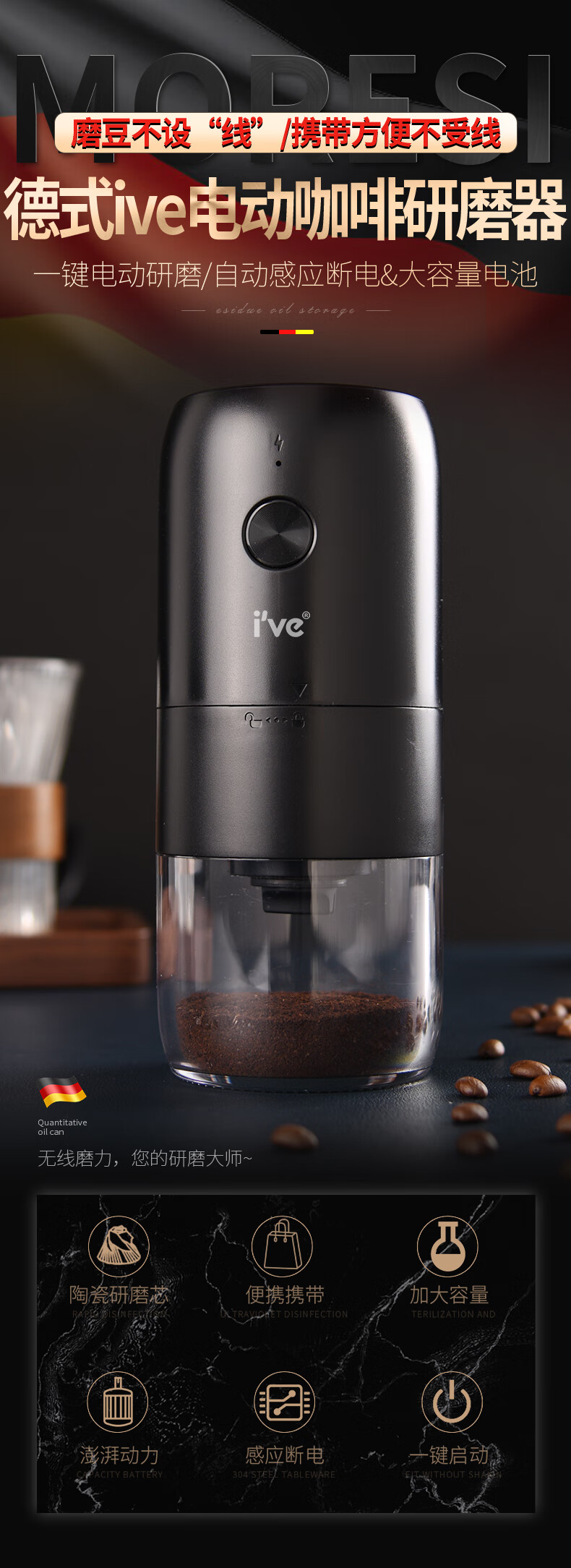 I VE Germany Coffee Grinder Electric Household Coffee Bean Grinder Small Portable Fully Automatic Grinding Grinder Black-Electric Grinder