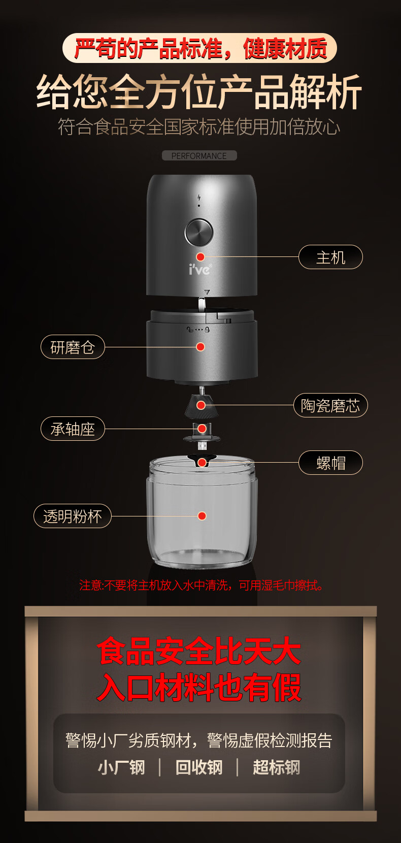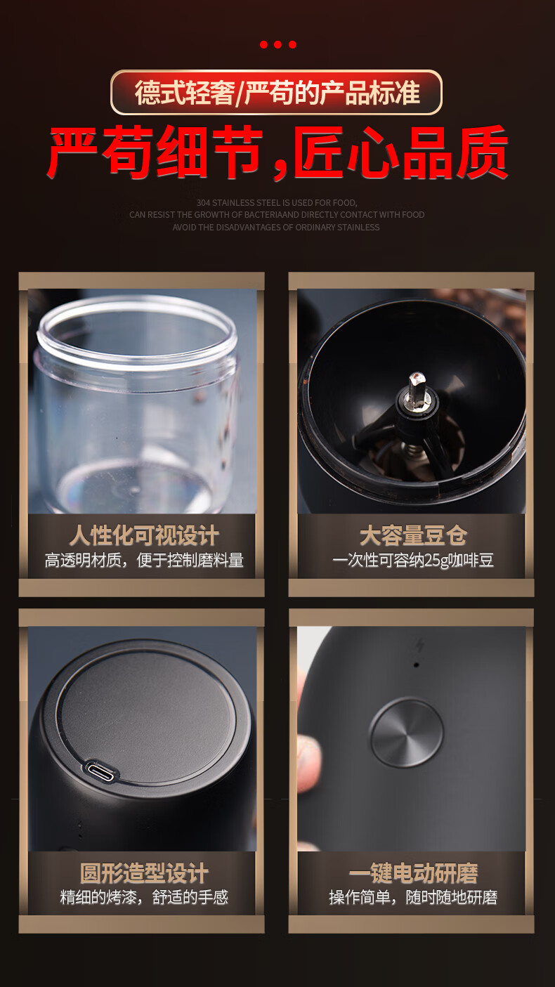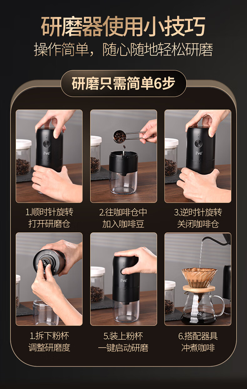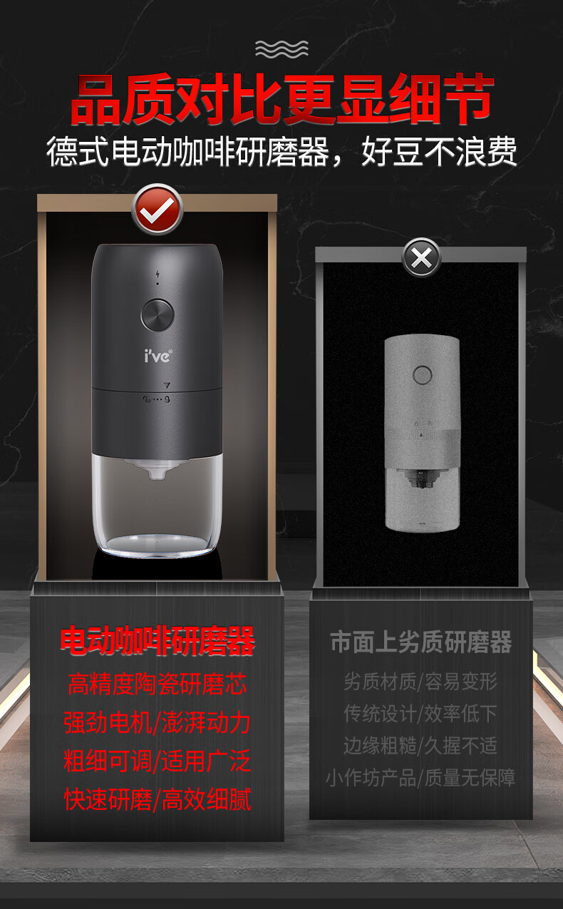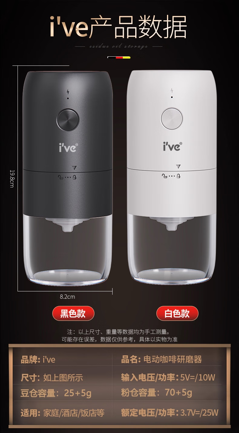 I VE Germany Coffee Grinder Electric Household Coffee Bean Grinder Small Portable Fully Automatic Grinding Grinder Black-Electric Grinder