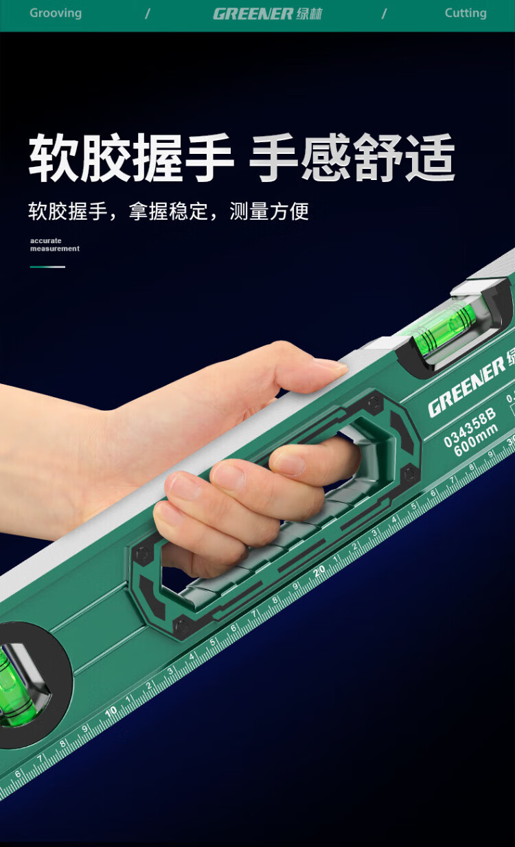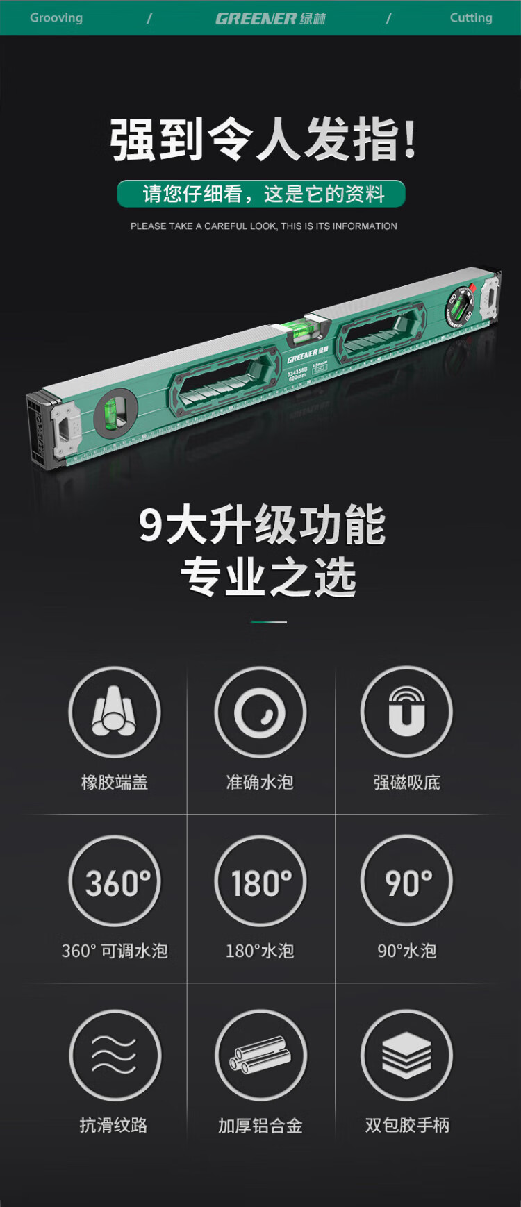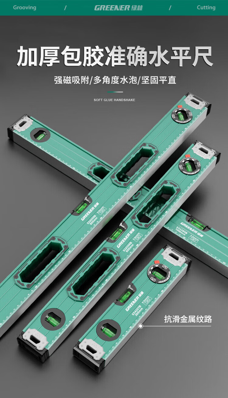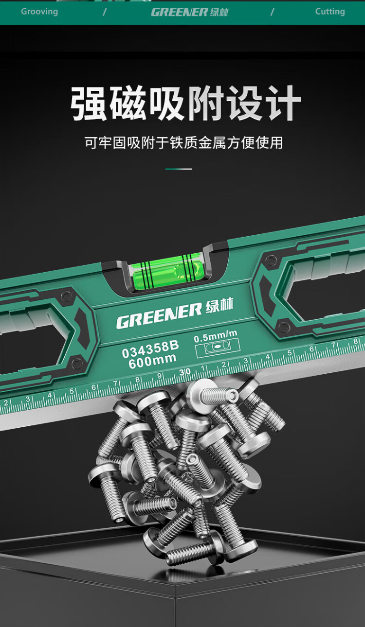 GREENER spirit level strong magnetic high-precision leveling water level anti-fall balancer small aluminum alloy measuring and decoration ruler 600mm strong magnetic industrial model