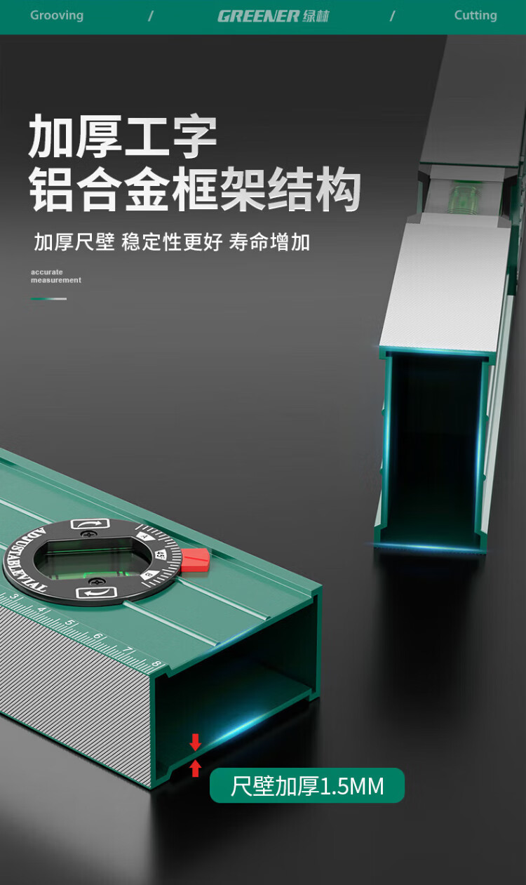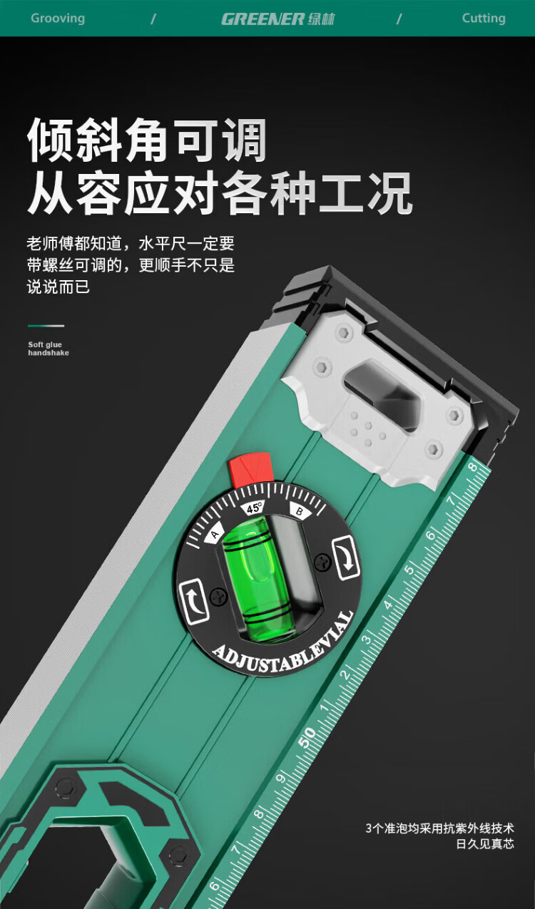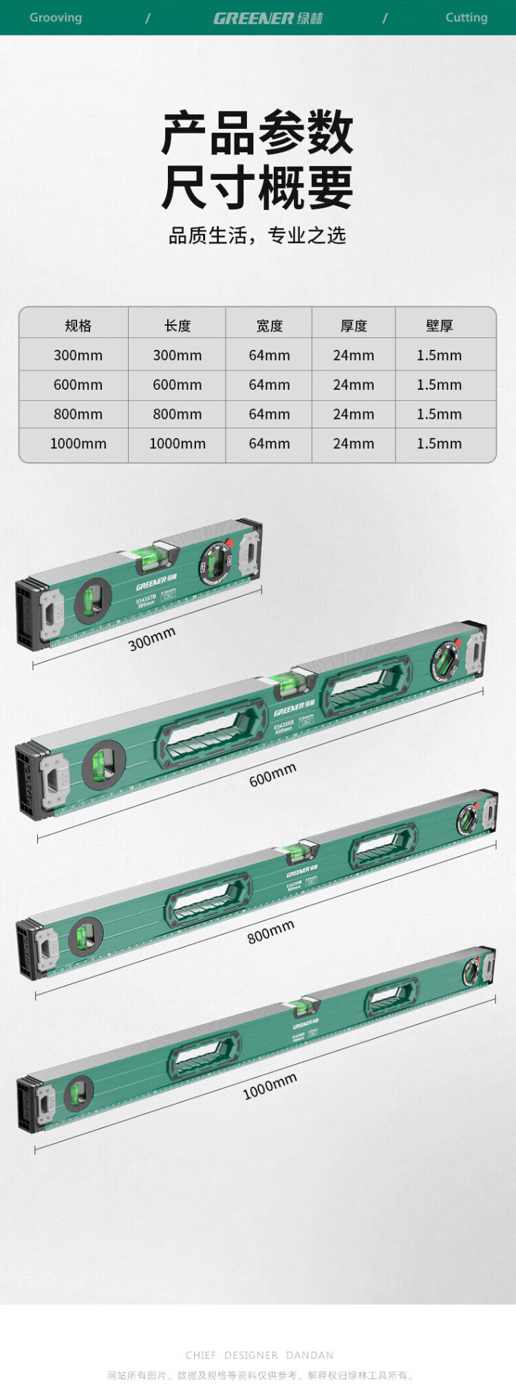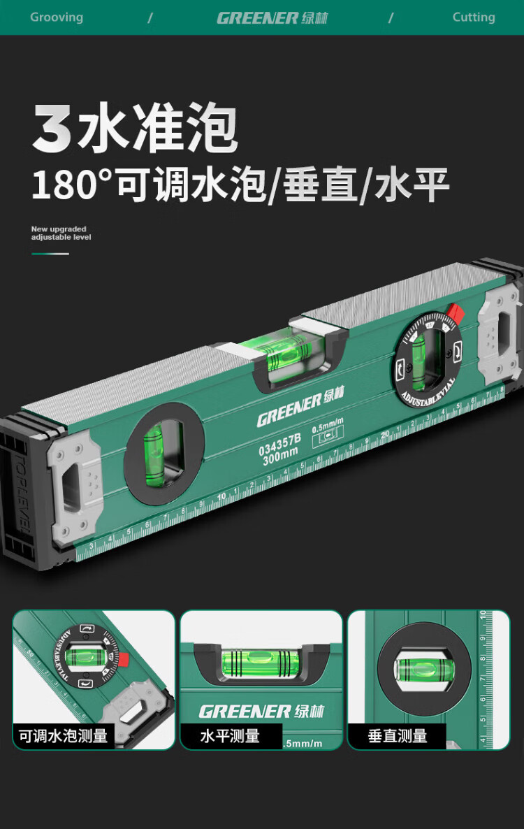 GREENER spirit level strong magnetic high-precision leveling water level anti-fall balancer small aluminum alloy measuring and decoration ruler 600mm strong magnetic industrial model