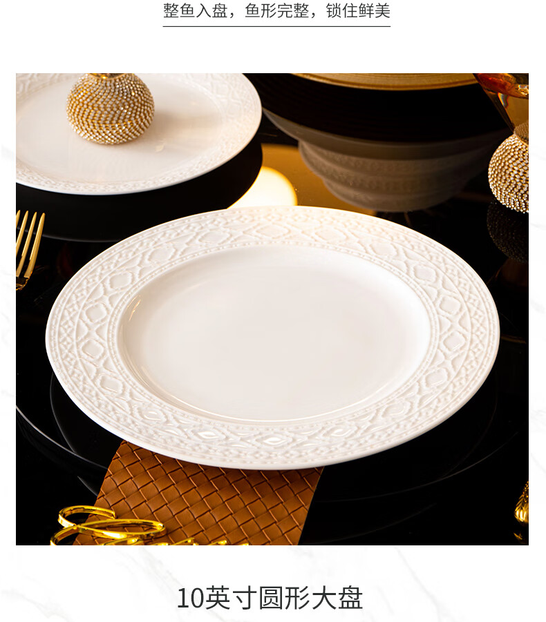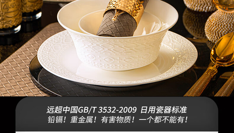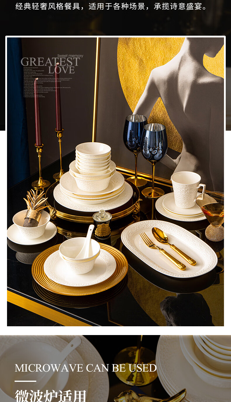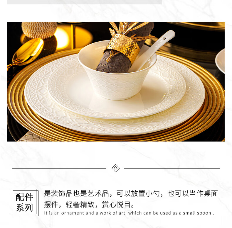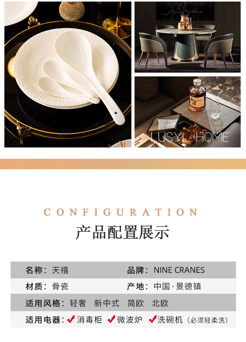 NINE CRANES embossed tableware complete set of household bowls and plates, high-end Jingdezhen underglaze color bone china tableware, housewarming gift bowl and dish set, 60-piece set丨Jingdezhen first-class underglaze color bone china