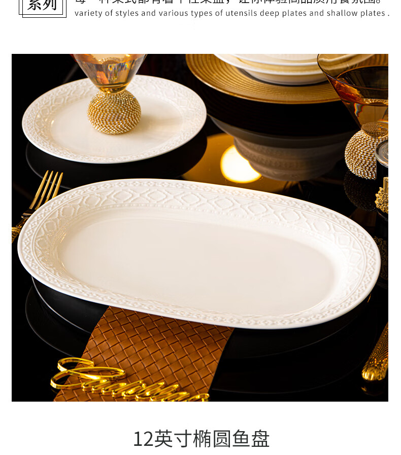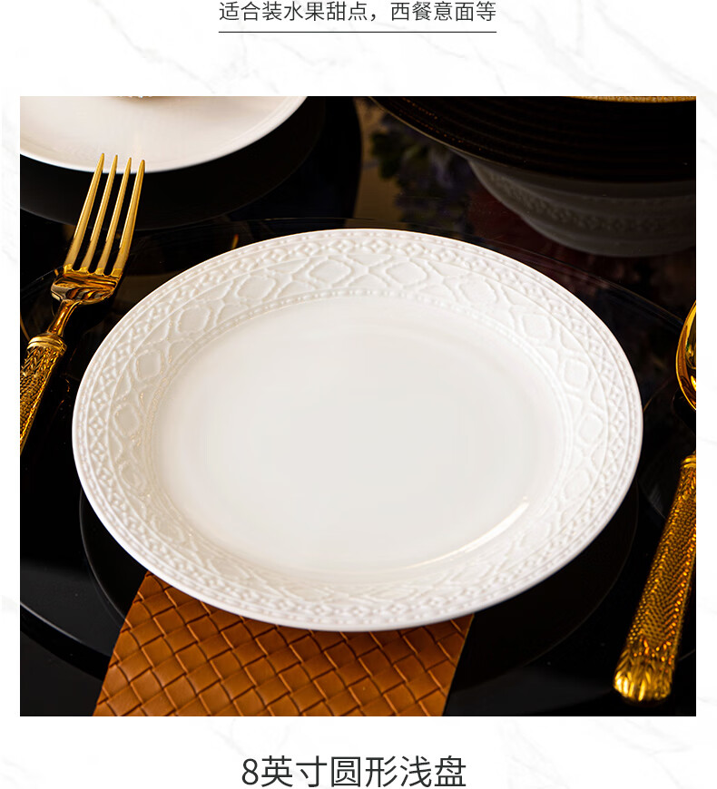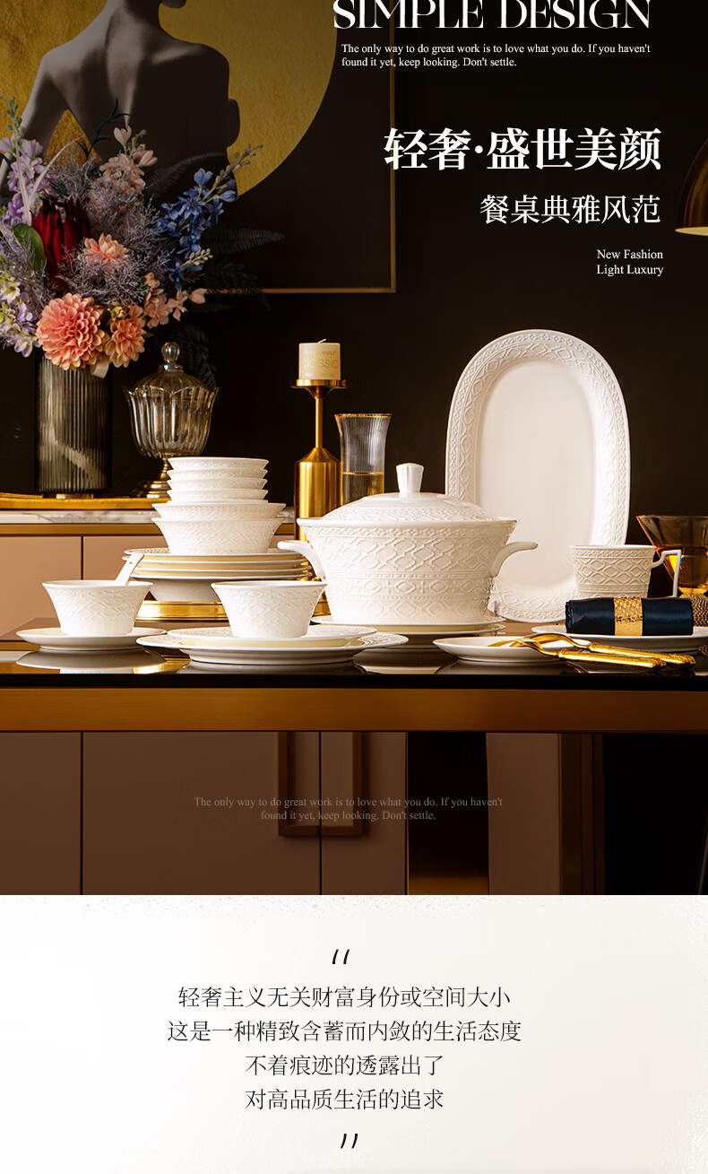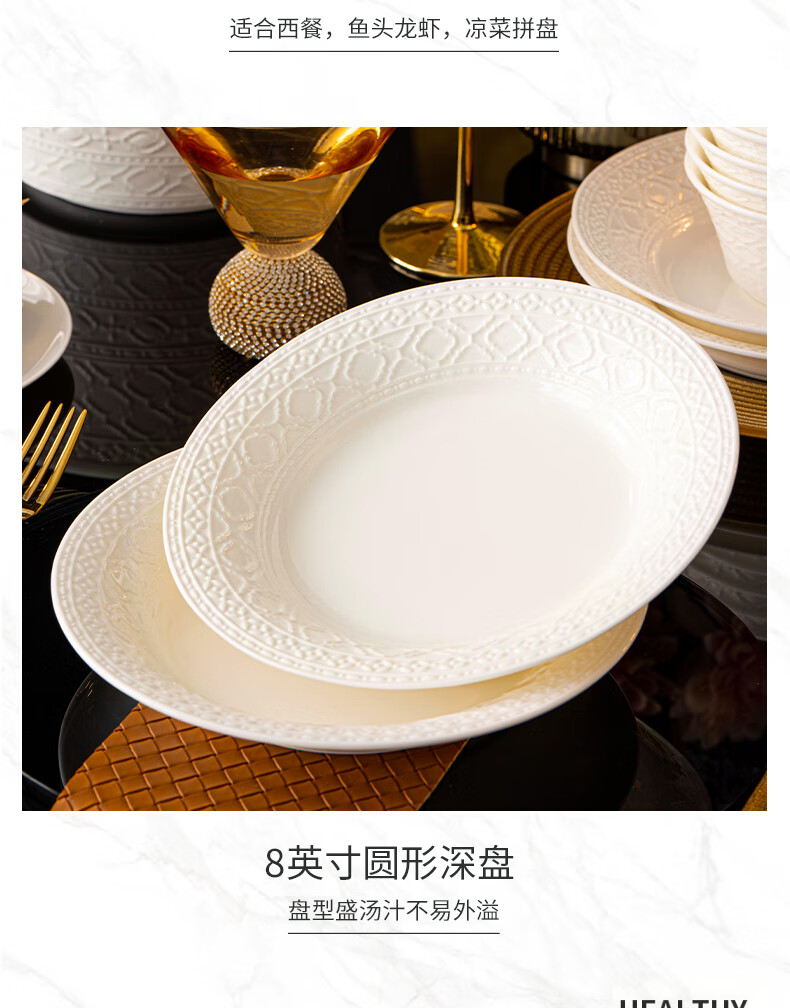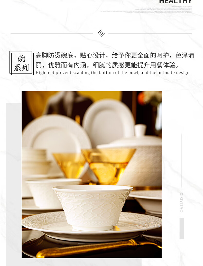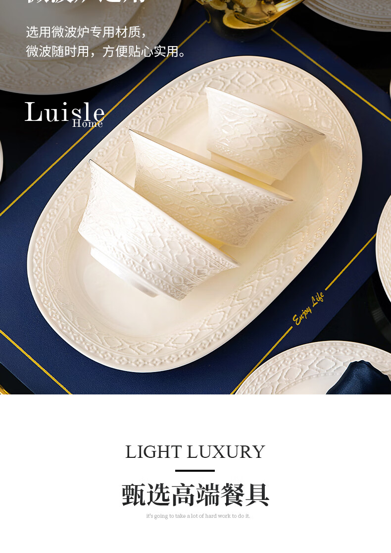 NINE CRANES embossed tableware complete set of household bowls and plates, high-end Jingdezhen underglaze color bone china tableware, housewarming gift bowl and dish set, 60-piece set丨Jingdezhen first-class underglaze color bone china