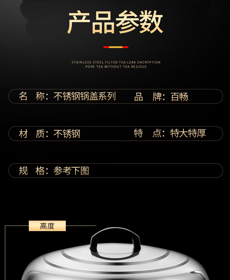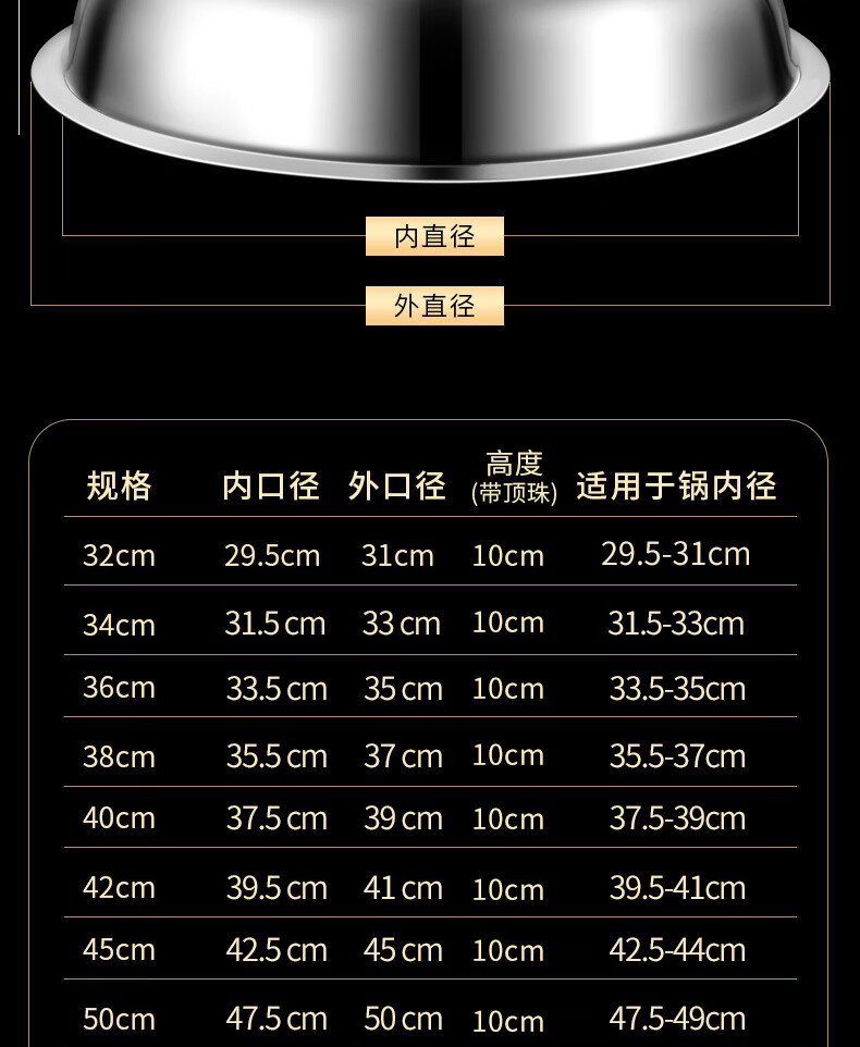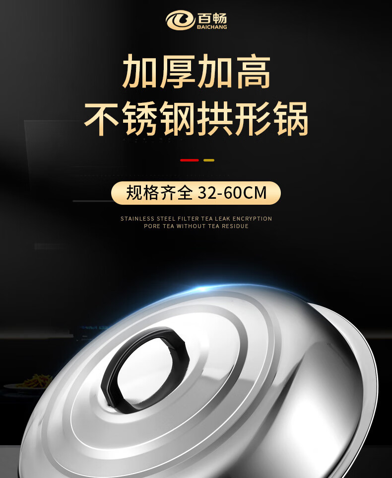 BAICHANG pot lid for household rural old-fashioned earth stove large iron pot lid stainless steel elevated arch wok lid universal large size 50cm suitable for pot inner diameter 46-47cm no specifications