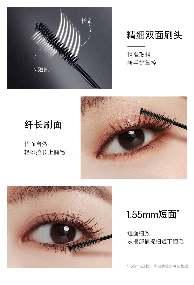 Kazilan Big Eyes Mascara Micro-Sculpted Big Eyes Double-Headed Mascara Thick Volume Double Effect Mascara Waterproof and Anti-Big Eyes Slim Mascara (Fine Style) Black
