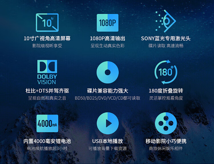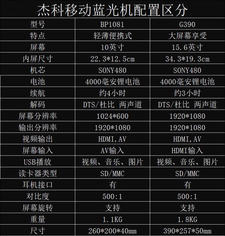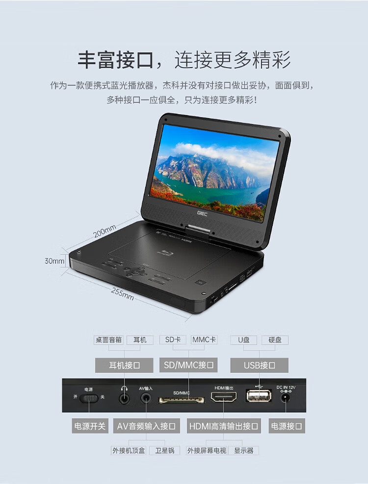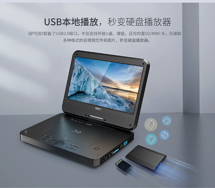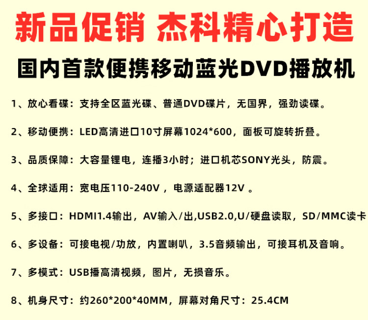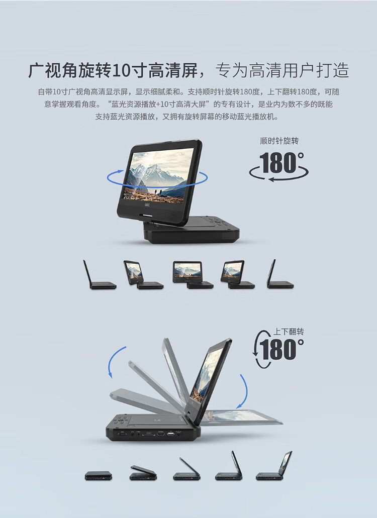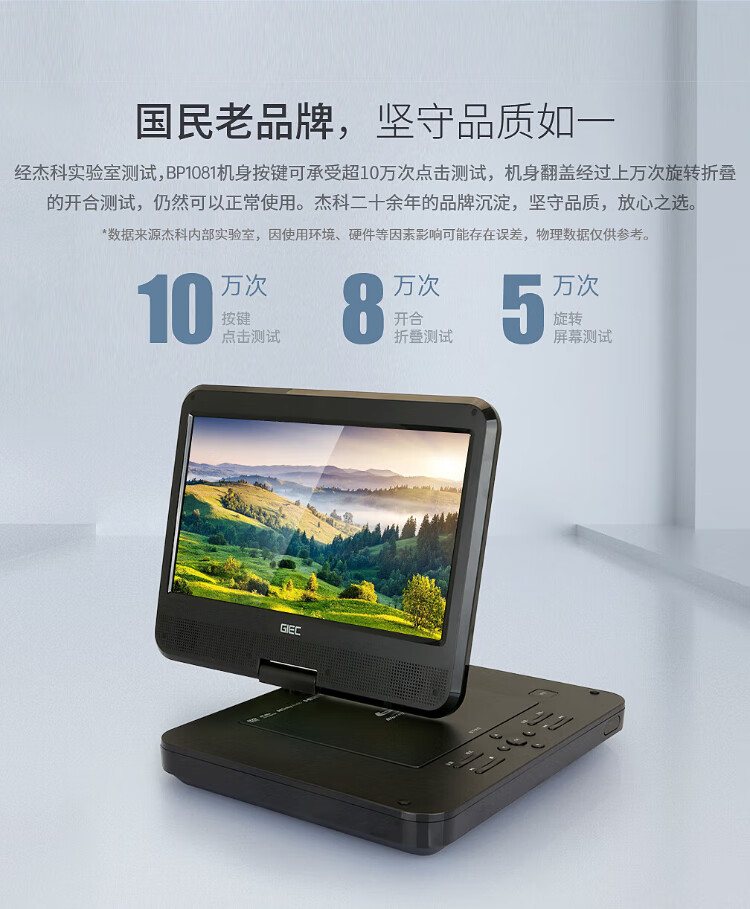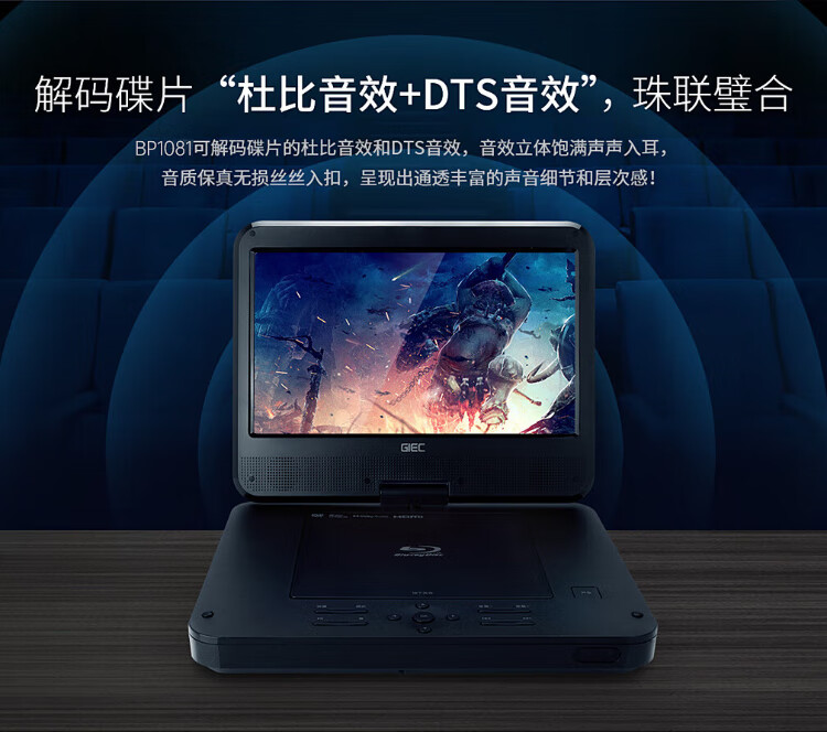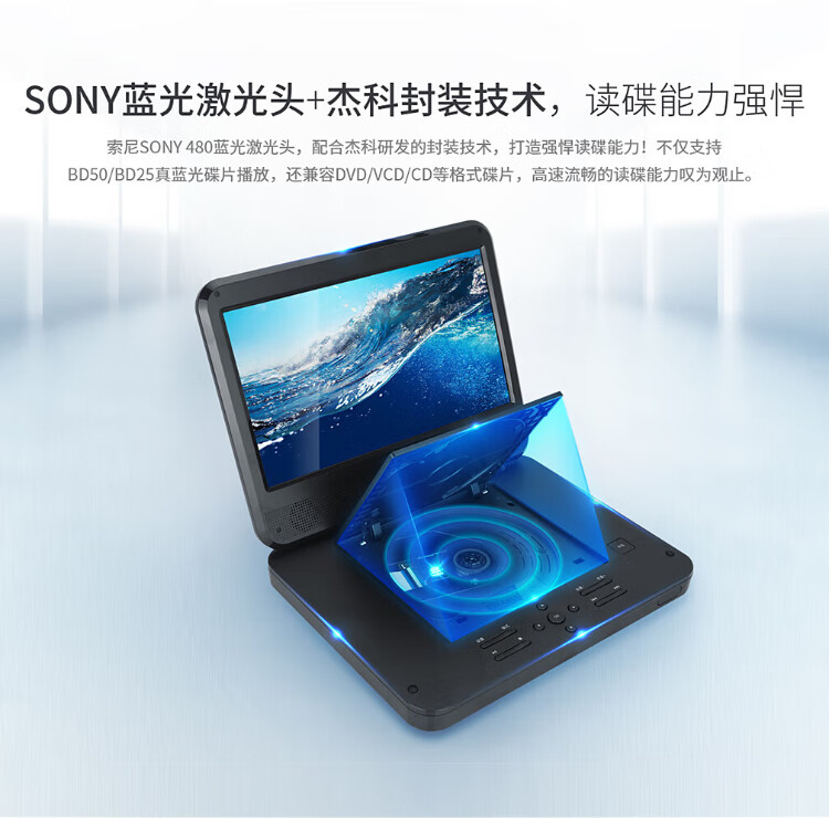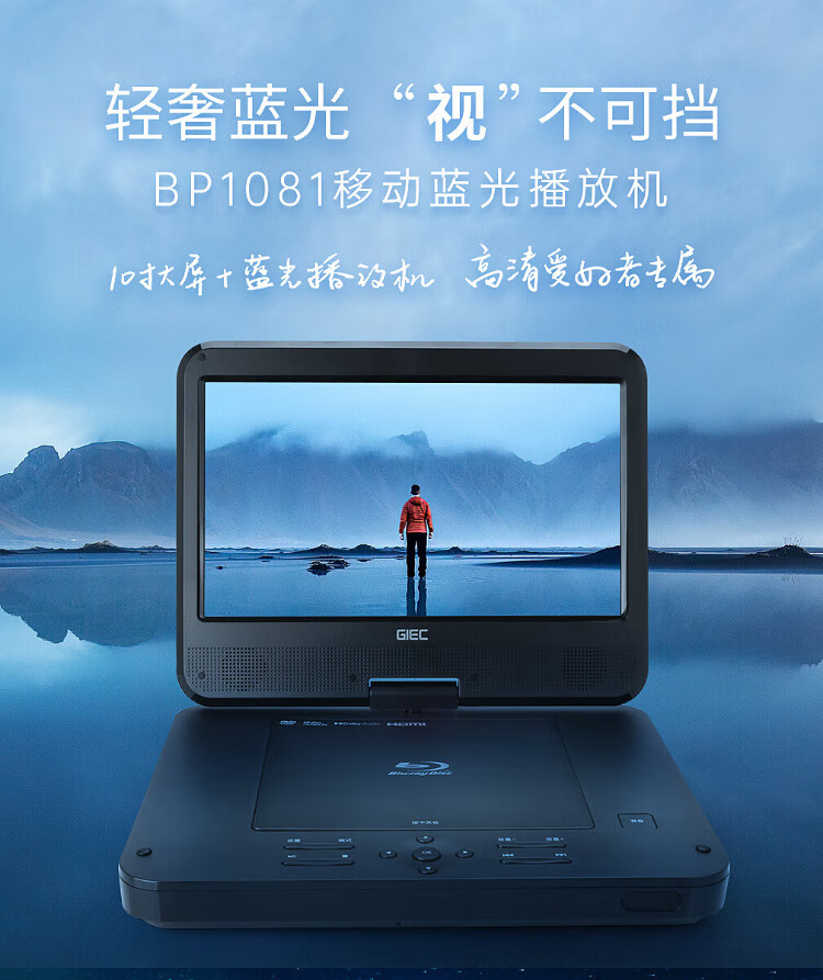 Jieke BP1081 10-inch screen mobile portable Blu-ray player HD DVD player CD home hard drive U disk player built-in battery DTS sound effect BD1081 portable 10-inch screen + 10 Blu-ray discs + handbag