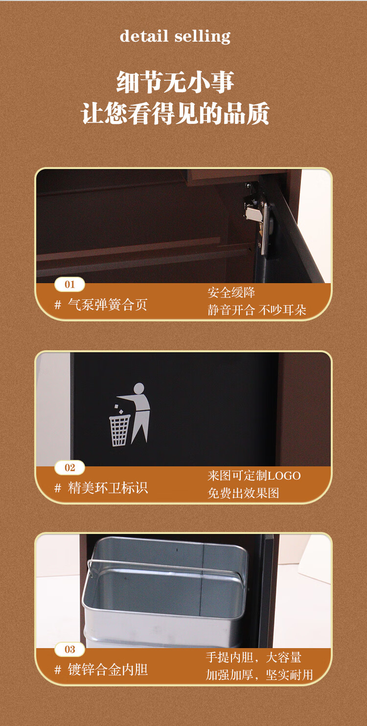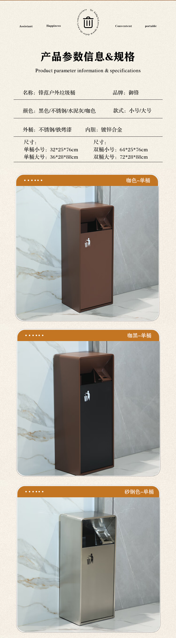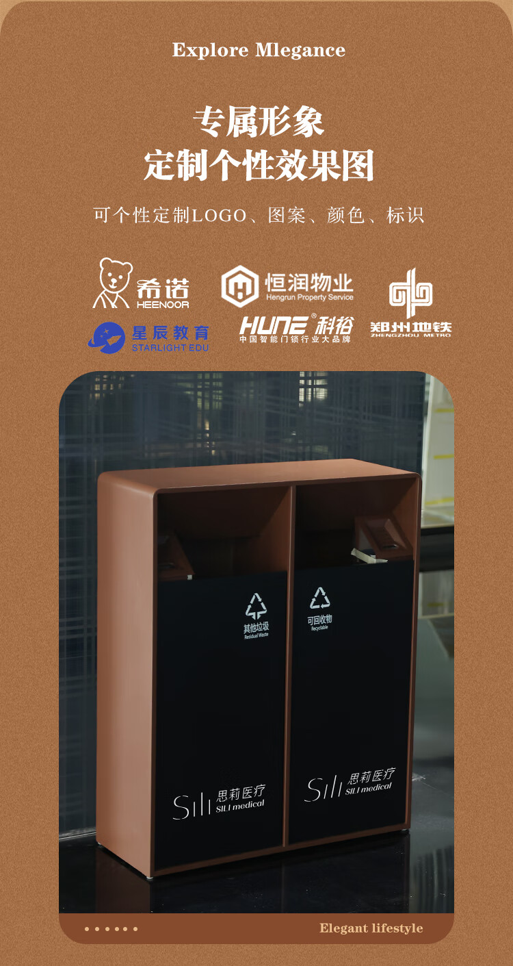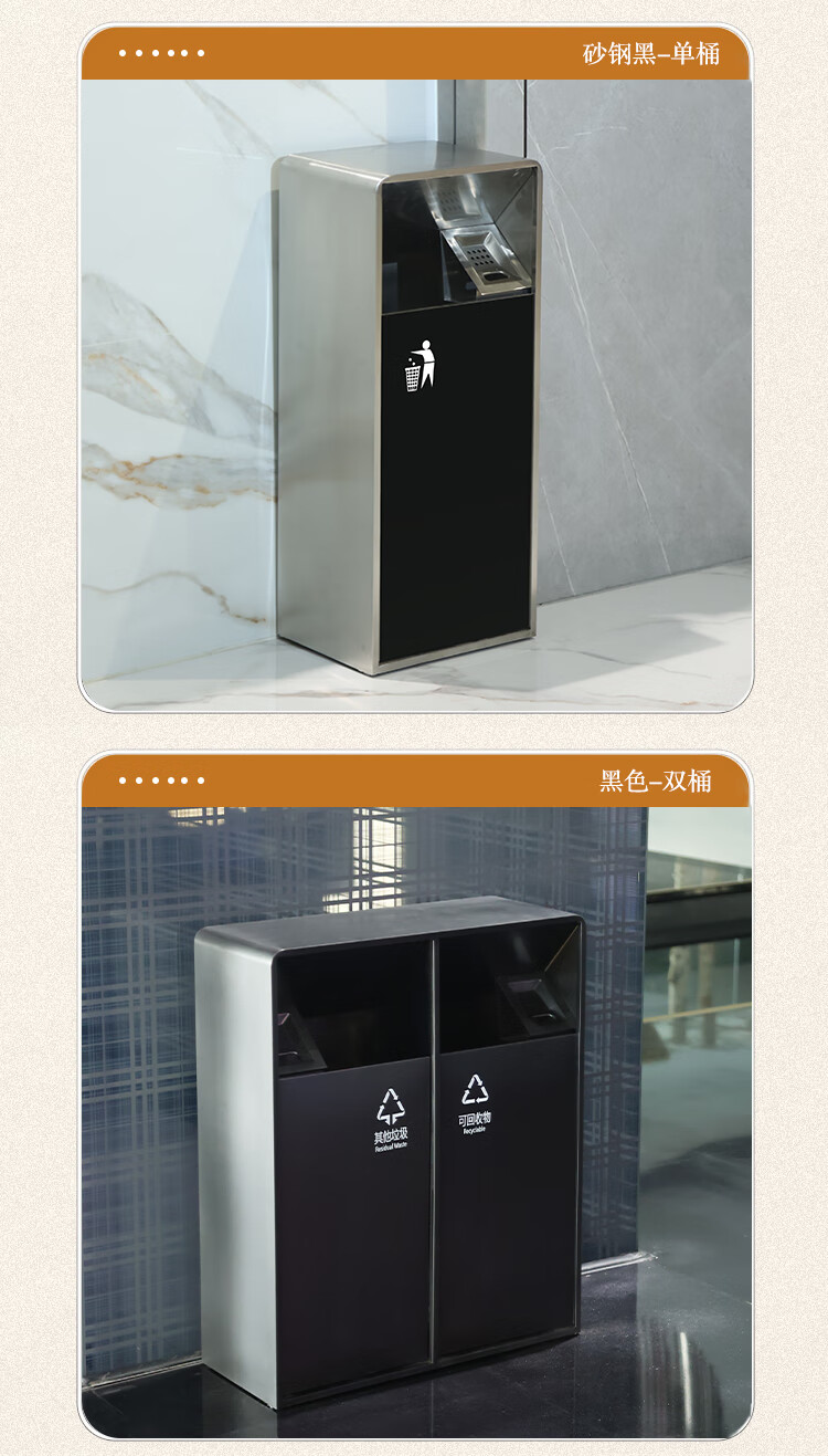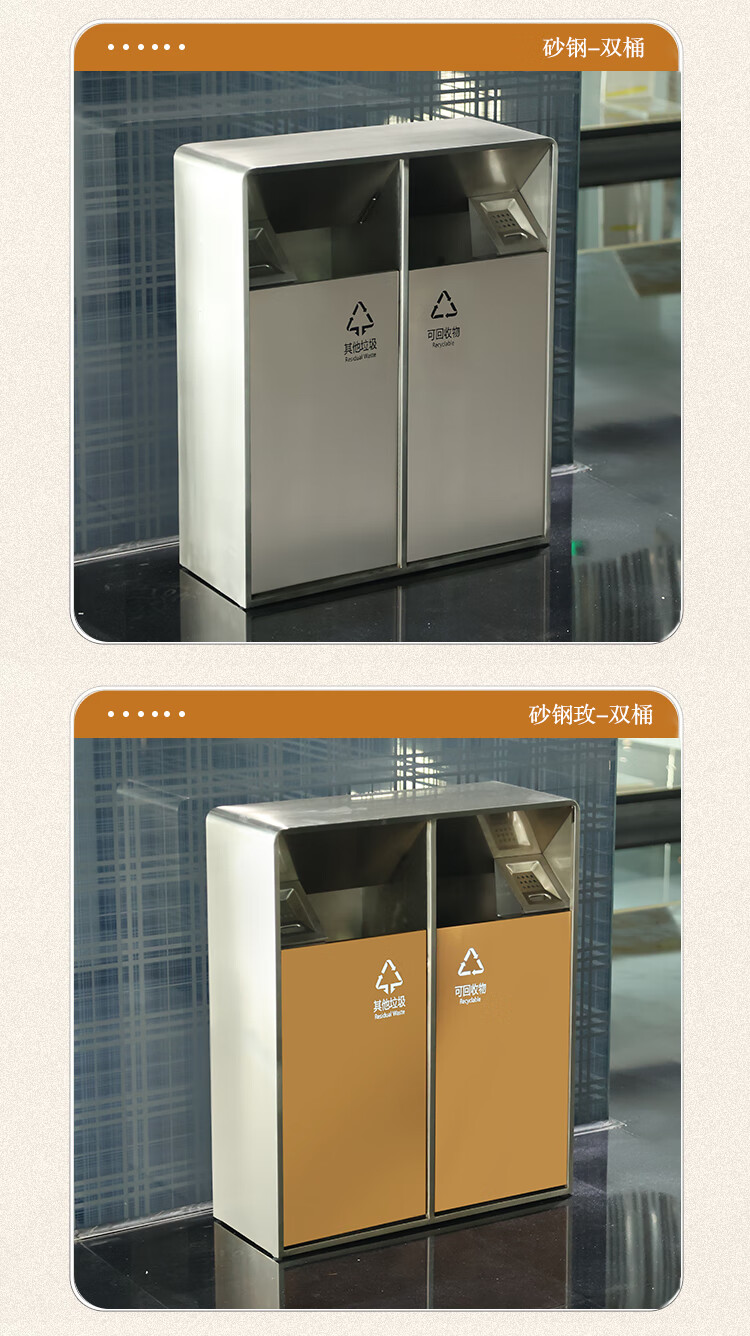 Binge Binge customized commercial stainless steel outdoor trash can hotel lobby with ashtray vertical sorting fruit bin large small white front single bucket 0