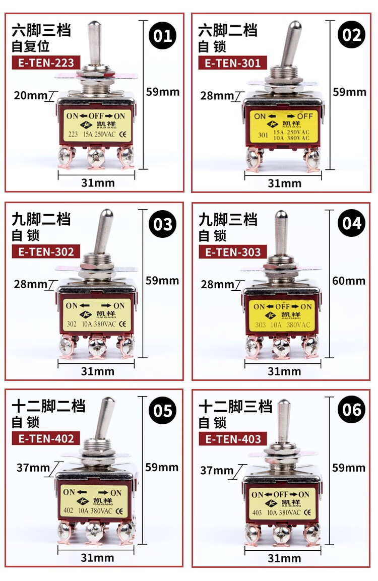 Customized toggle switch lever 2 gears 3 gears rocker button aircraft toggle rocker switch E-TEN1021 twist 1021 (2 feet 2 gears) 1 piece (copper)
