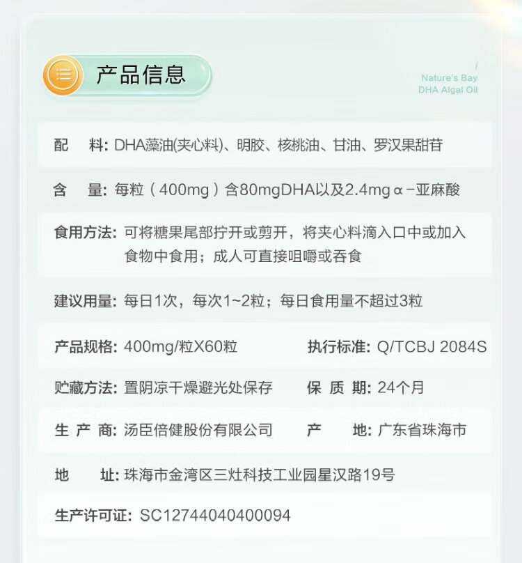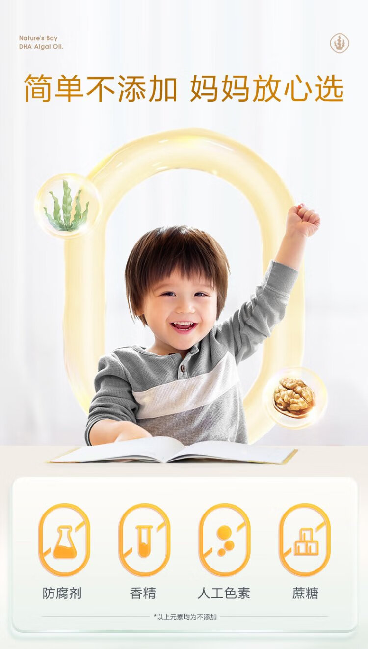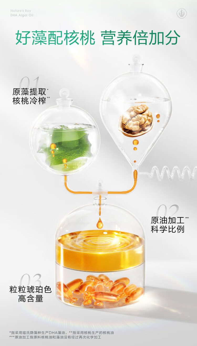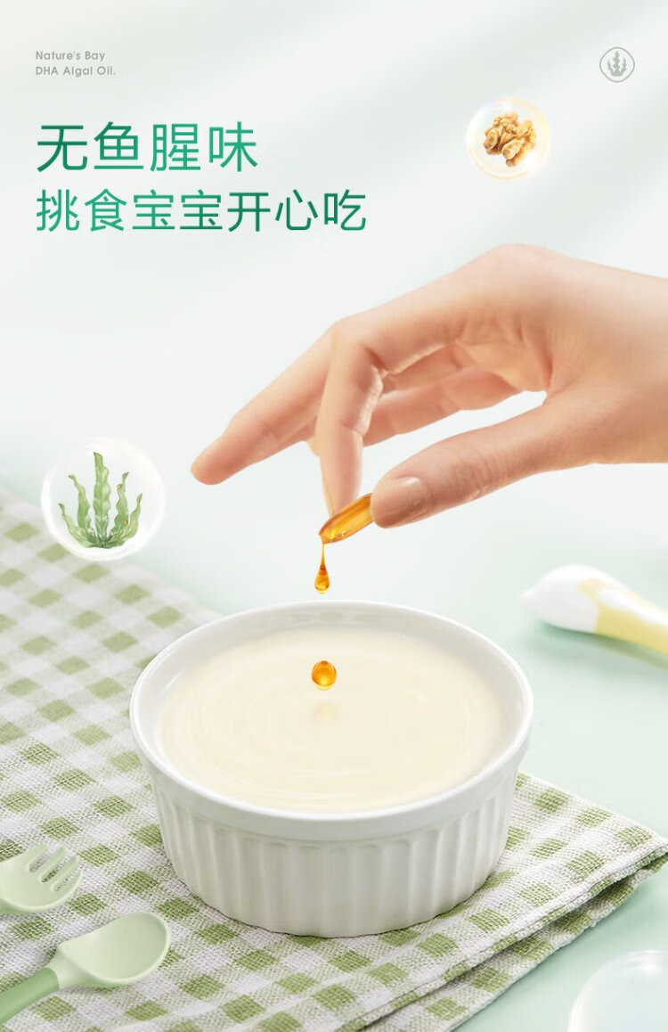 Natural doctor's algae oil dha children's seaweed oil for infants, children, pregnant women, wet nurses, students, edible DHA + walnut oil, upgraded dual nutrition algae oil 60 capsules * 1 bottle