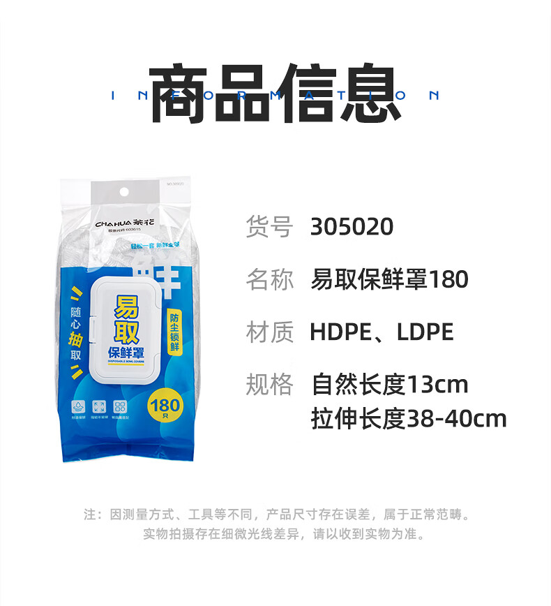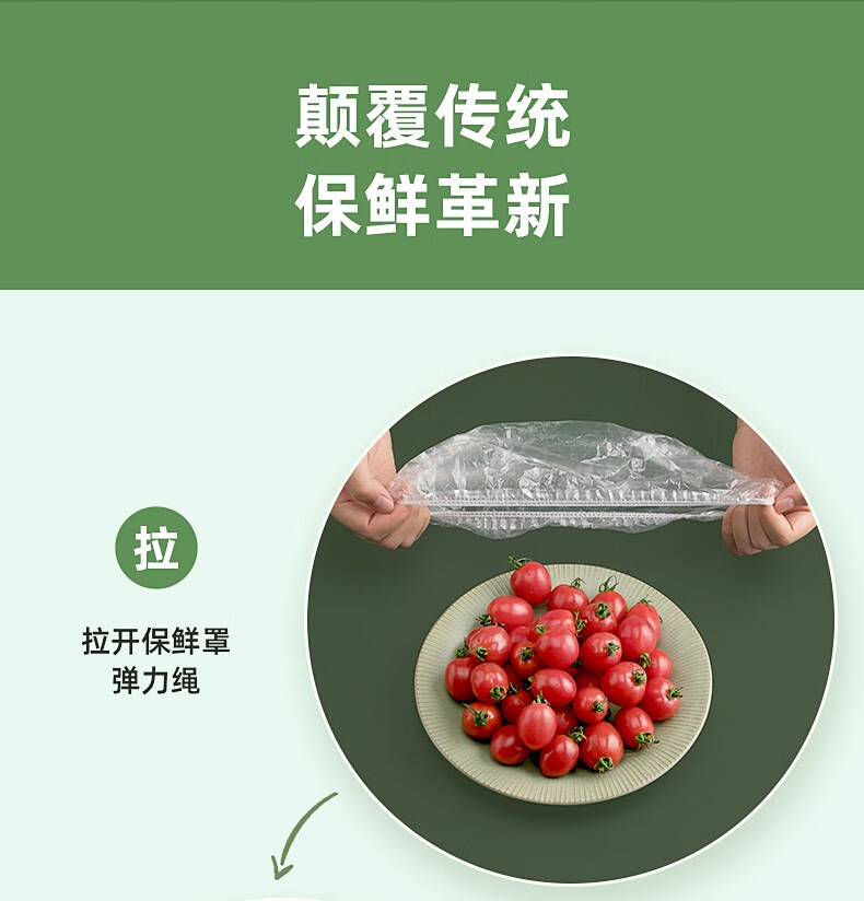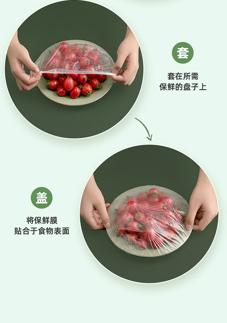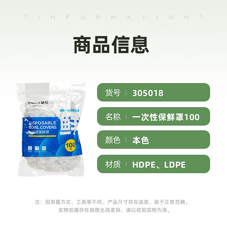 Camellia (CHAHUA) disposable plastic wrap cover tear-free household leftovers elastic fresh-keeping bag food grade special PE set vegetable bag 1 pack total 100 pieces disposable plastic wrap cover