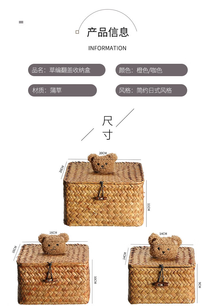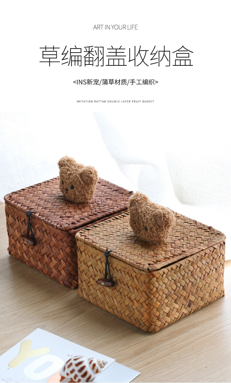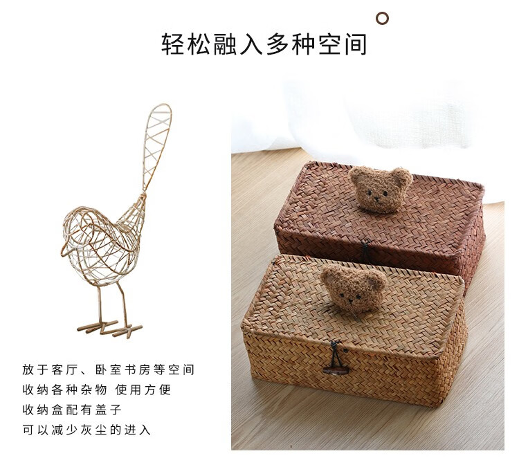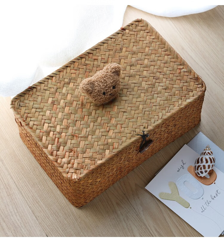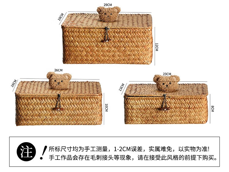 Ken s desktop storage box rattan straw gift box with lid dustproof sundry basket creative gift box jewelry box bear style orange rectangular large size