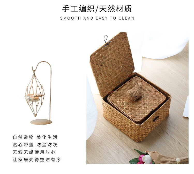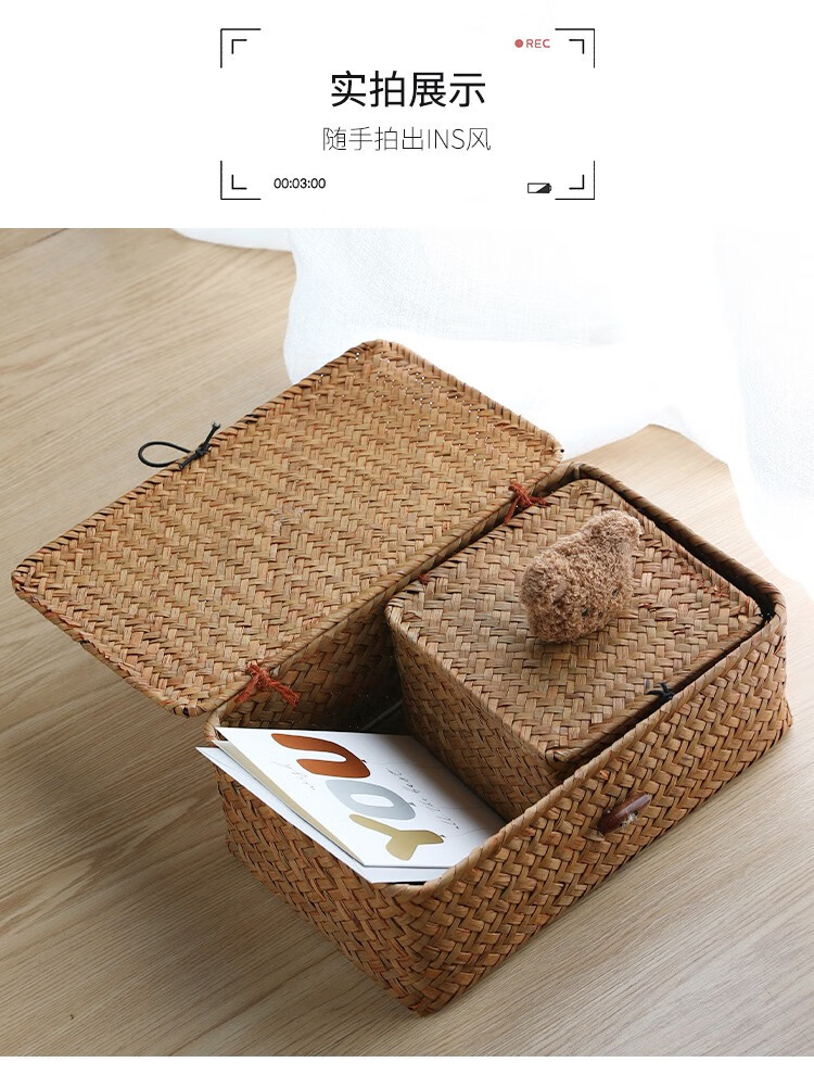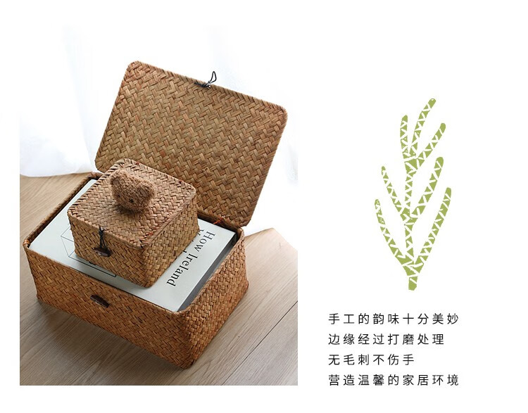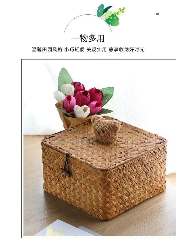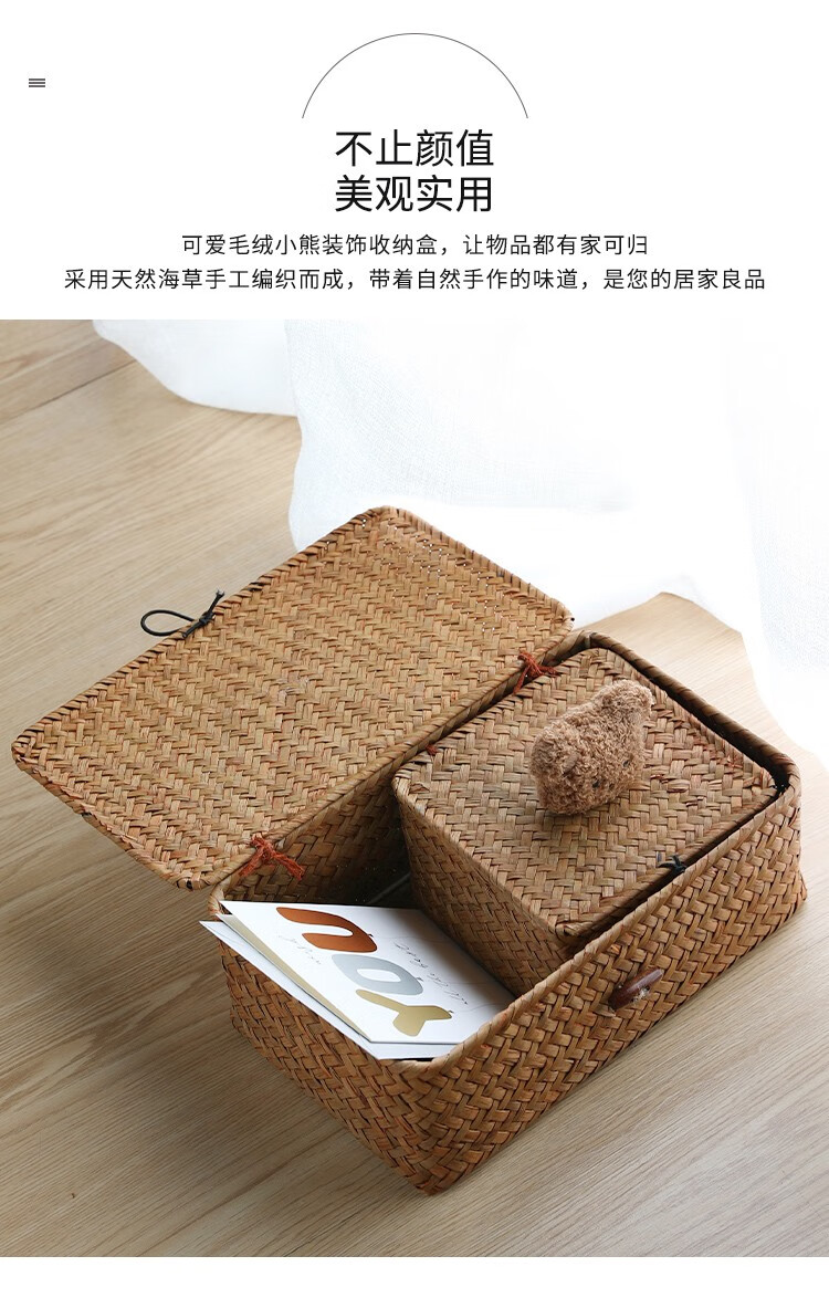 Ken s desktop storage box rattan straw gift box with lid dustproof sundry basket creative gift box jewelry box bear style orange rectangular large size