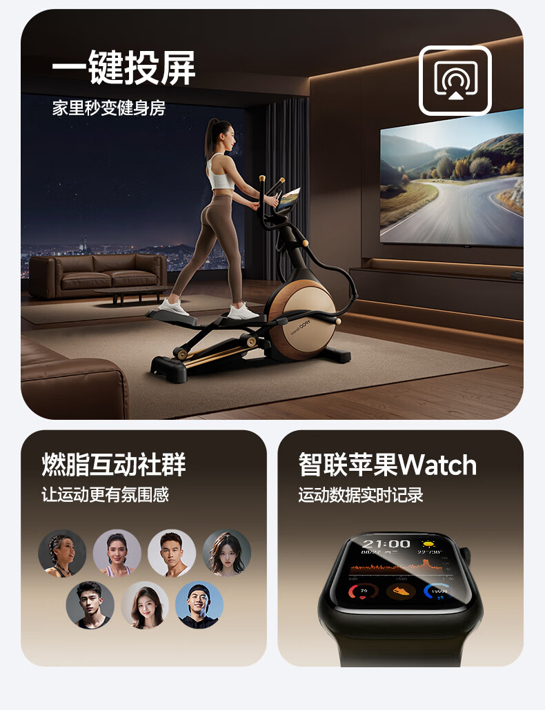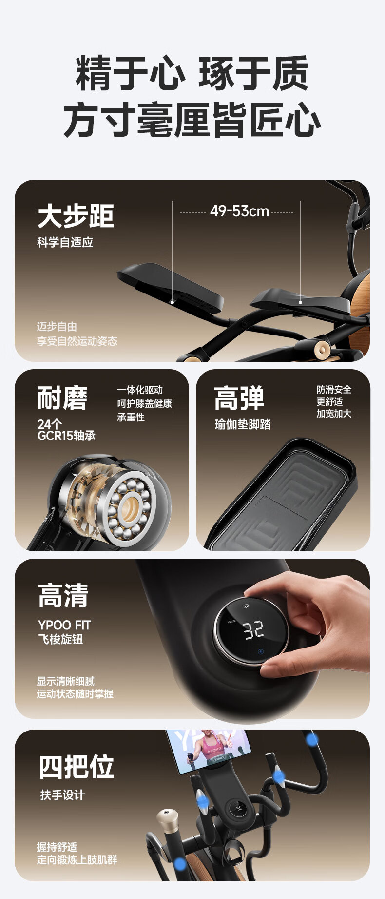 YPOO elliptical machine for home use high-end intelligent silent spacewalker elliptical machine fitness equipment E6 light luxury version/Italian mirror aesthetics/12 electric slope