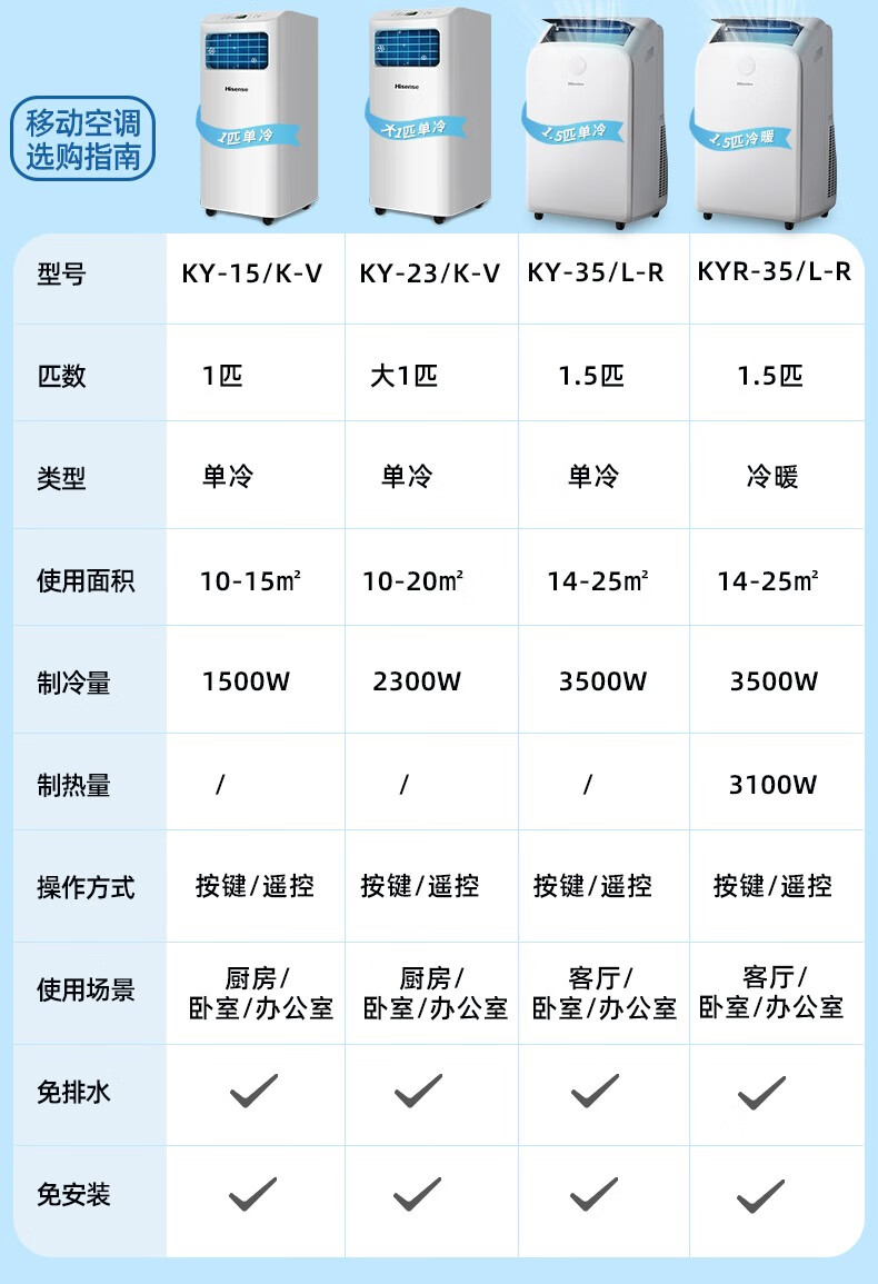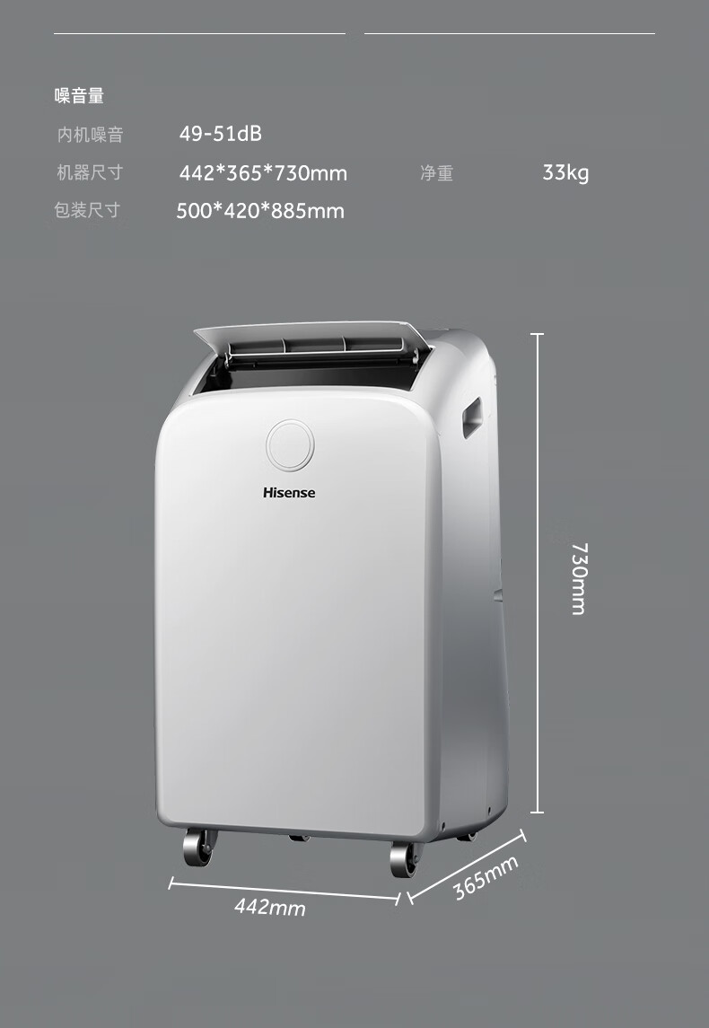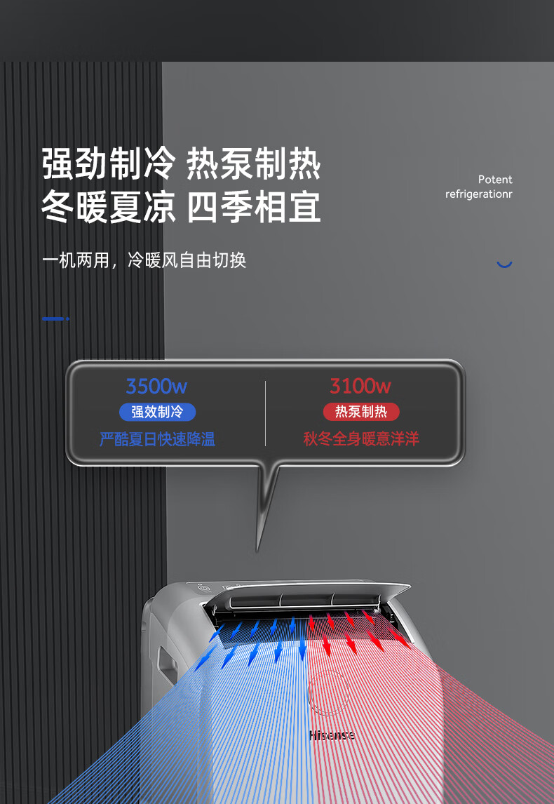 Hisense mobile air conditioner 1.5 HP movable heating and cooling all-in-one air conditioner for home kitchen and living room convenient no outdoor unit installation-free refrigeration vertical small air conditioner 1.5 HP powerful single cooling - door-to-door delivery