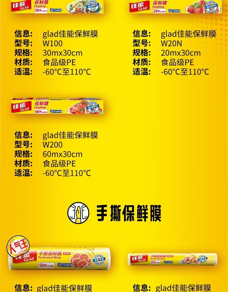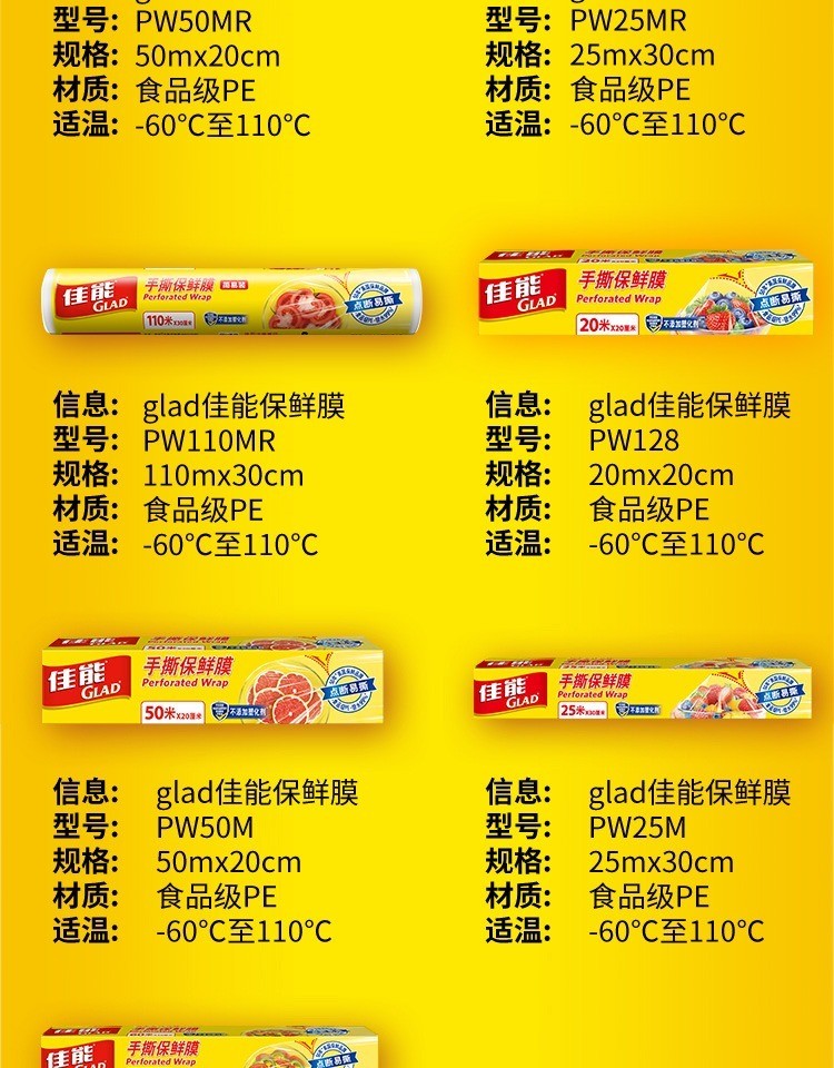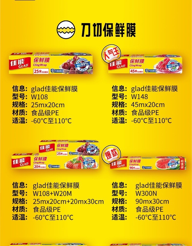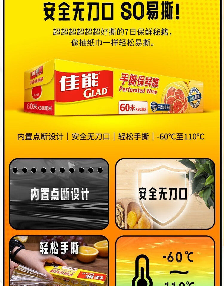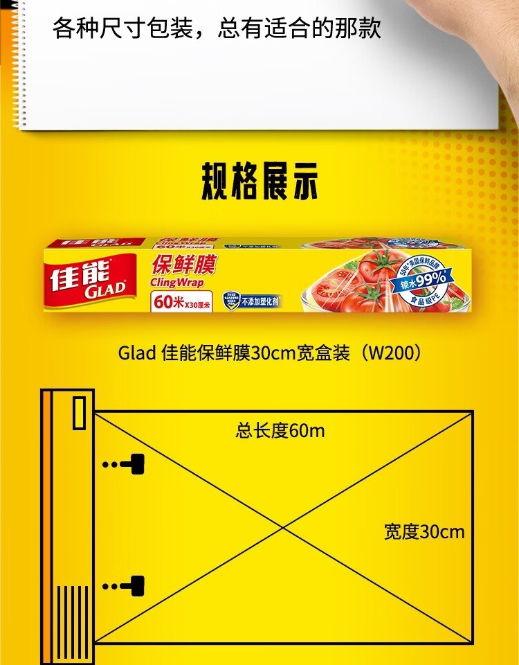 Canon (Glad) Knife-Tear Cling Film Home Kitchen Large Roll Small Roll Microwave Oven Economic Pack Knife-Tear Plastic Wrap Large Size 60 Meters