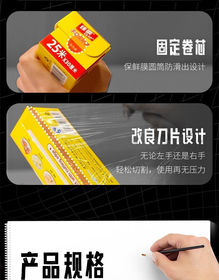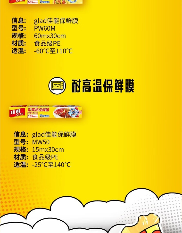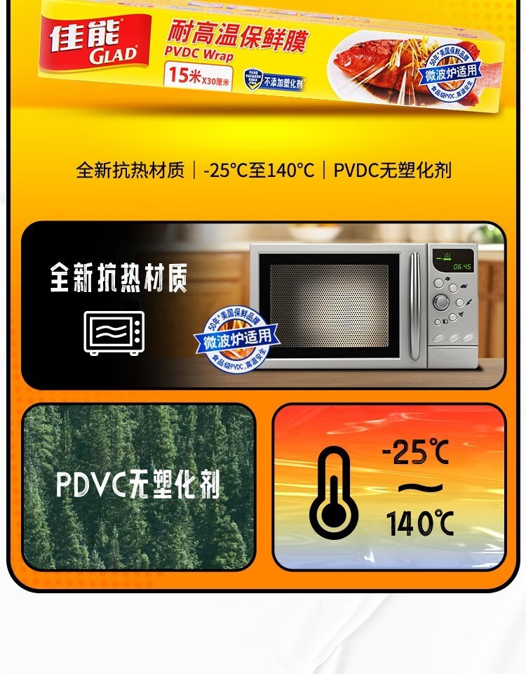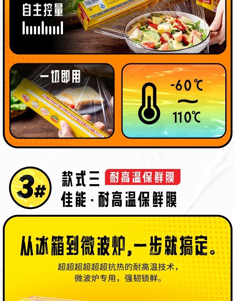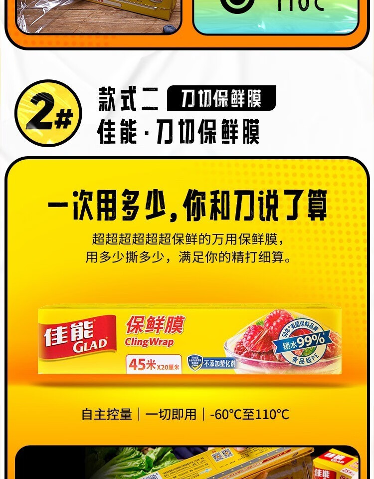 Canon (Glad) Knife-Tear Cling Film Home Kitchen Large Roll Small Roll Microwave Oven Economic Pack Knife-Tear Plastic Wrap Large Size 60 Meters