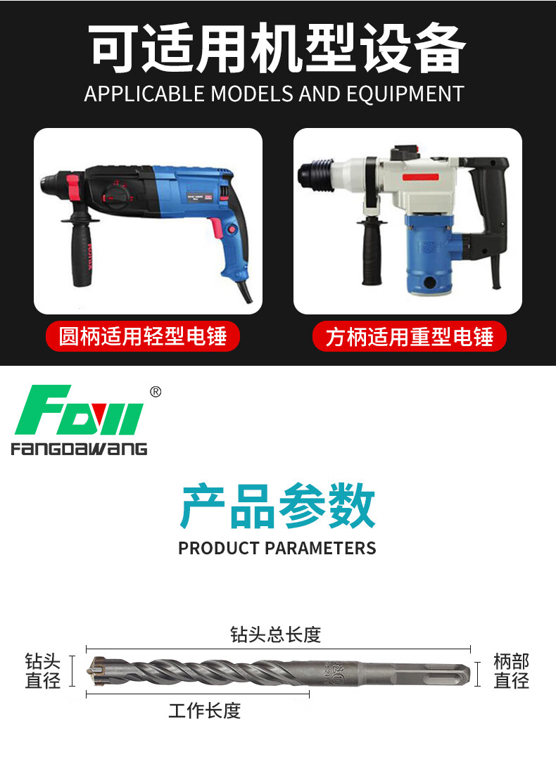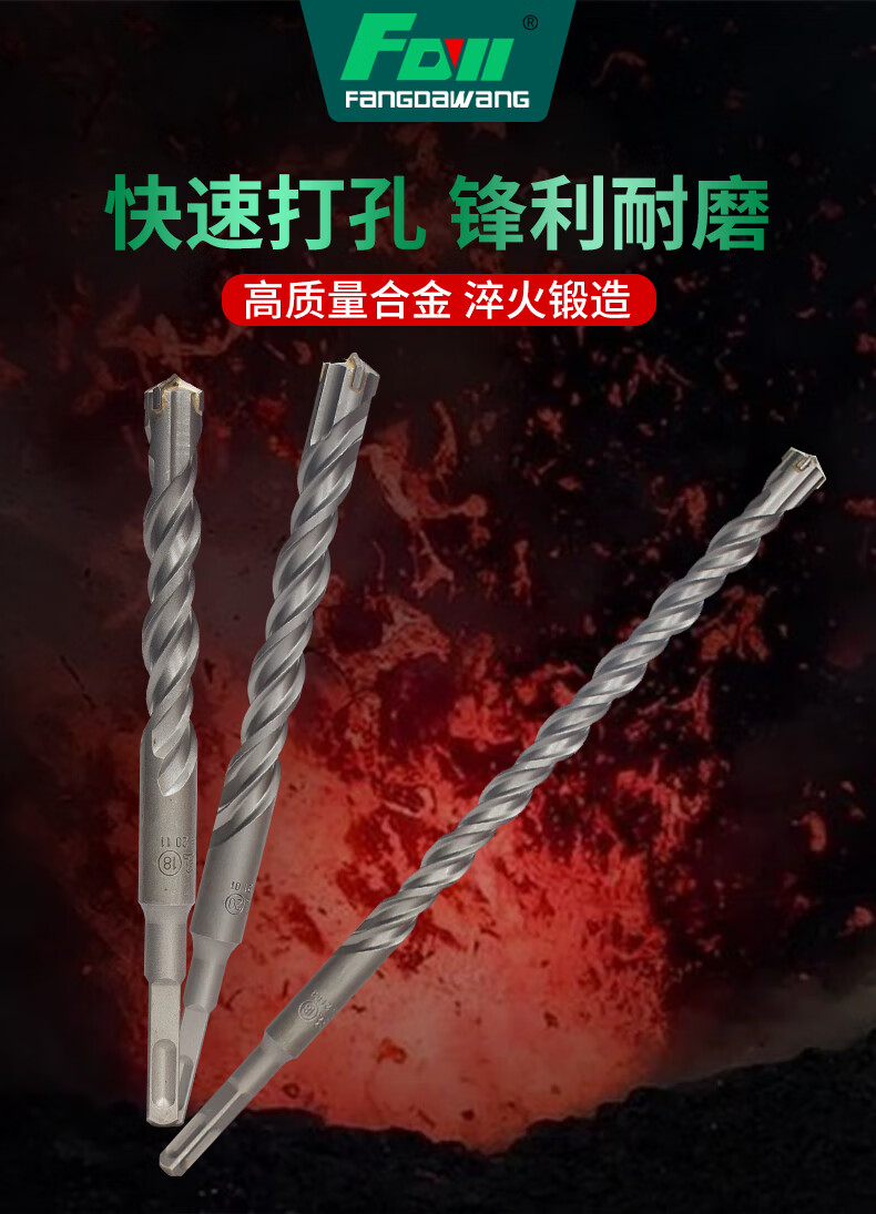 Fang Dawang drill bit cross impact drill bit electric hammer concrete hole through the wall square handle over the wall turn head round handle square handle cross 12x150