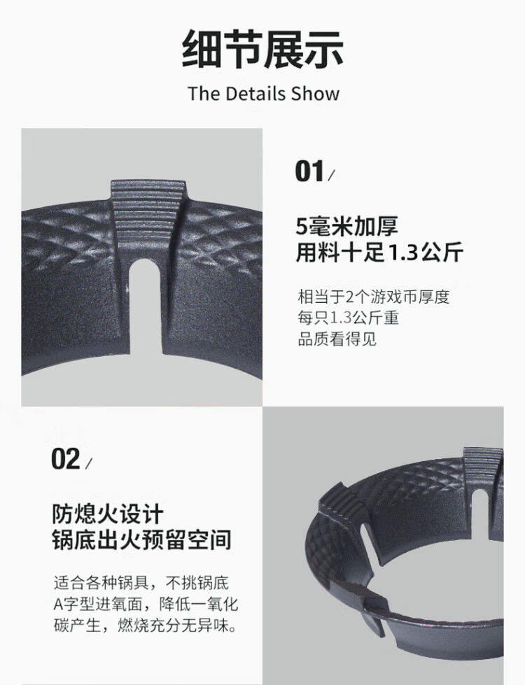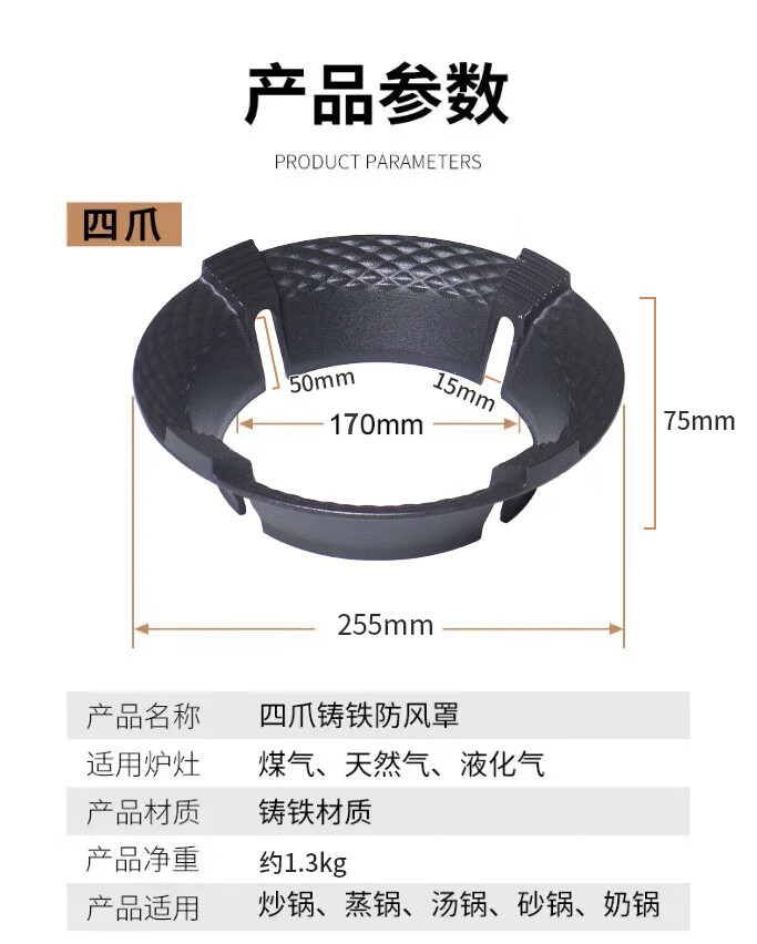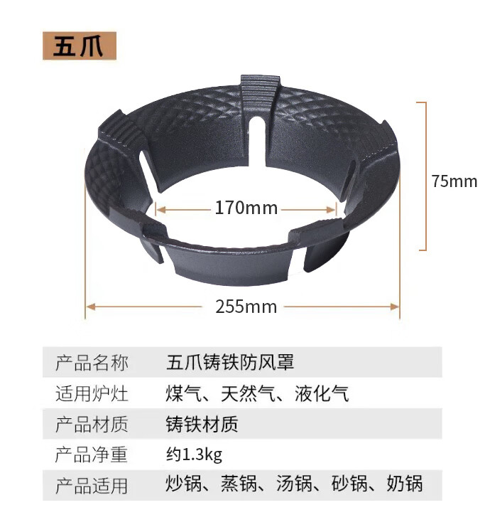 Heston gas stove hood fire cover wind shield gas stove energy-saving wind shield anti-slip universal pot rack bracket sub accessory 4-hole upgraded and heightened cast iron wind shield