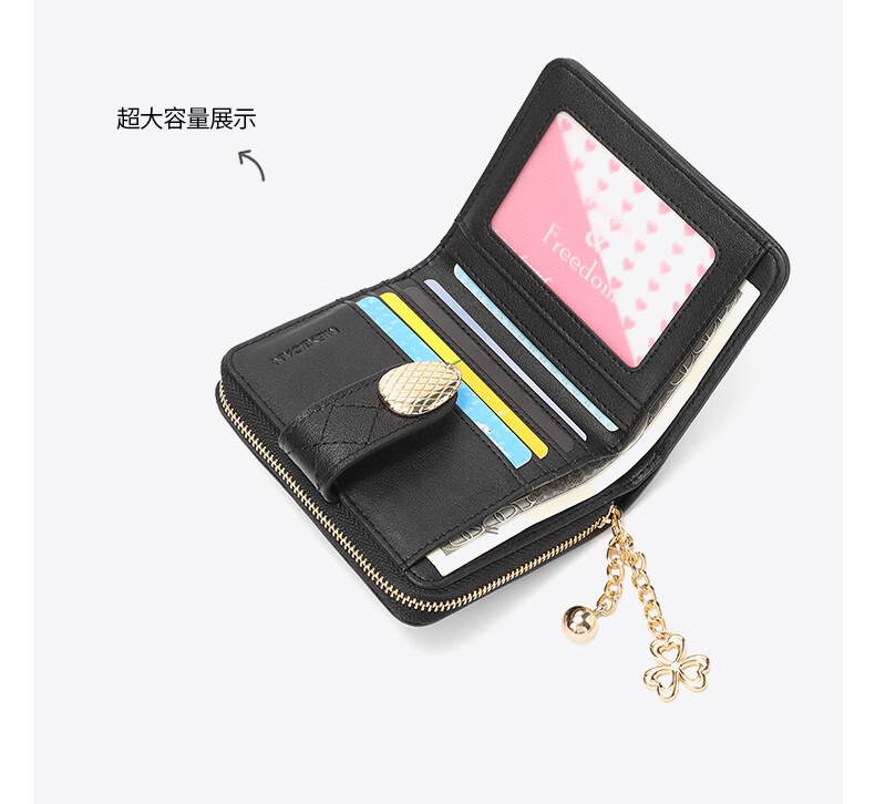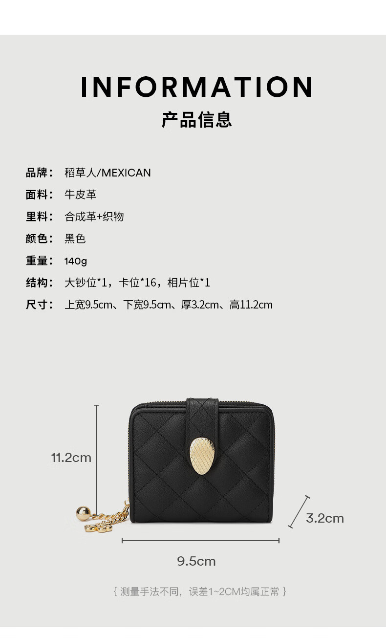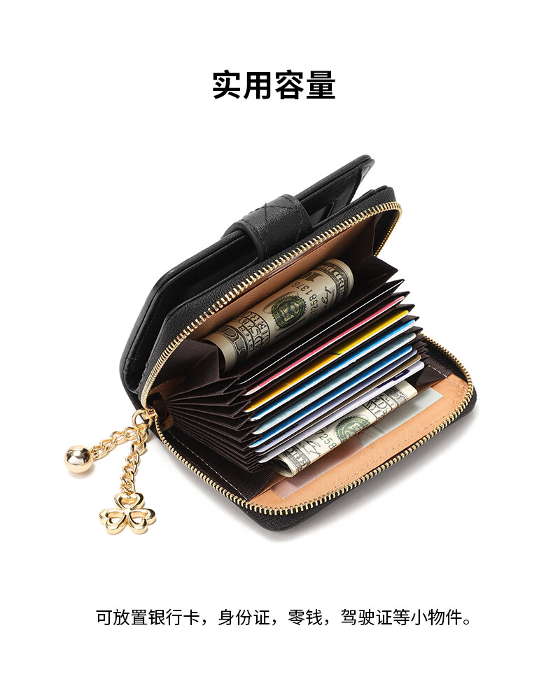 Scarecrow Wallet Women's Short Genuine Leather Coin Purse Card Bag New First Layer Cowhide Zipper Large Capacity Wallet 16 Card Slots Black 16 Card Slots