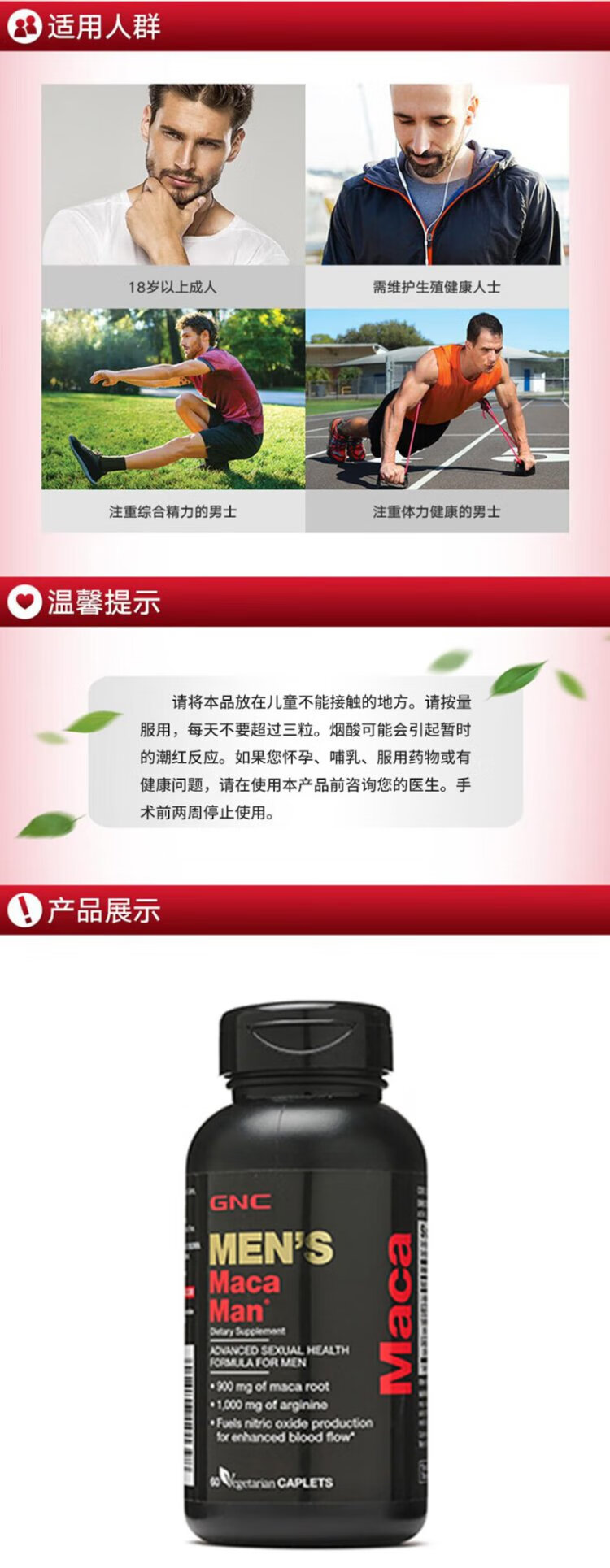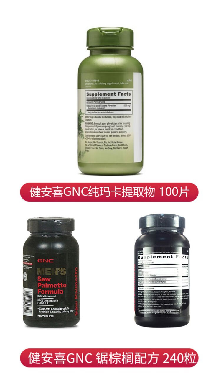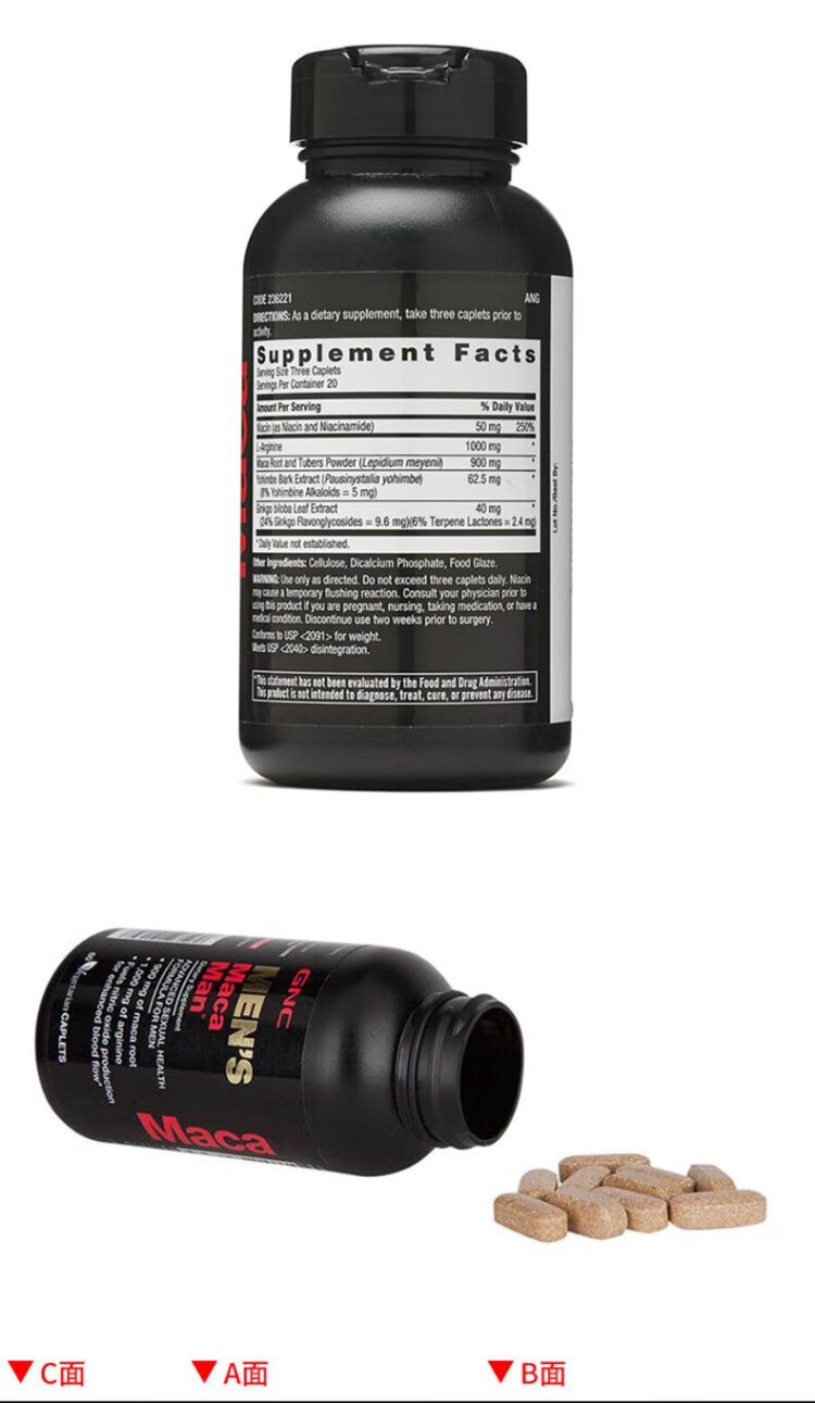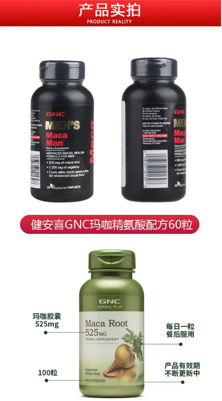 GNC Maca Tablets Maca Yohimbine Extract Saw Palmetto Men's Kidney Replenishing Premature Ejaculation Sensitive Health Products Imported from the United States Maca Arginine Tablets (Various Plant Formulas) 60 Tablets