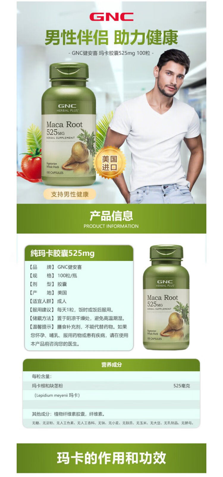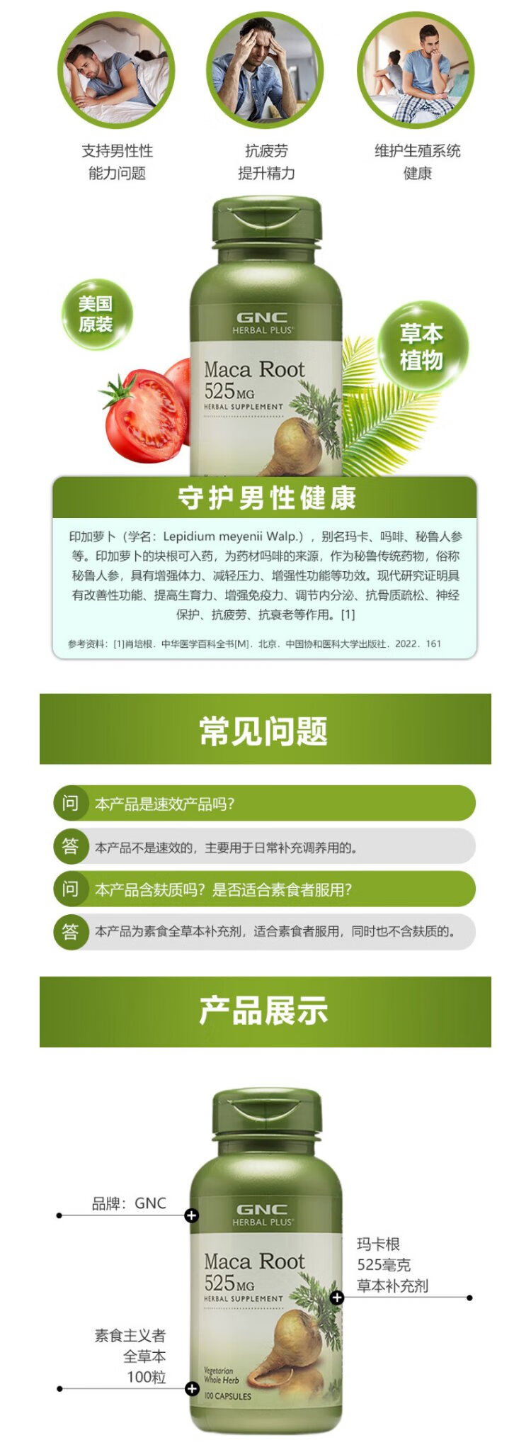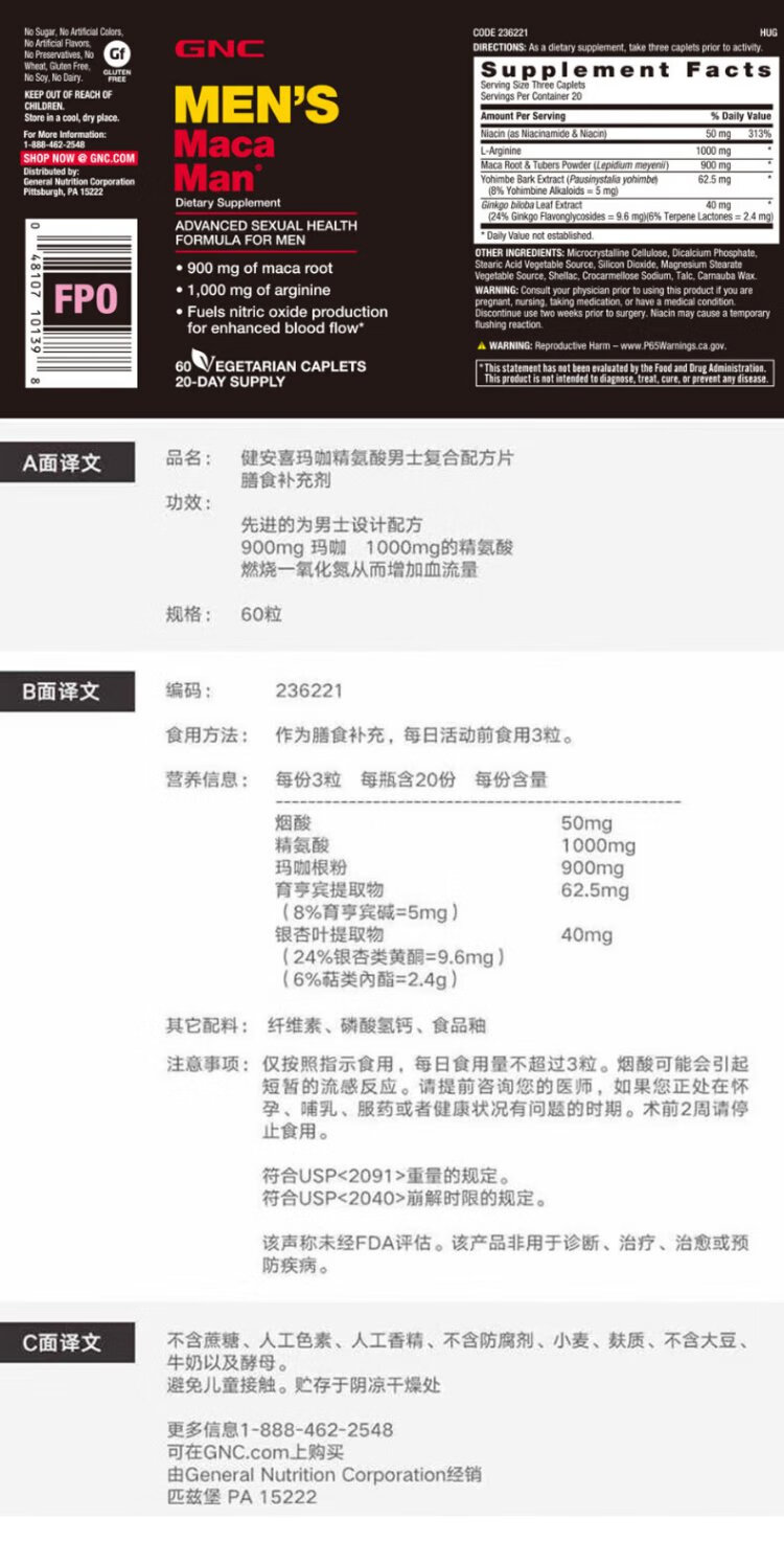 GNC Maca Tablets Maca Yohimbine Extract Saw Palmetto Men's Kidney Replenishing Premature Ejaculation Sensitive Health Products Imported from the United States Maca Arginine Tablets (Various Plant Formulas) 60 Tablets