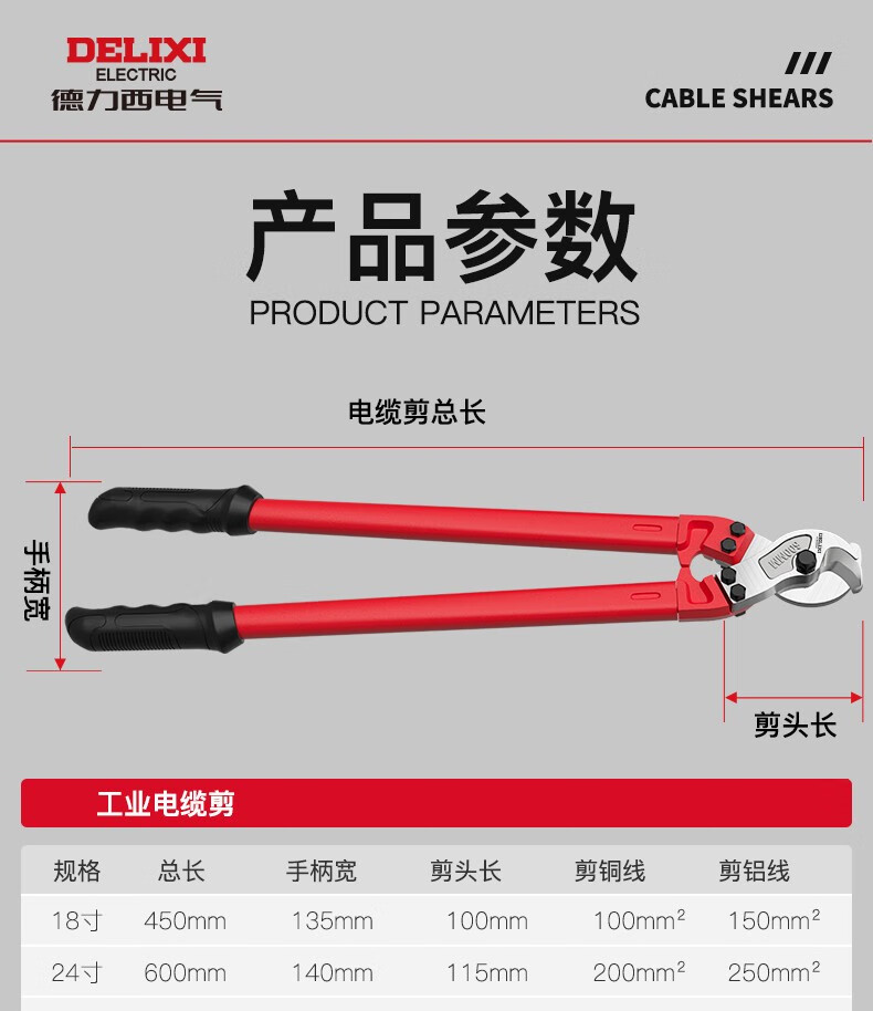 DELIXI ELECTRIC cable scissors, wire cutters, wire cutters, crescent wire scissors, manual special scissors, cable cutting artifact, heavy-duty cable scissors 24 inches