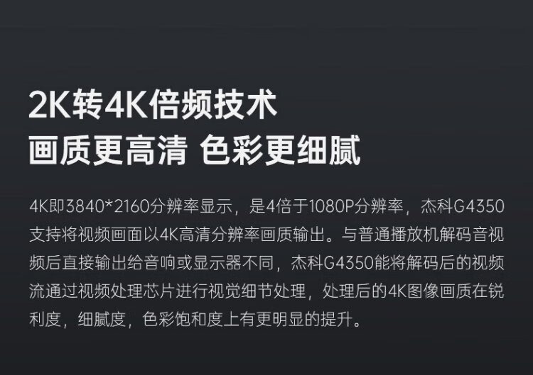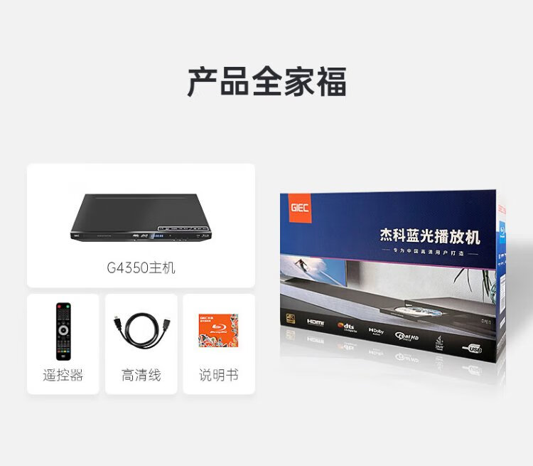 Jieke BDP-G4350 4K Blu-ray player 3D high-definition DVD player Blu-ray DVD player VCD player CD hard drive USB panoramic sound dts Dolby fiber optic G4350 official standard + HD cable + 2 Blu-ray discs