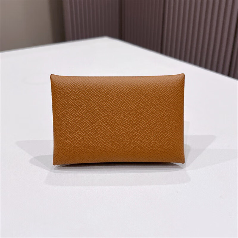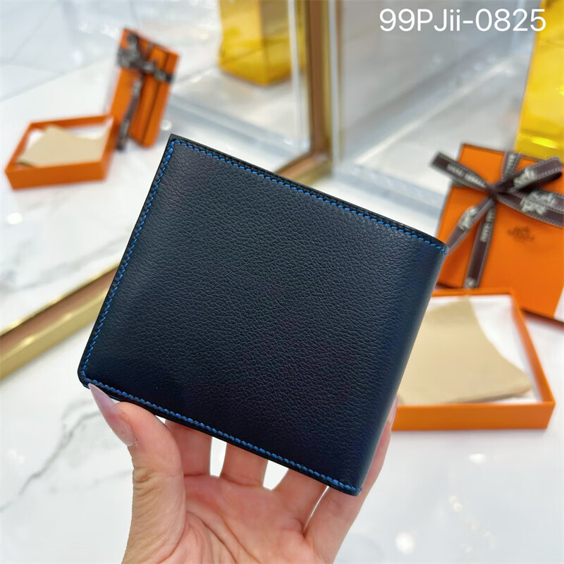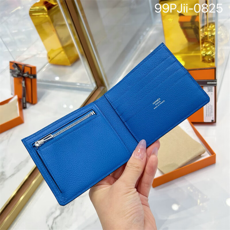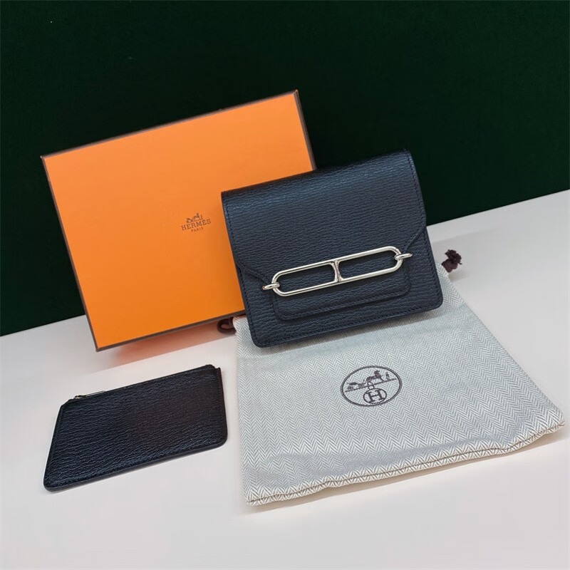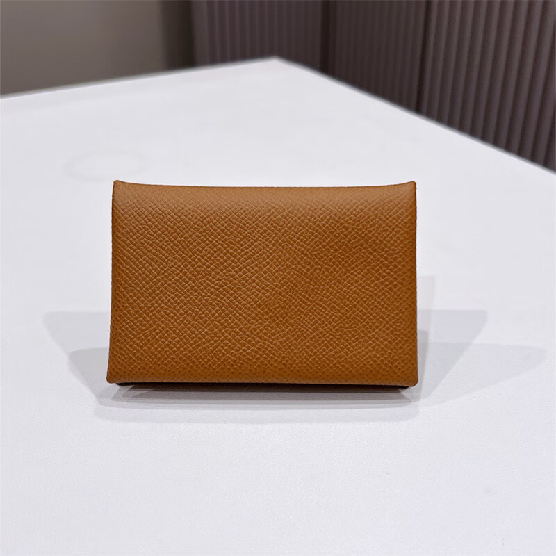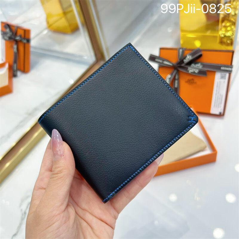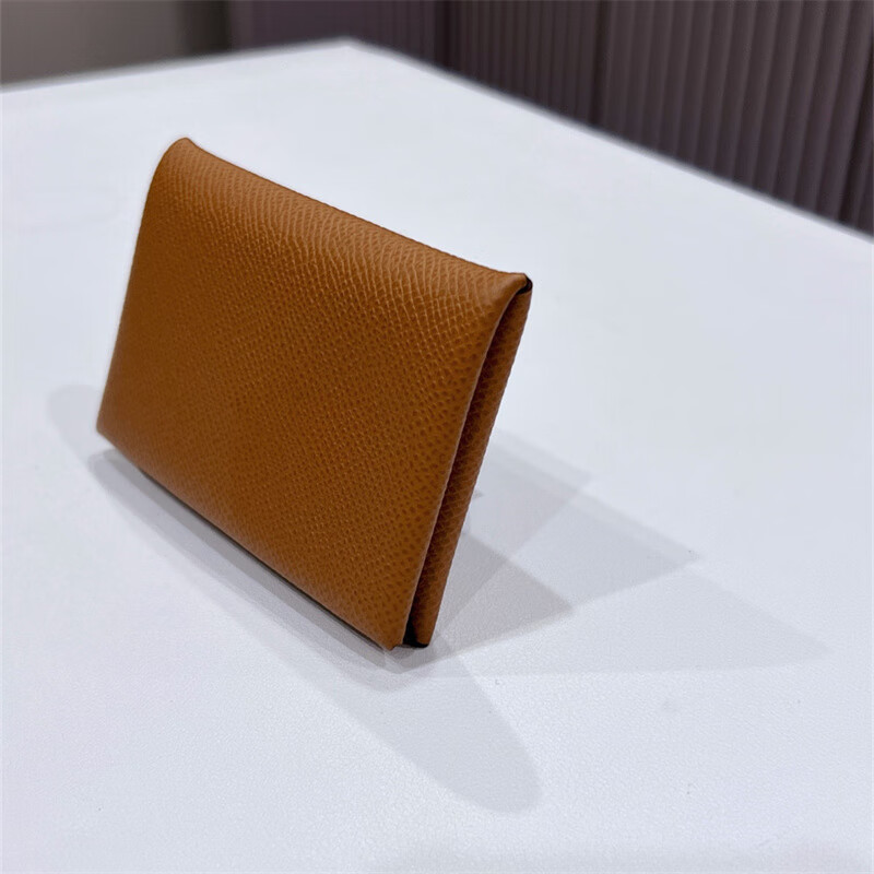 Second-hand 99 new unused full set of Hermes Hermes light blue card holder folding women's wallet card holder 99 new Hermes Calvi card holder black D-engraved