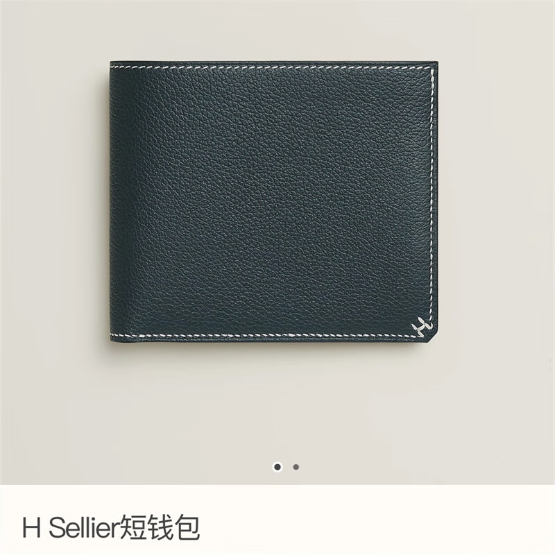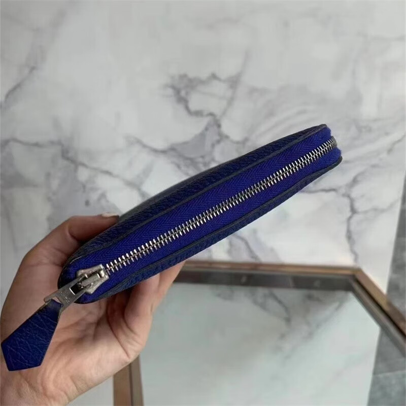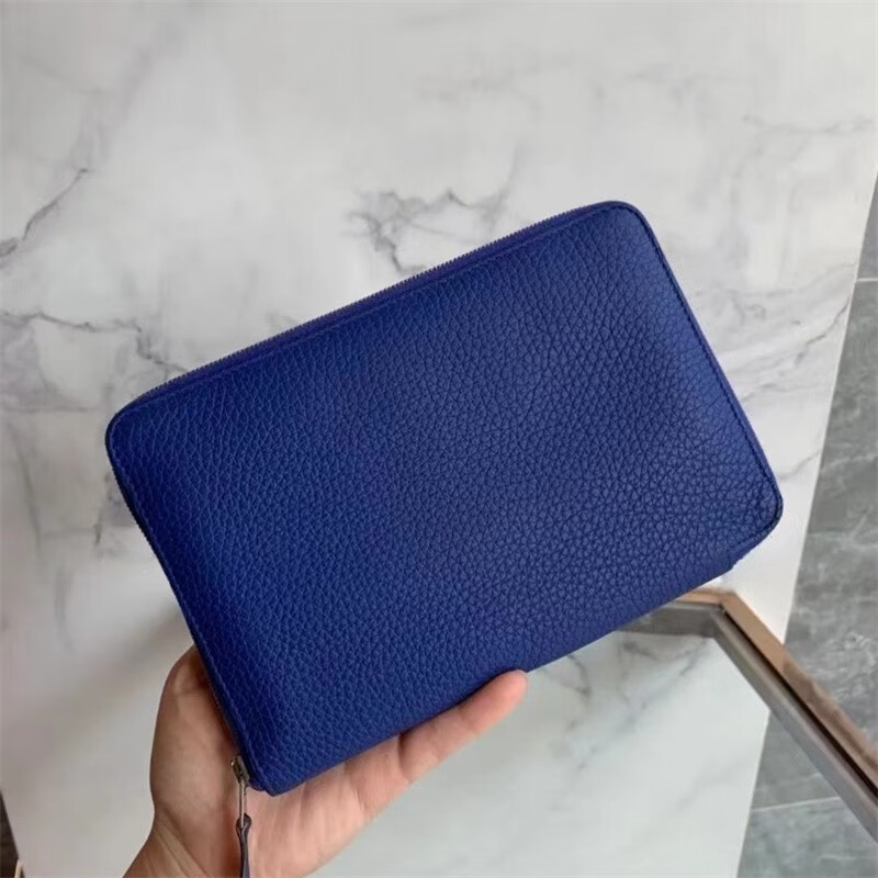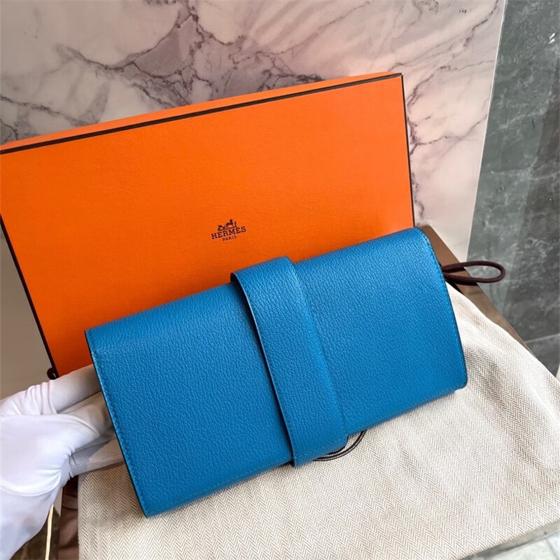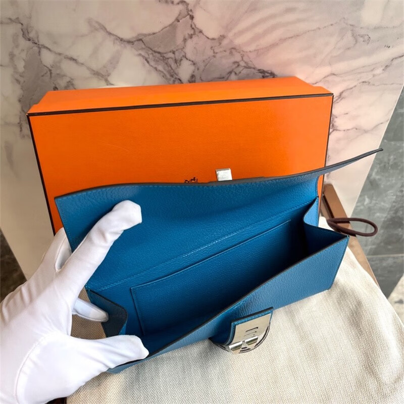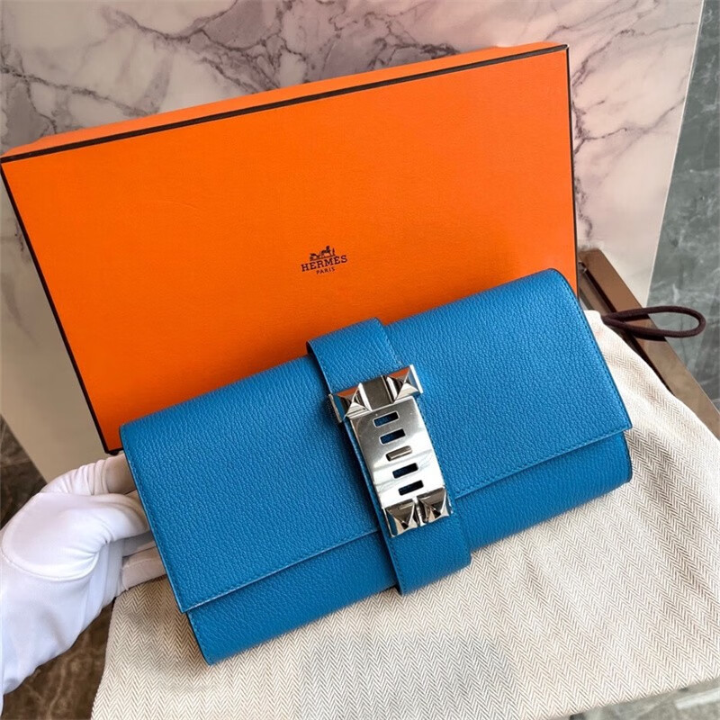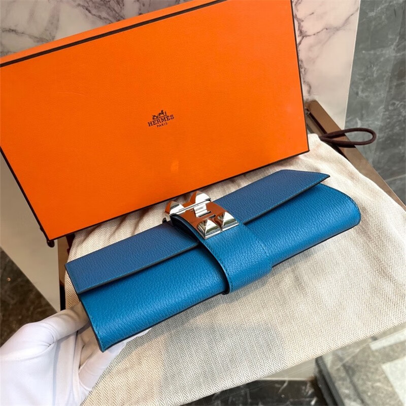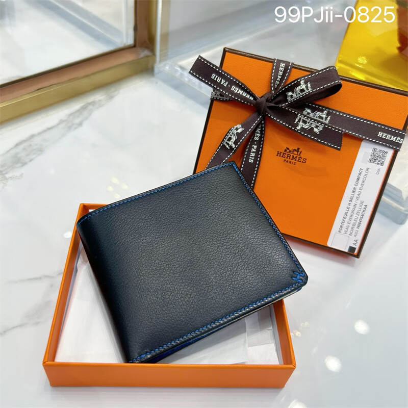 Second-hand 99 new unused full set of Hermes Hermes light blue card holder folding women's wallet card holder 99 new Hermes Calvi card holder black D-engraved