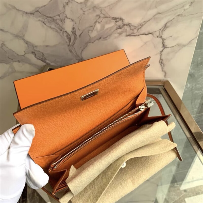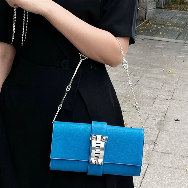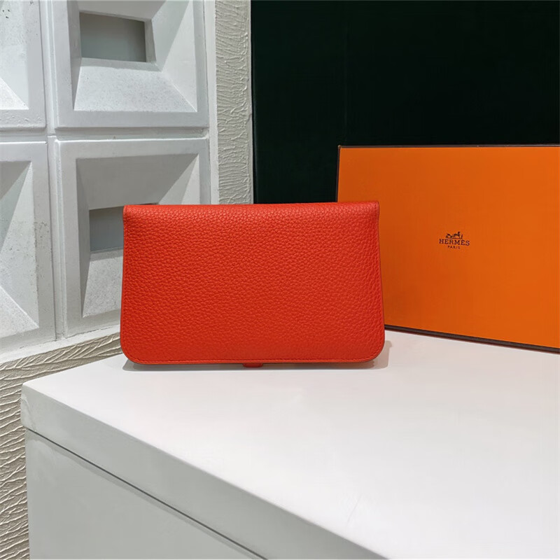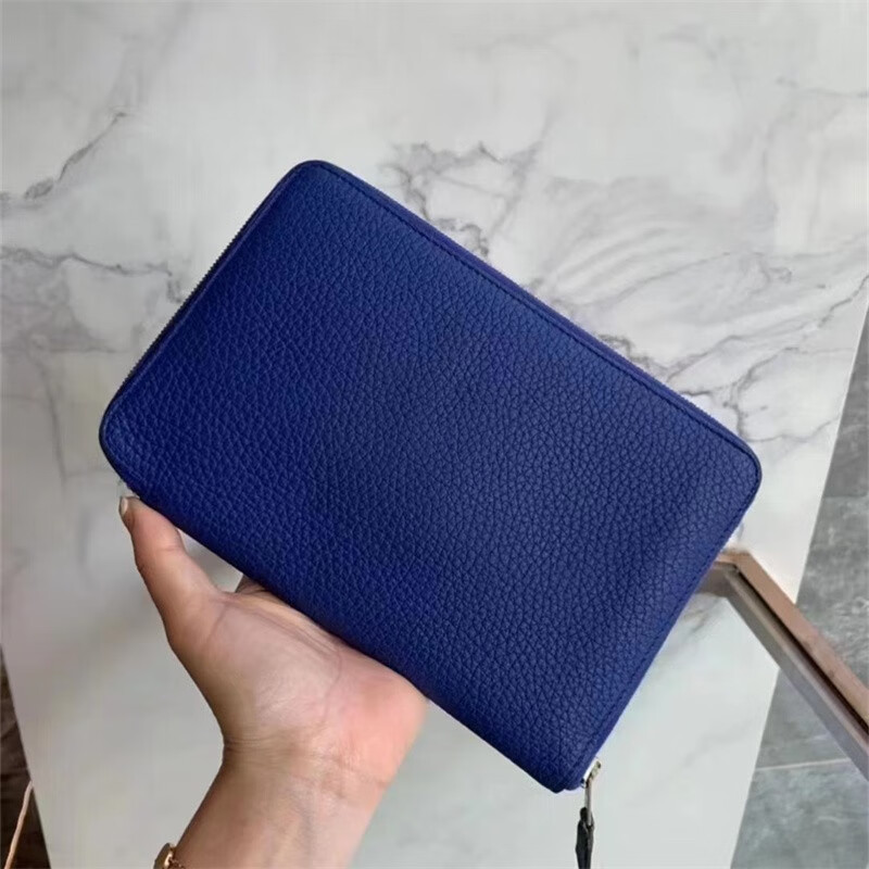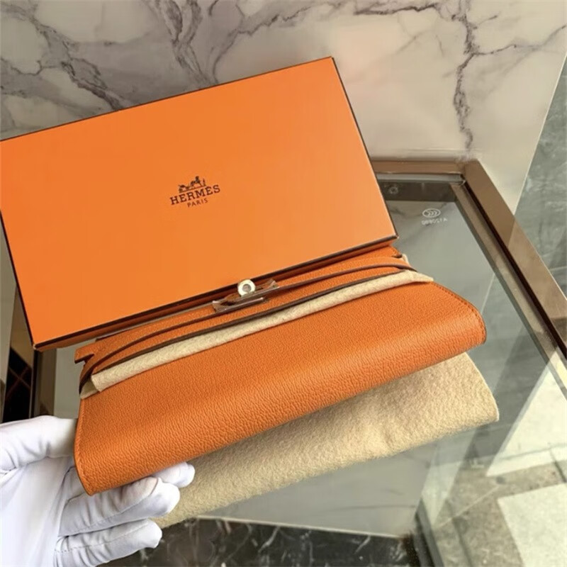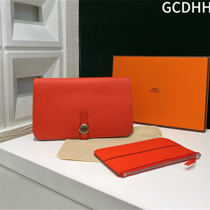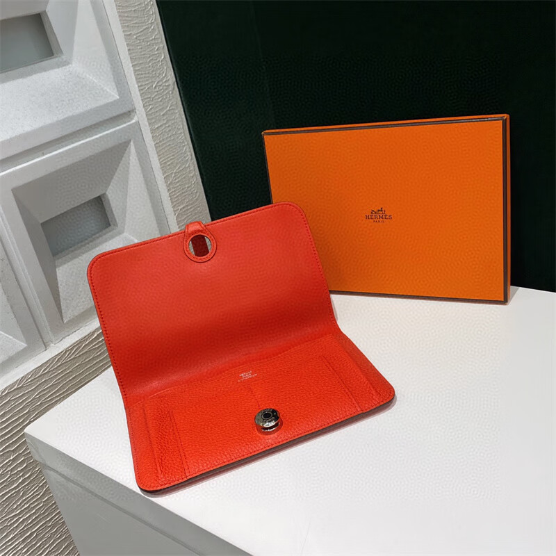 Second-hand 99 new unused full set of Hermes Hermes light blue card holder folding women's wallet card holder 99 new Hermes Calvi card holder black D-engraved