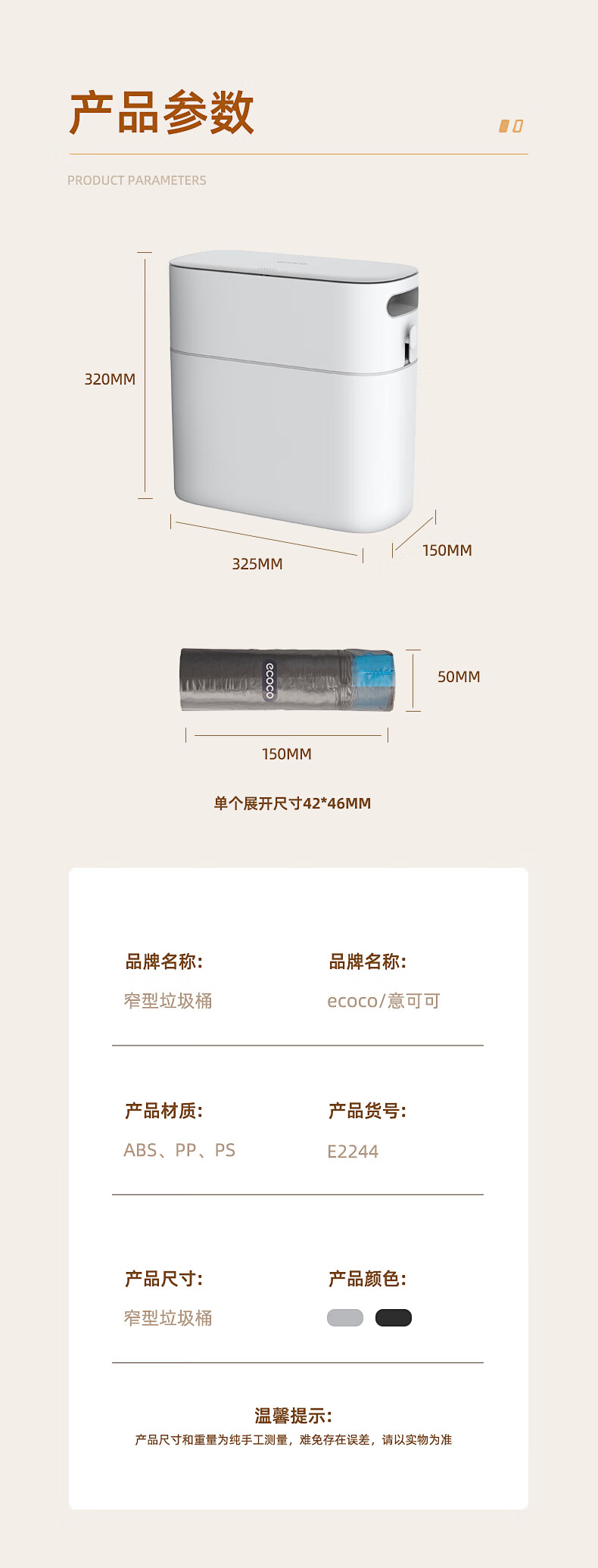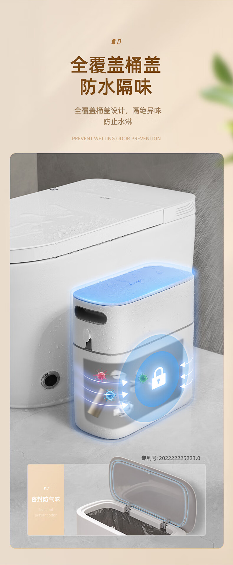 Ecoco slotted trash can bathroom toilet narrow slotted trash can living room kitchen household automatic packaging large capacity with lid and matching drawstring garbage bag 150 pieces