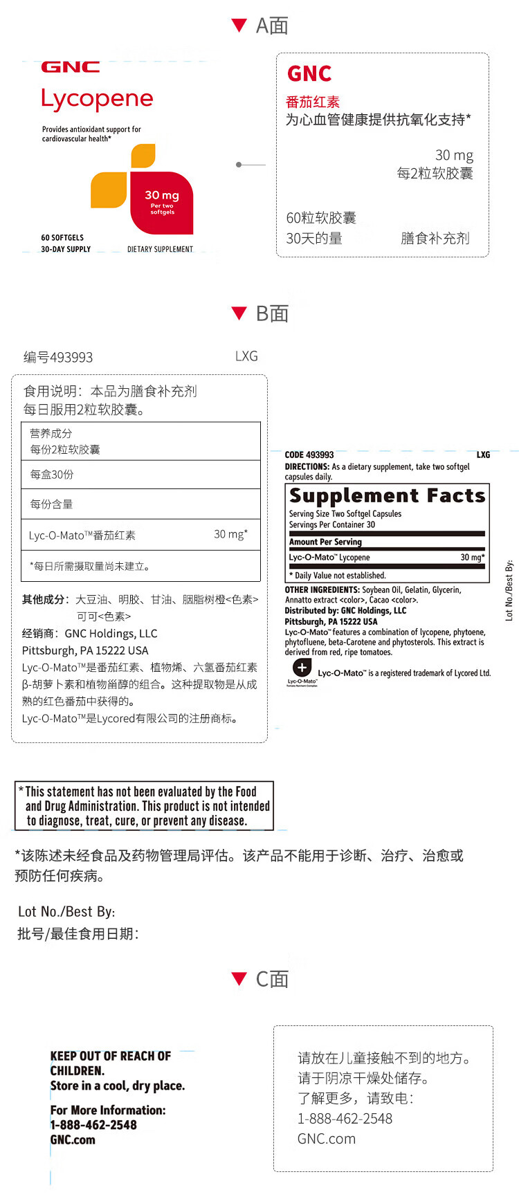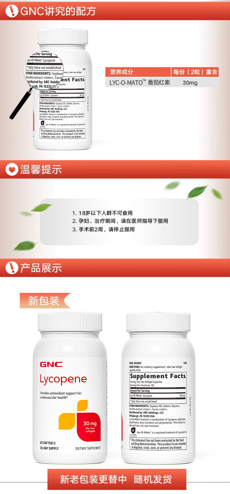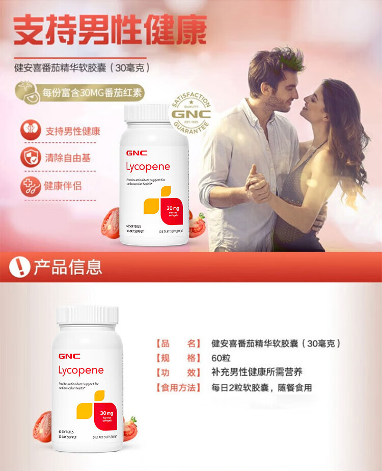 GNC Lycopene Soft Capsules, Men's Pregnancy Preparation, Improve Men's Frontline, Imported from Overseas, 60 Capsules