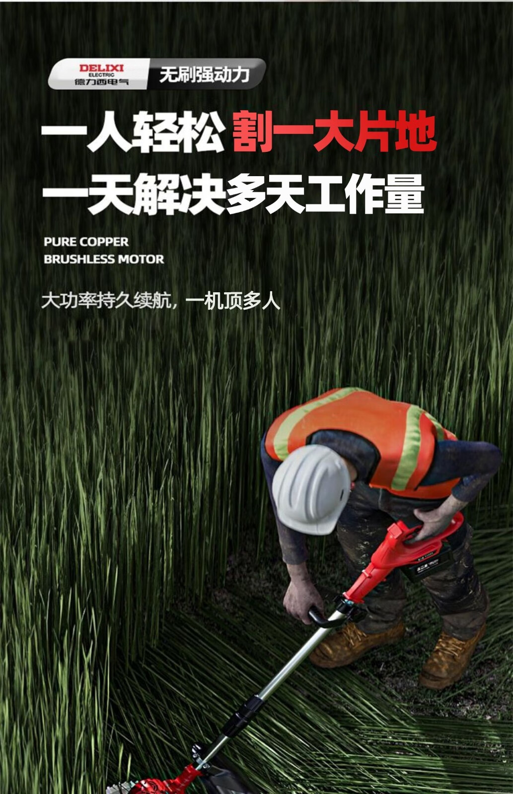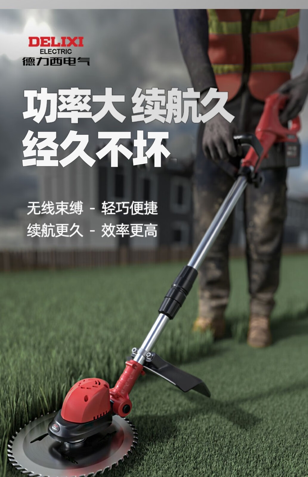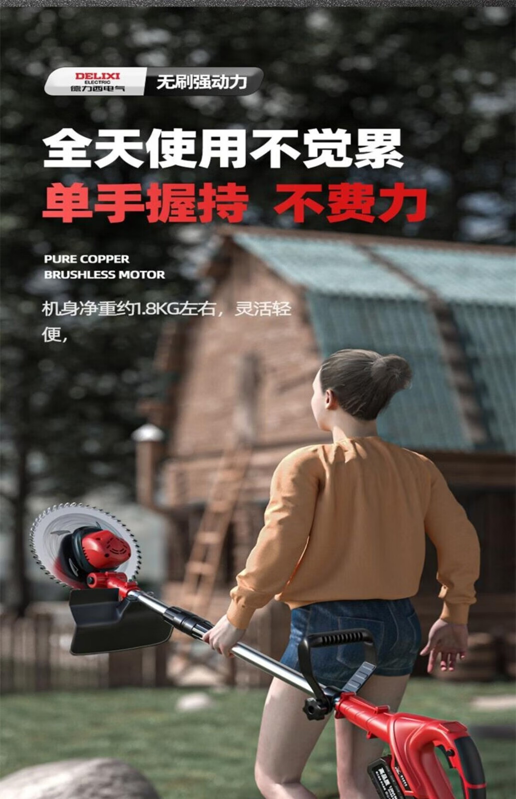 DELIXI ELECTRIC lithium battery lawn mower small household electric weeding artifact lawn mowing and weeding high power advanced model 2.0AH one charge one charge