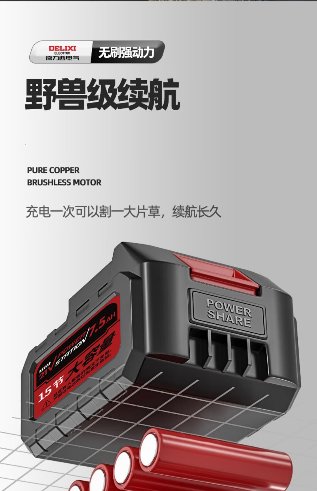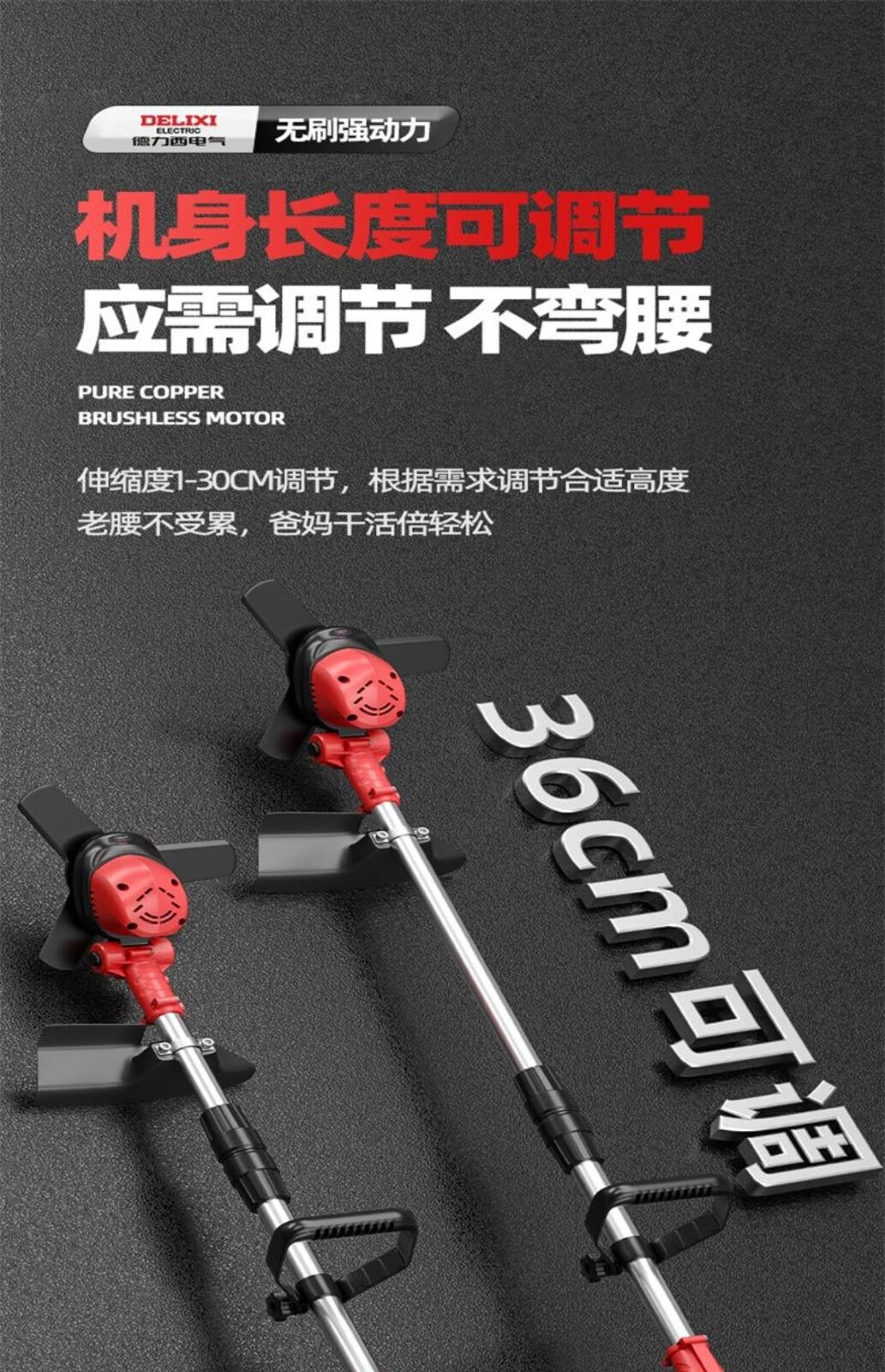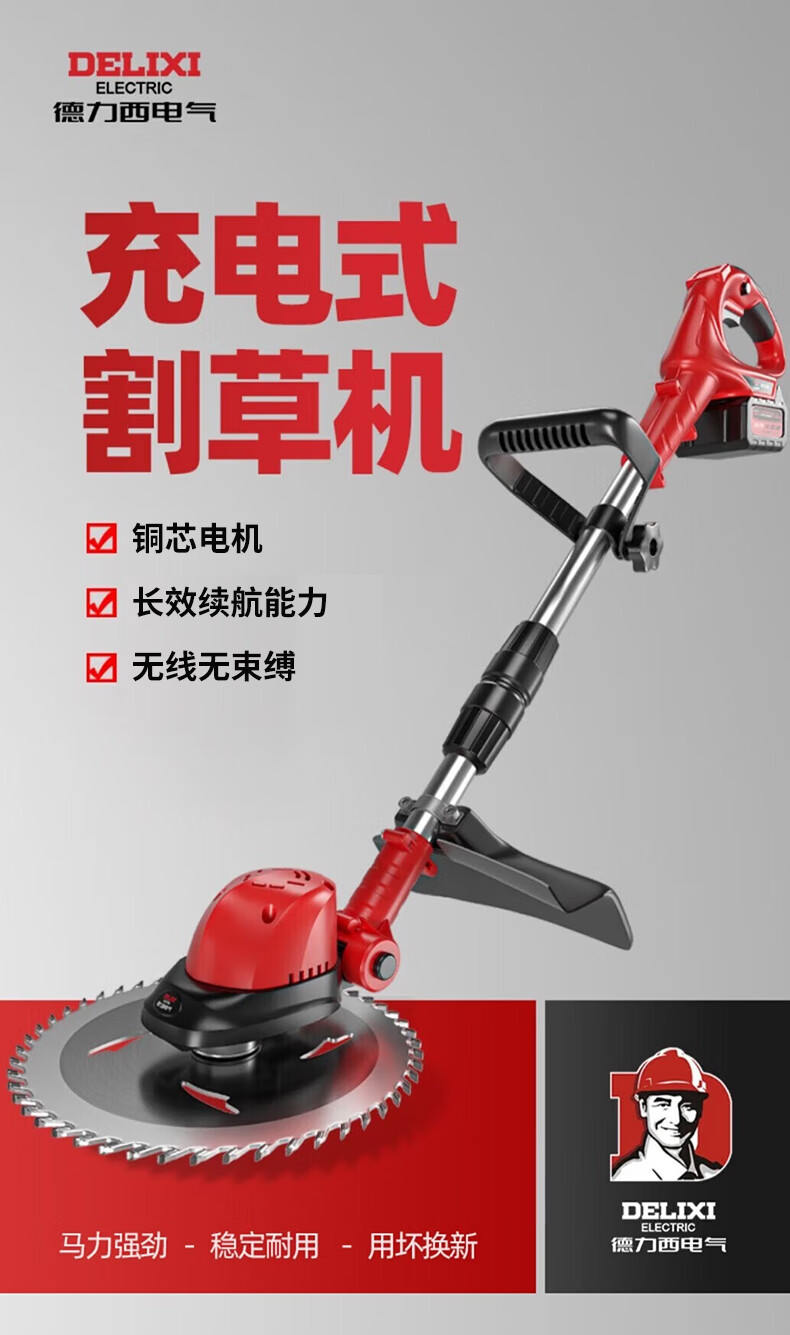 DELIXI ELECTRIC lithium battery lawn mower small household electric weeding artifact lawn mowing and weeding high power advanced model 2.0AH one charge one charge