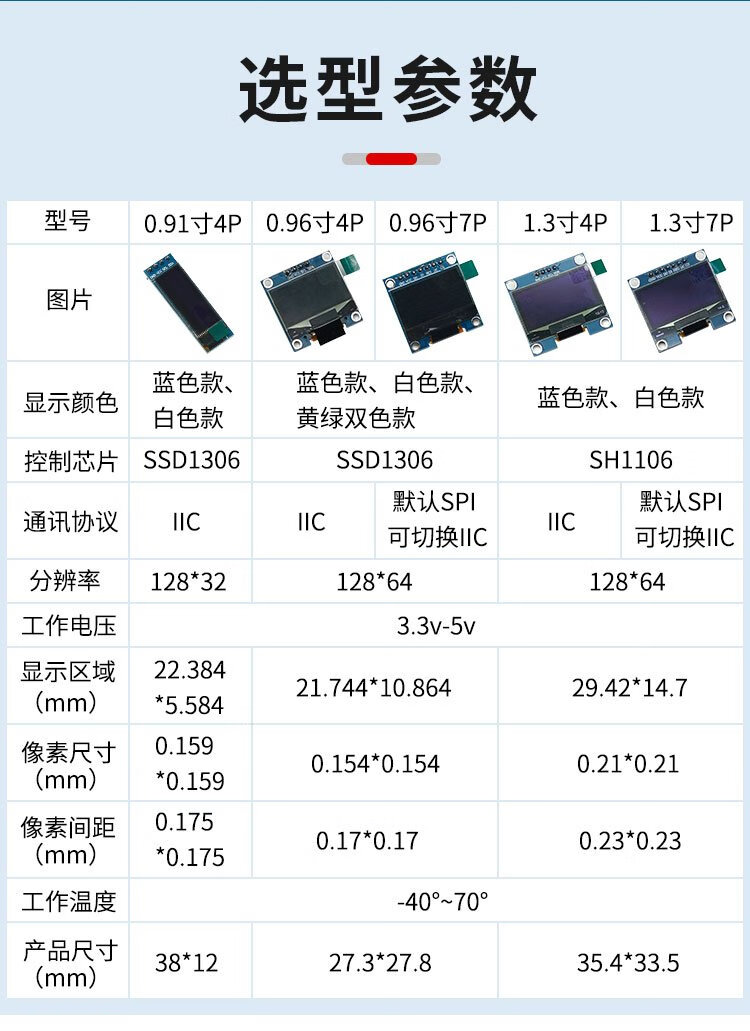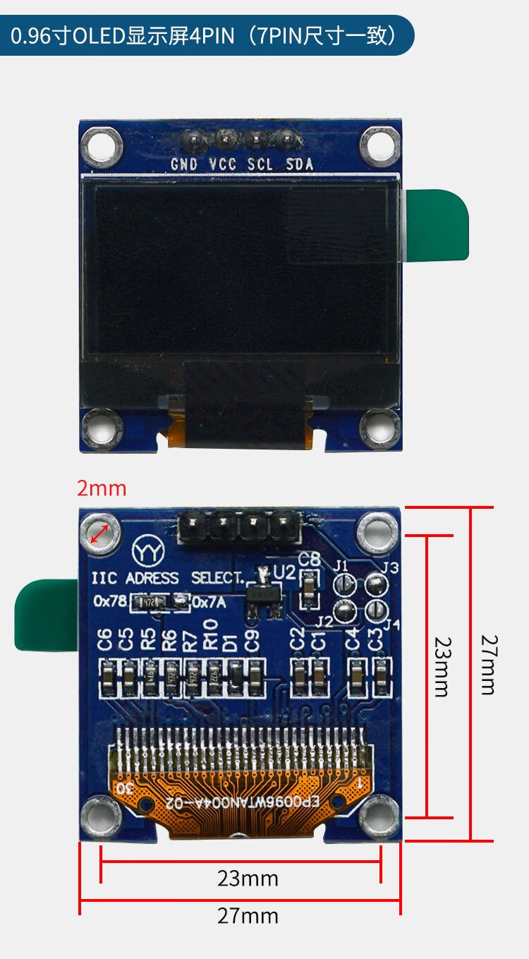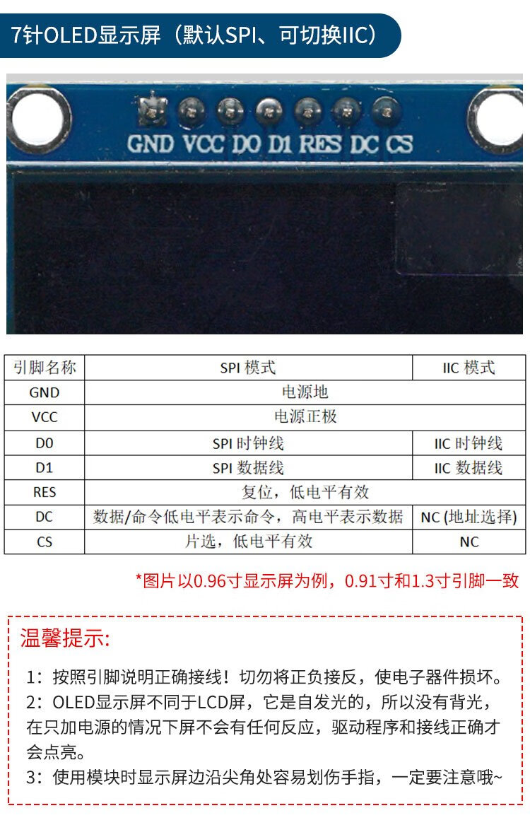 Throwing stones OLED display module 0.91/0.96/1.3 inches HD development board display blue/white/yellow blue optional 0.96 inches white 4P 1 box